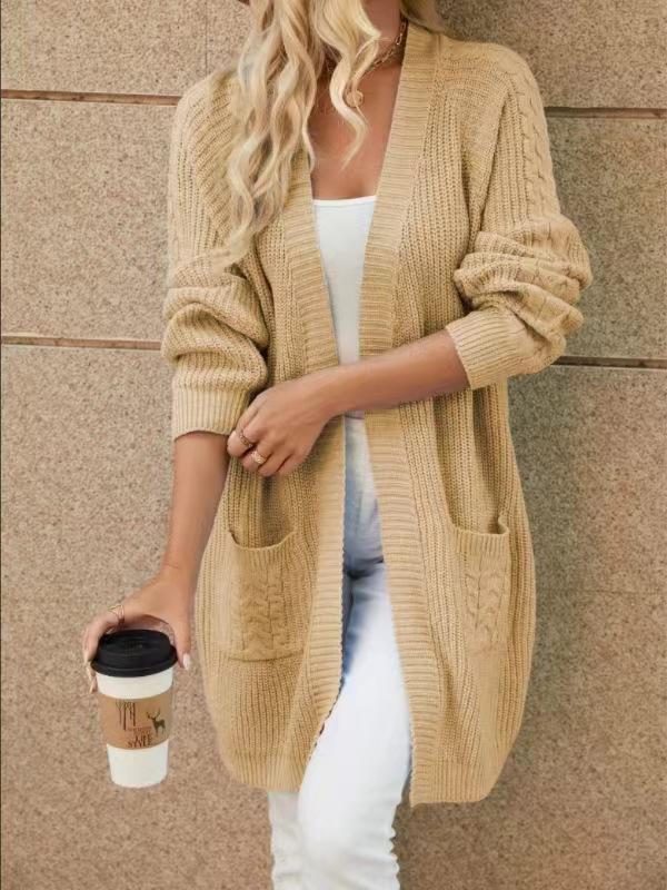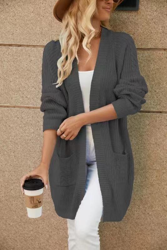 Chaqueta Cárdigan Europea y Americana para Mujer Tejido Estilo Coreano Holgado Estilo Lazy Largo Medio Nuevo Invierno y Otoño 2025