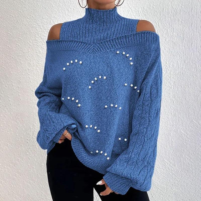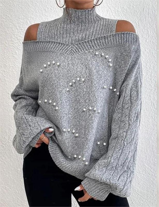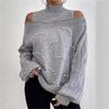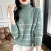 Suéter de Punto Europeo y Americano para Mujer 2025 Otoño e Invierno Nuevo Suelto Manga Larga Linterna Medio Cuello Tortuga Chaqueta de Suéter con Cuentas para Mujer