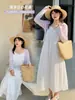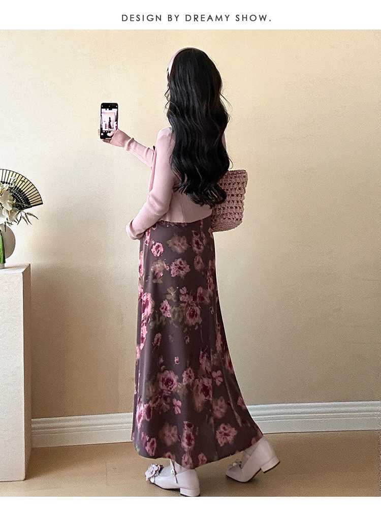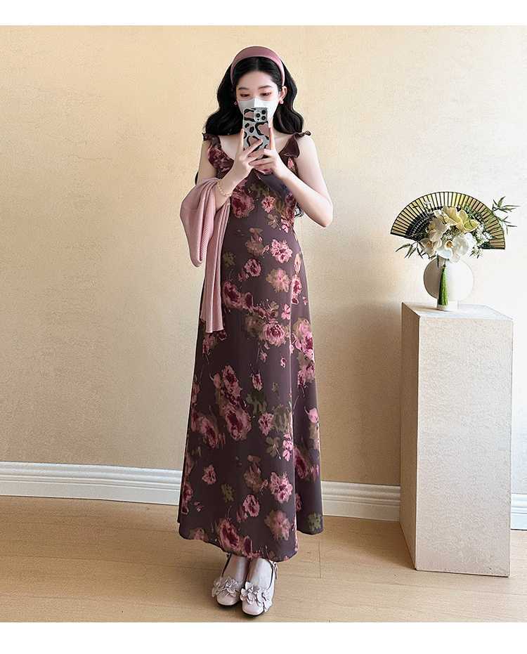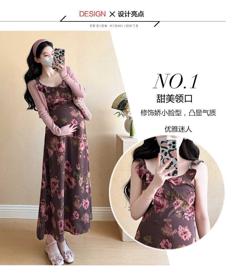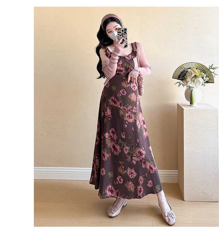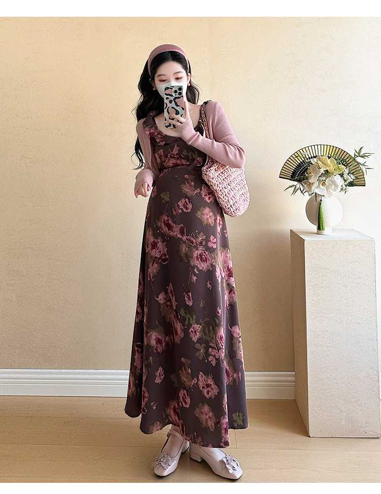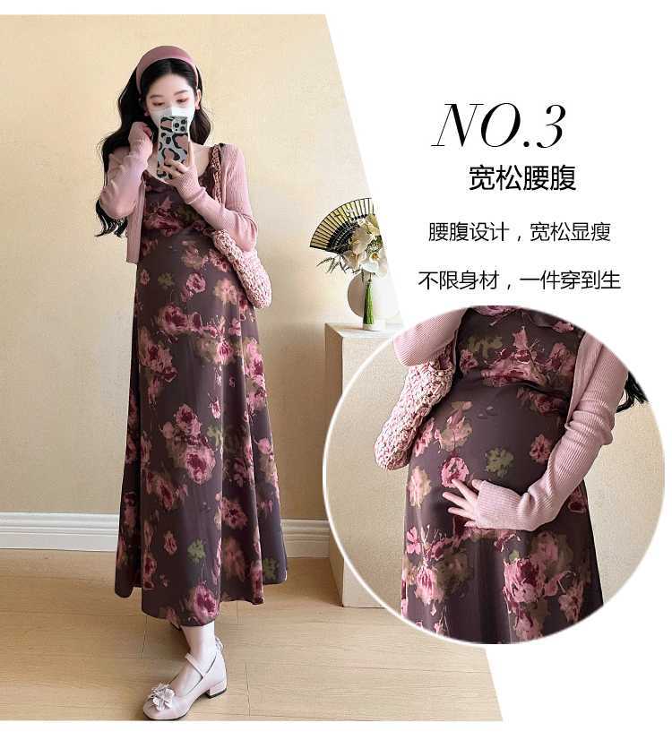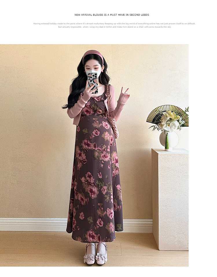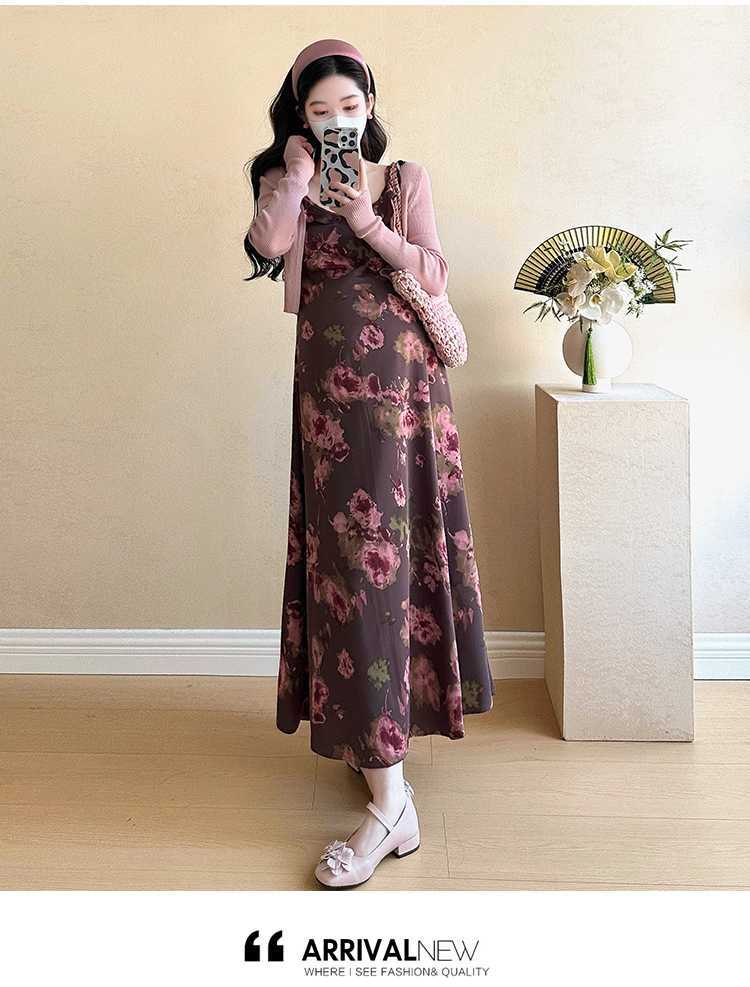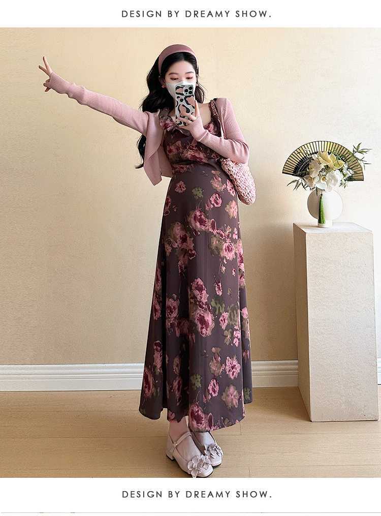 Ropa de Maternidad Otoño 2025 Conjunto de Dos Piezas Francés Rejuvenecedor Nuevo Cárdigan de Protección Solar de Manga Larga Falda Larga de Maternidad de Color a la Moda