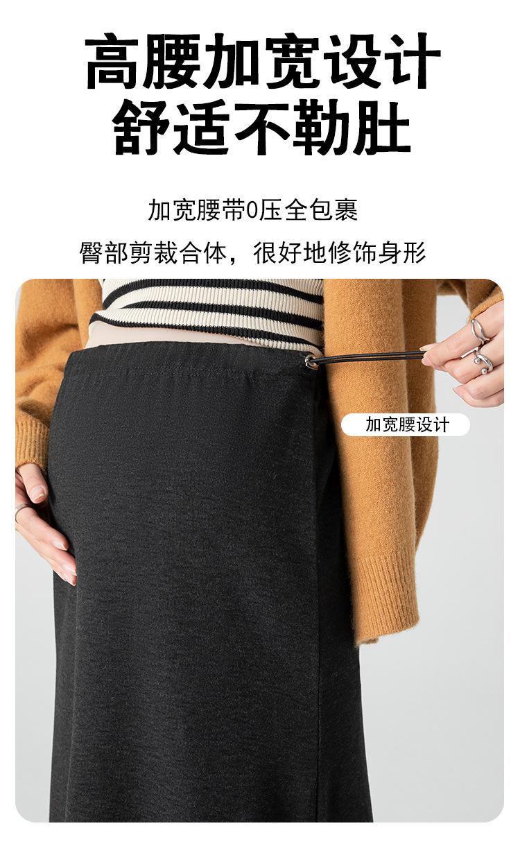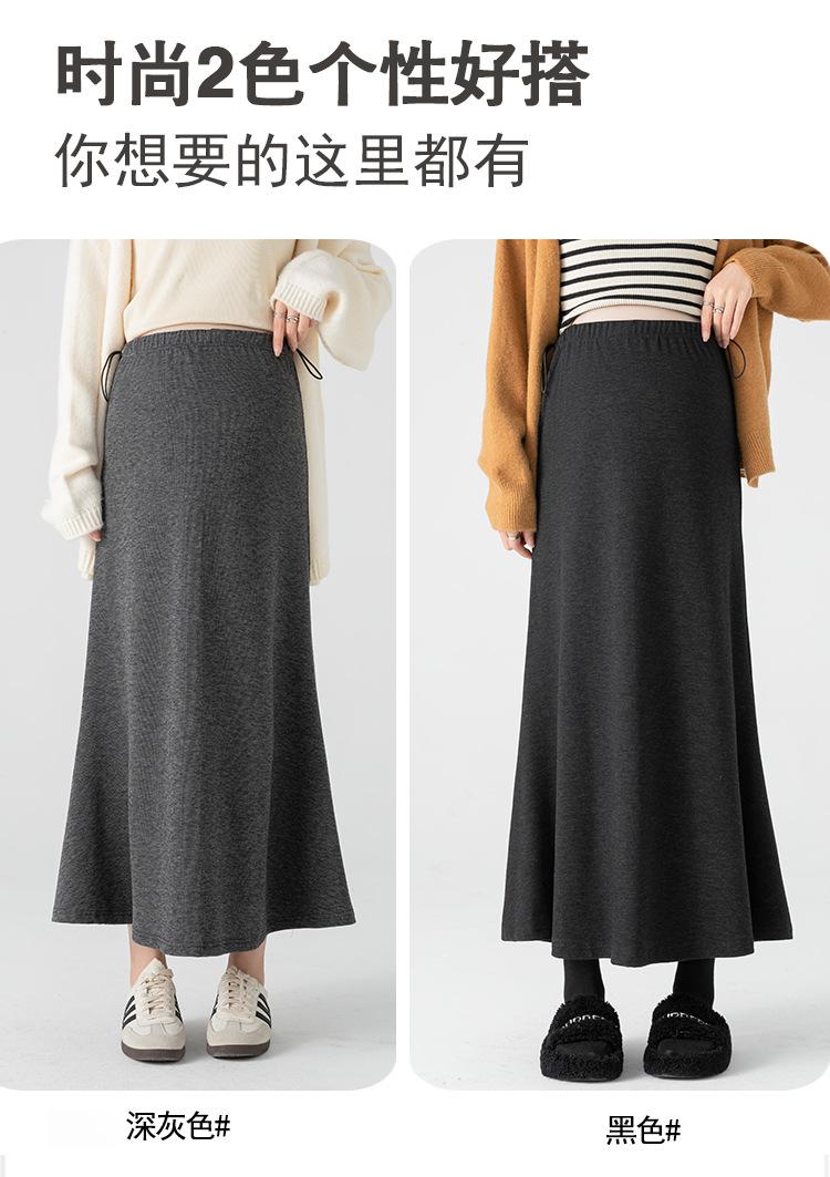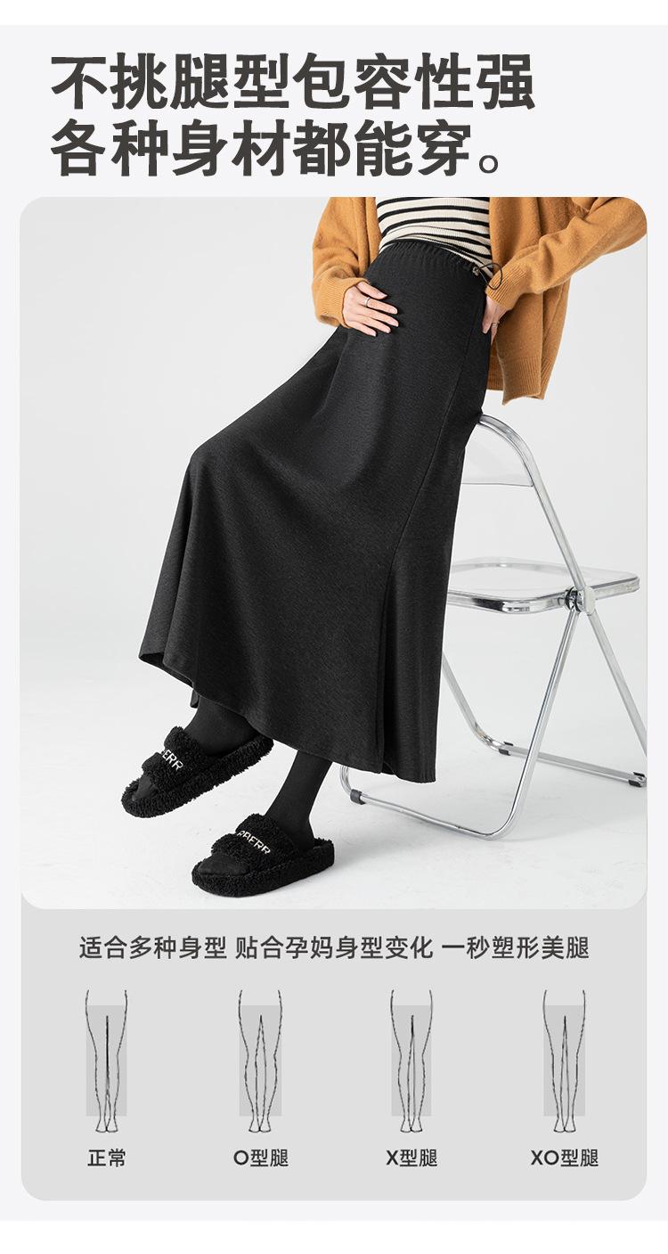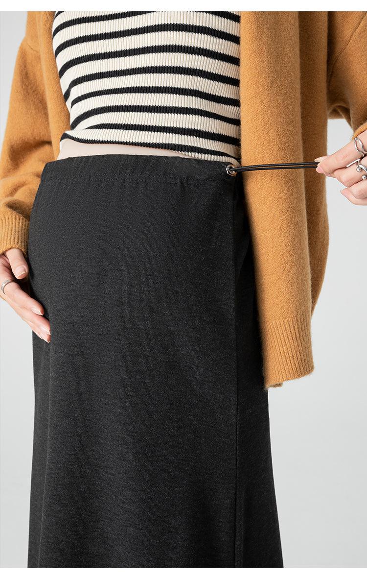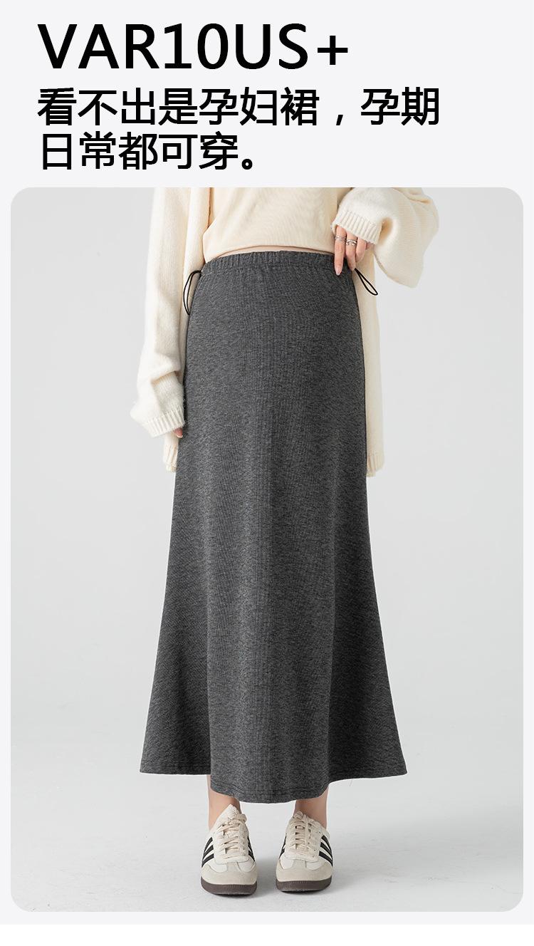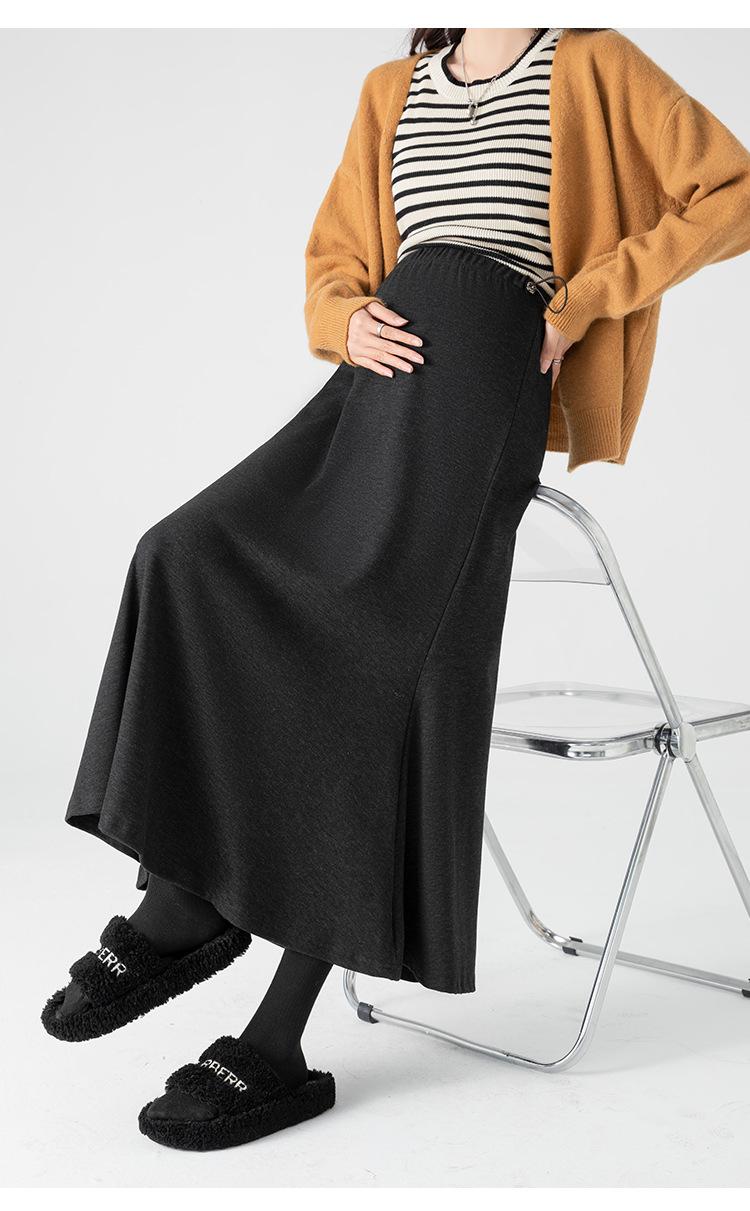 Falda con Cordón para Mujeres Embarazadas Forrada de Polar y Engrosada Suave y Encerada Drapeada Falda de Maternidad Otoño e Invierno Nueva Falda Larga Versátil de Cola de Pez