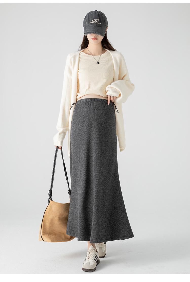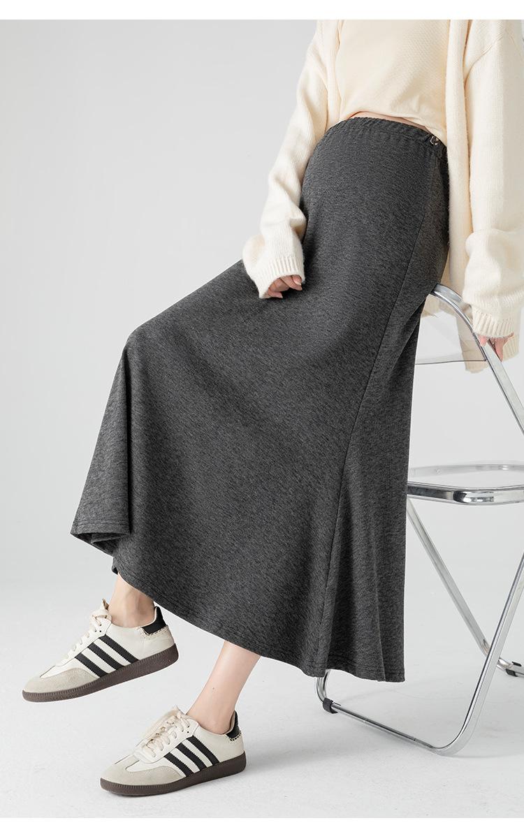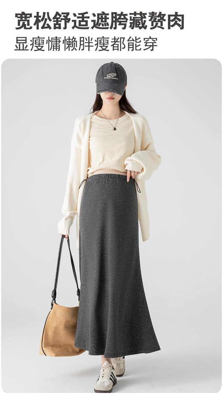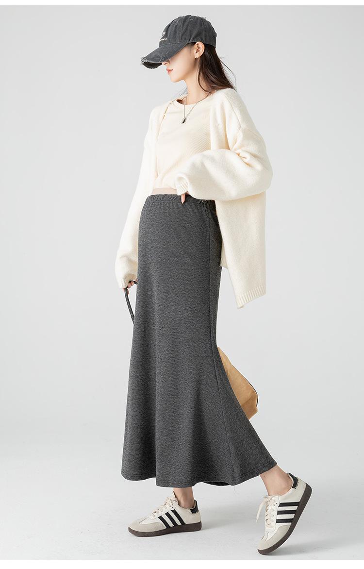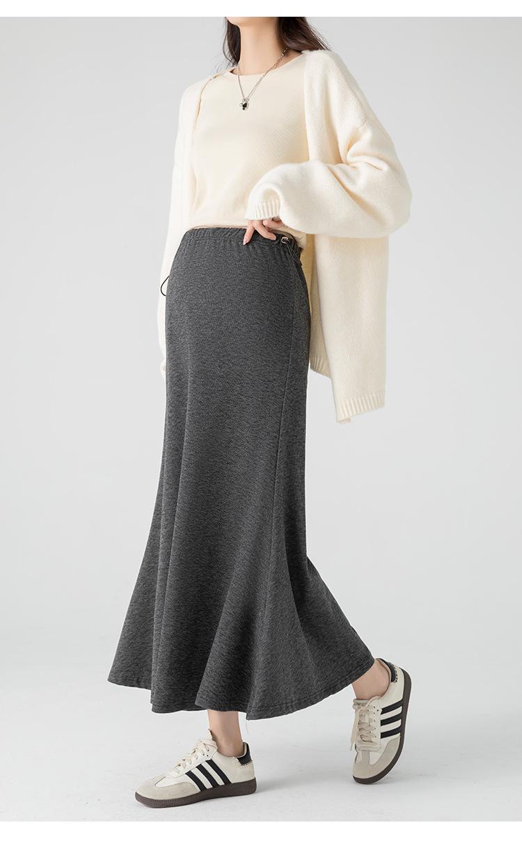 Falda con Cordón para Mujeres Embarazadas Forrada de Polar y Engrosada Suave y Encerada Drapeada Falda de Maternidad Otoño e Invierno Nueva Falda Larga Versátil de Cola de Pez