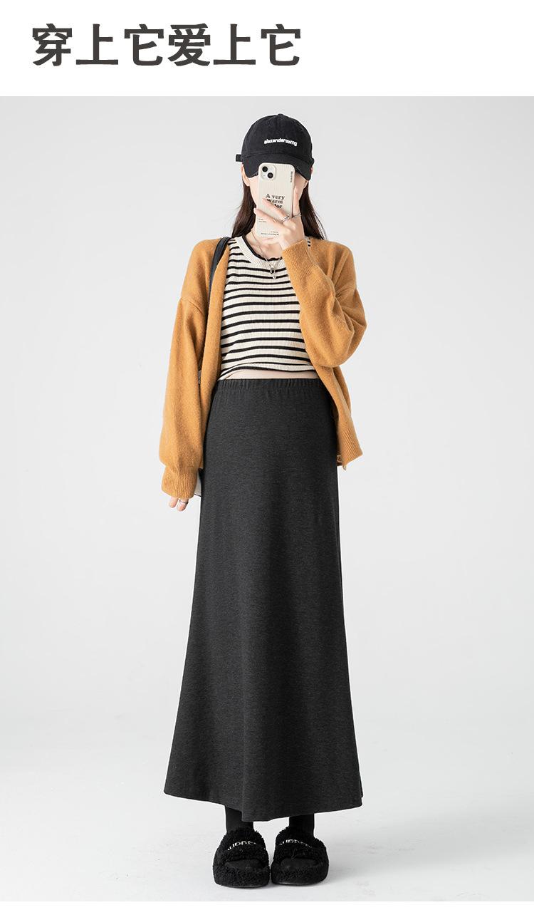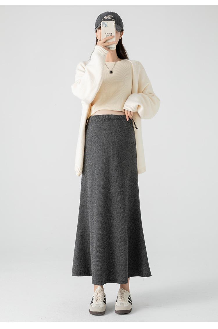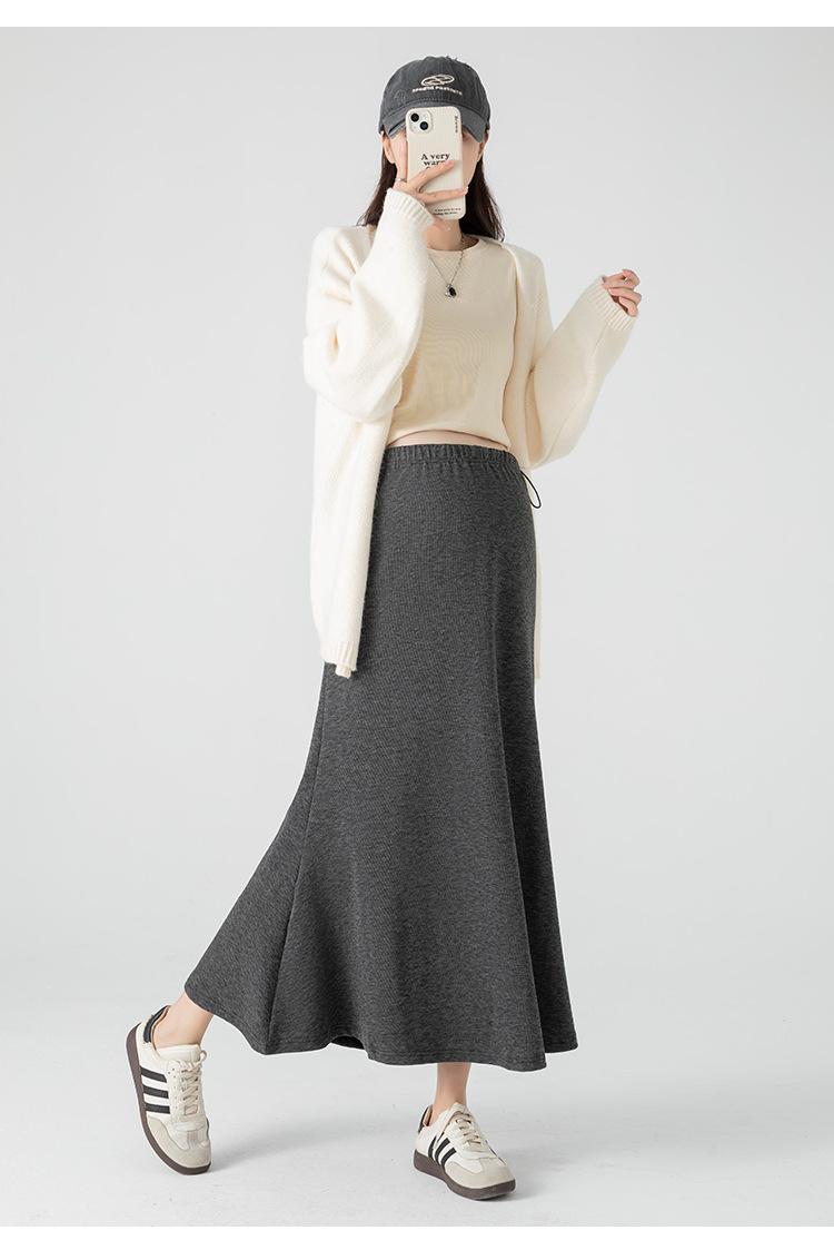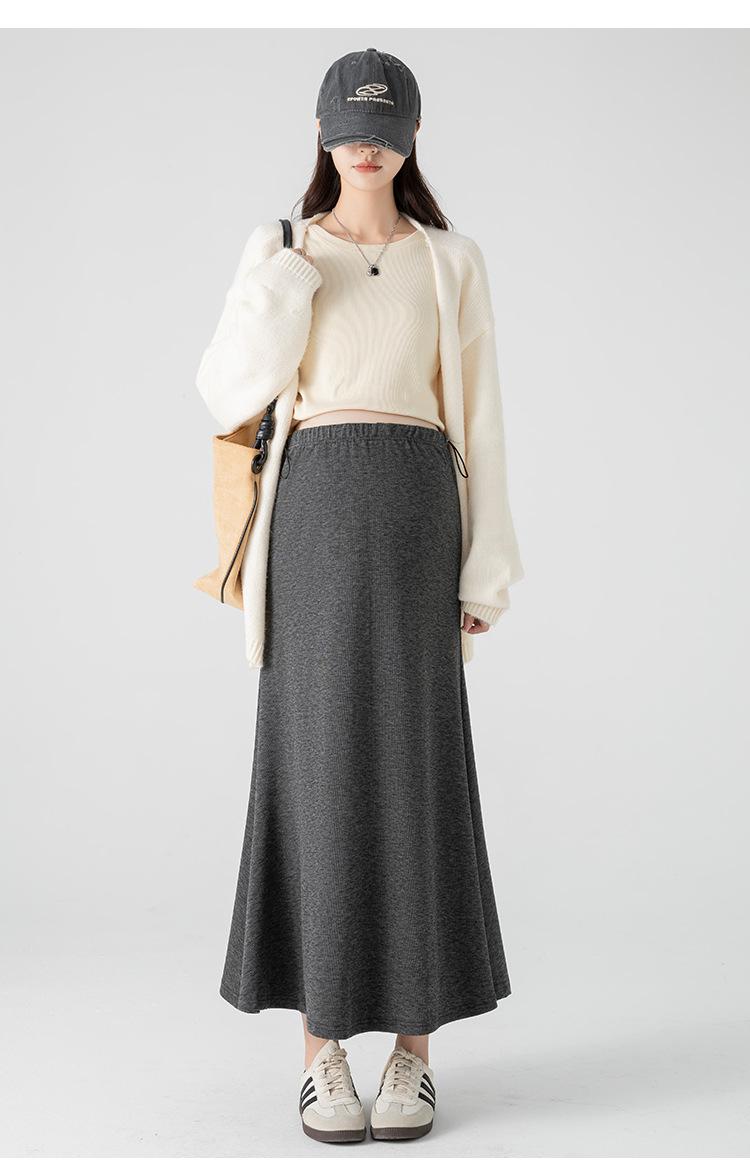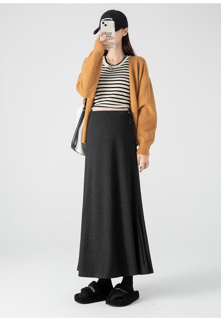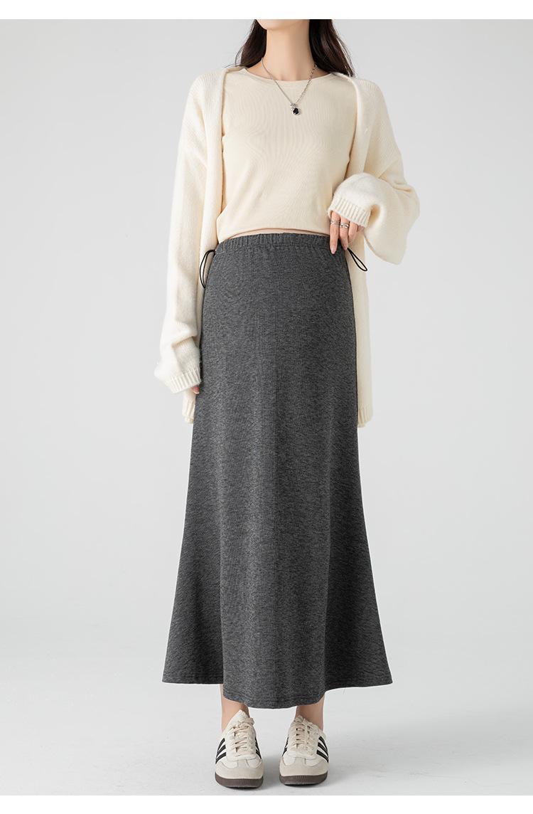 Falda con Cordón para Mujeres Embarazadas Forrada de Polar y Engrosada Suave y Encerada Drapeada Falda de Maternidad Otoño e Invierno Nueva Falda Larga Versátil de Cola de Pez