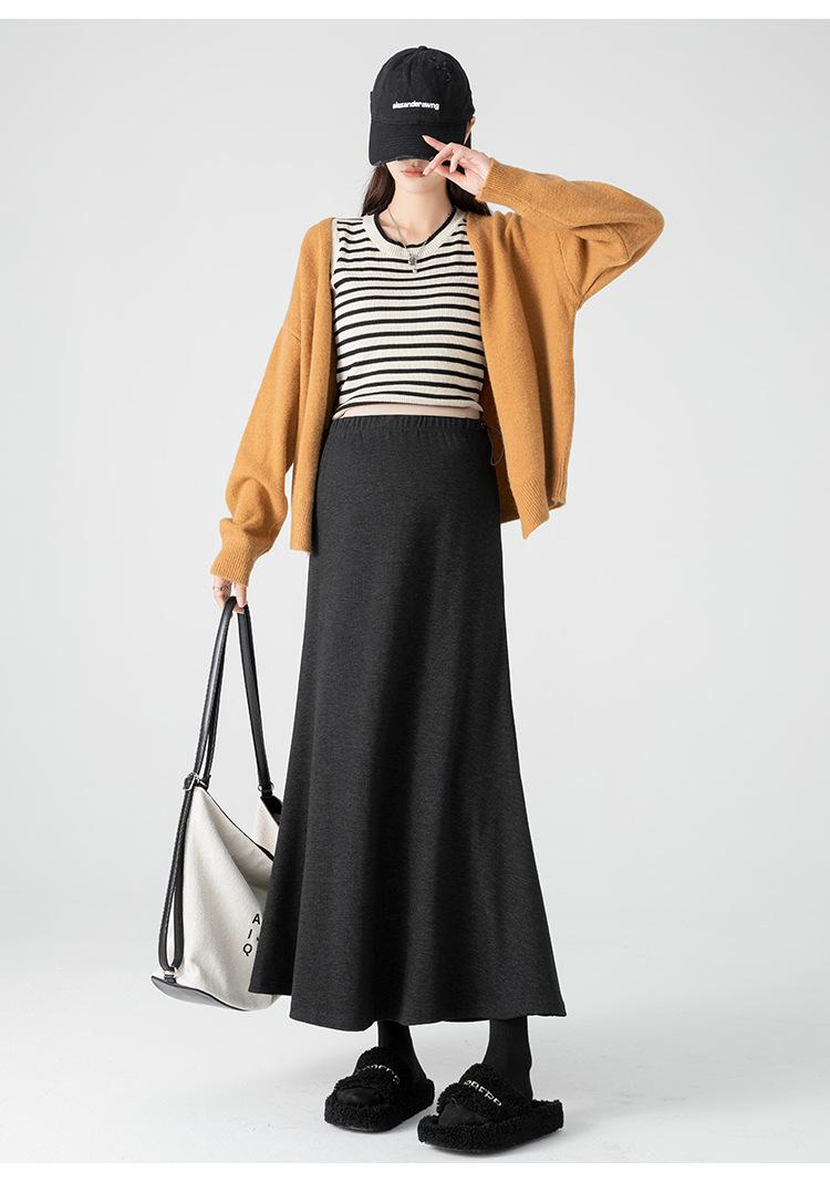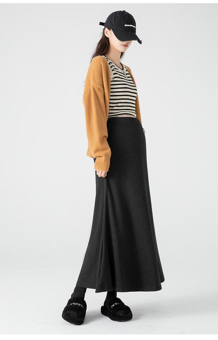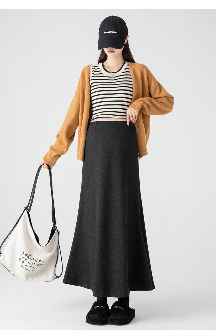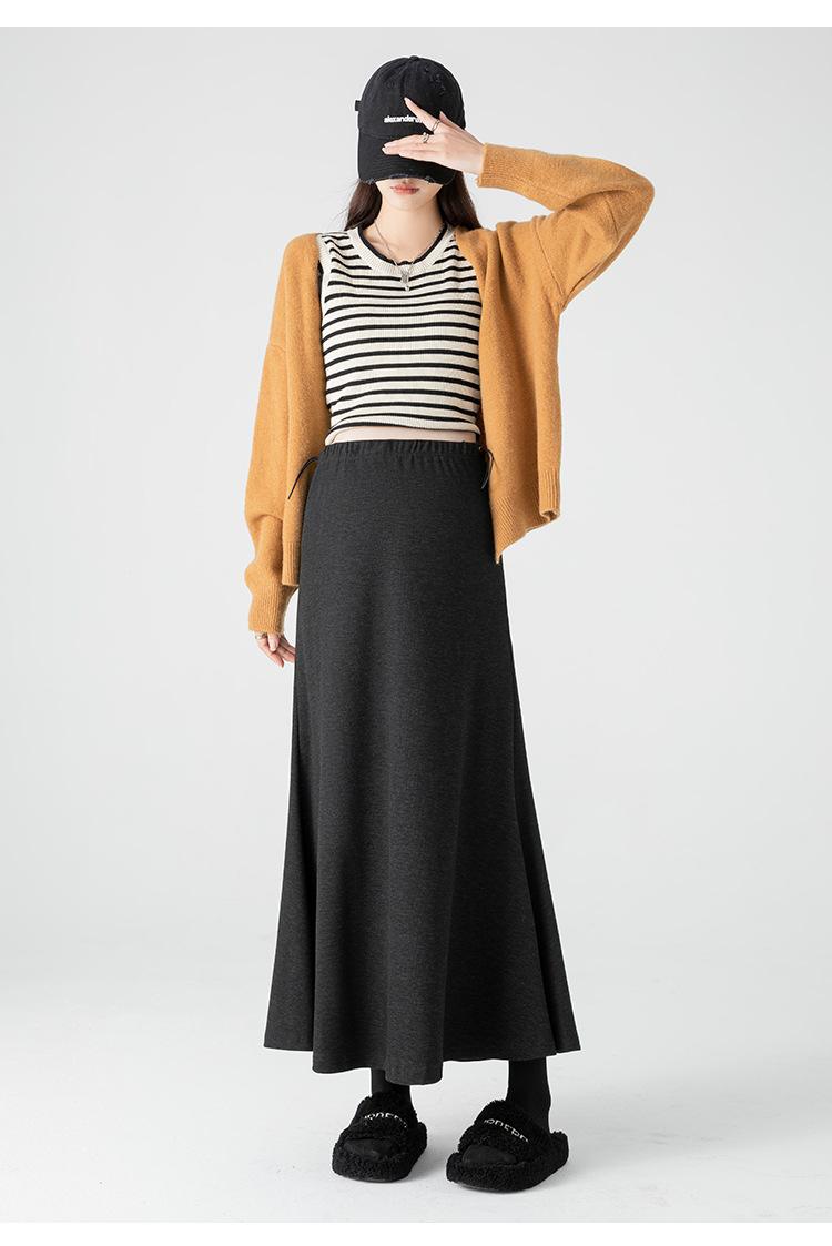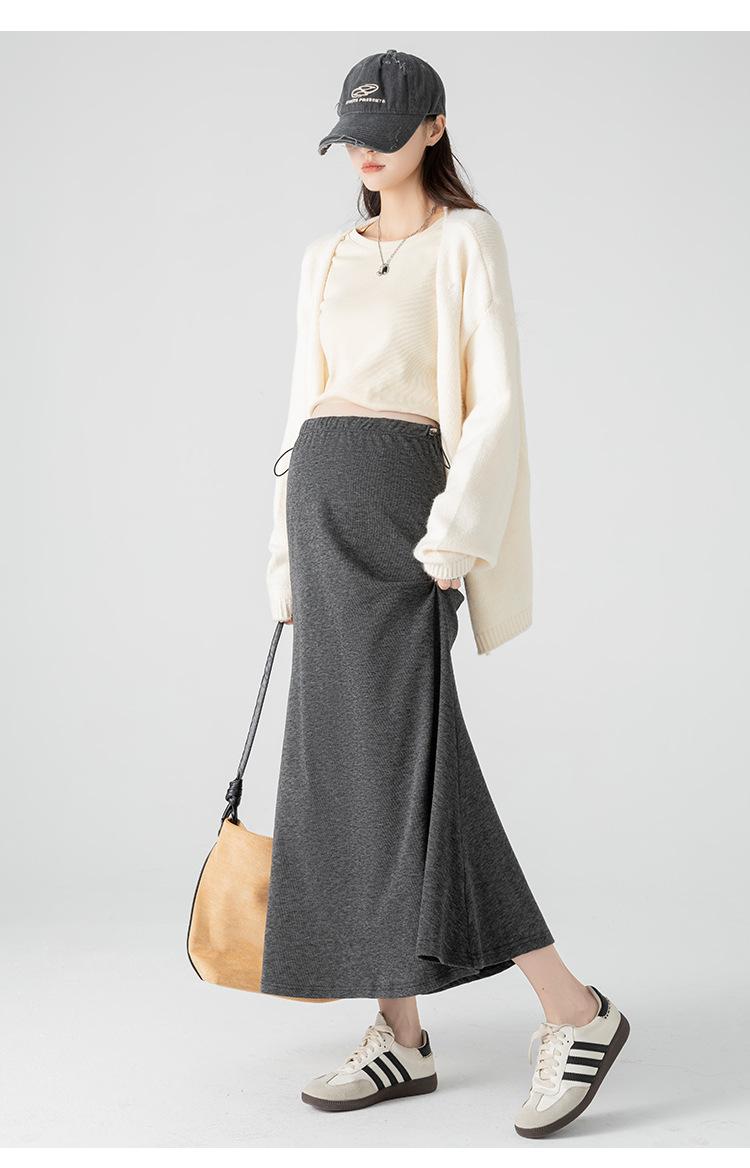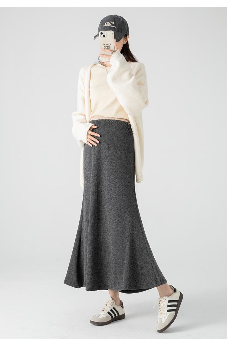 Falda con Cordón para Mujeres Embarazadas Forrada de Polar y Engrosada Suave y Encerada Drapeada Falda de Maternidad Otoño e Invierno Nueva Falda Larga Versátil de Cola de Pez