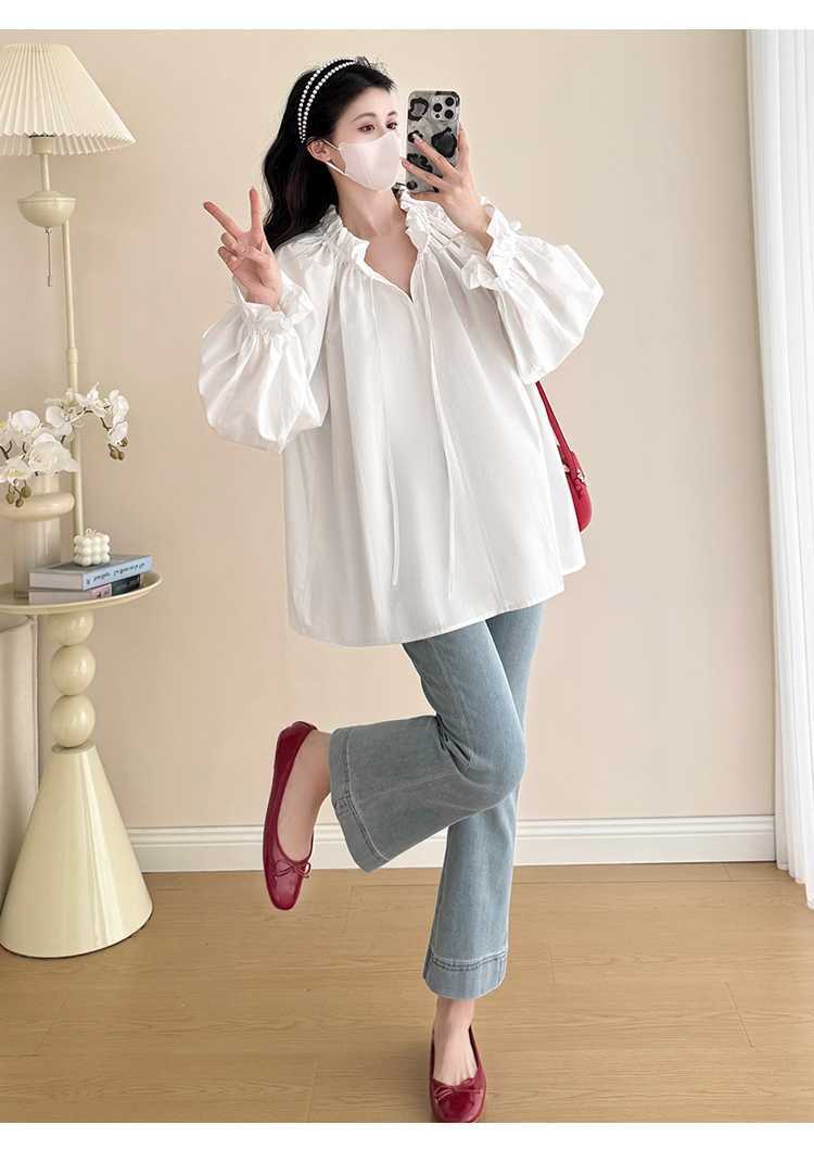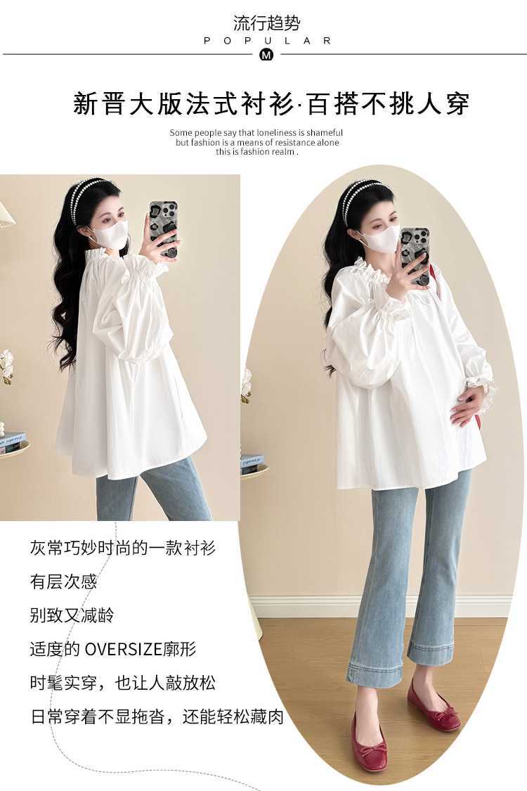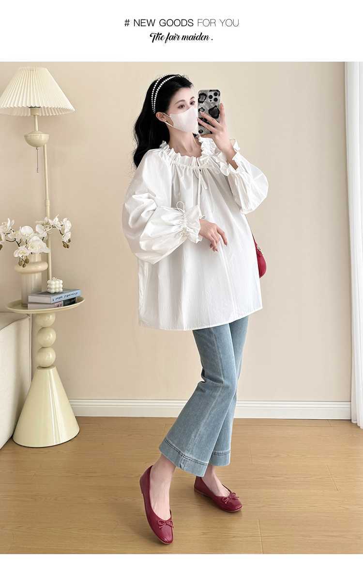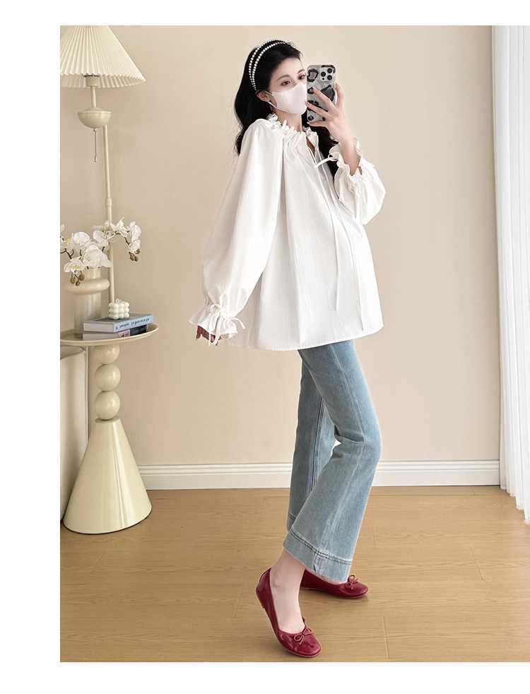 Camisa de maternidad de primavera 2025, nueva y moderna, para mamás, que cubre el vientre y reduce la edad, estilo coreano, sencilla, para embarazadas.
