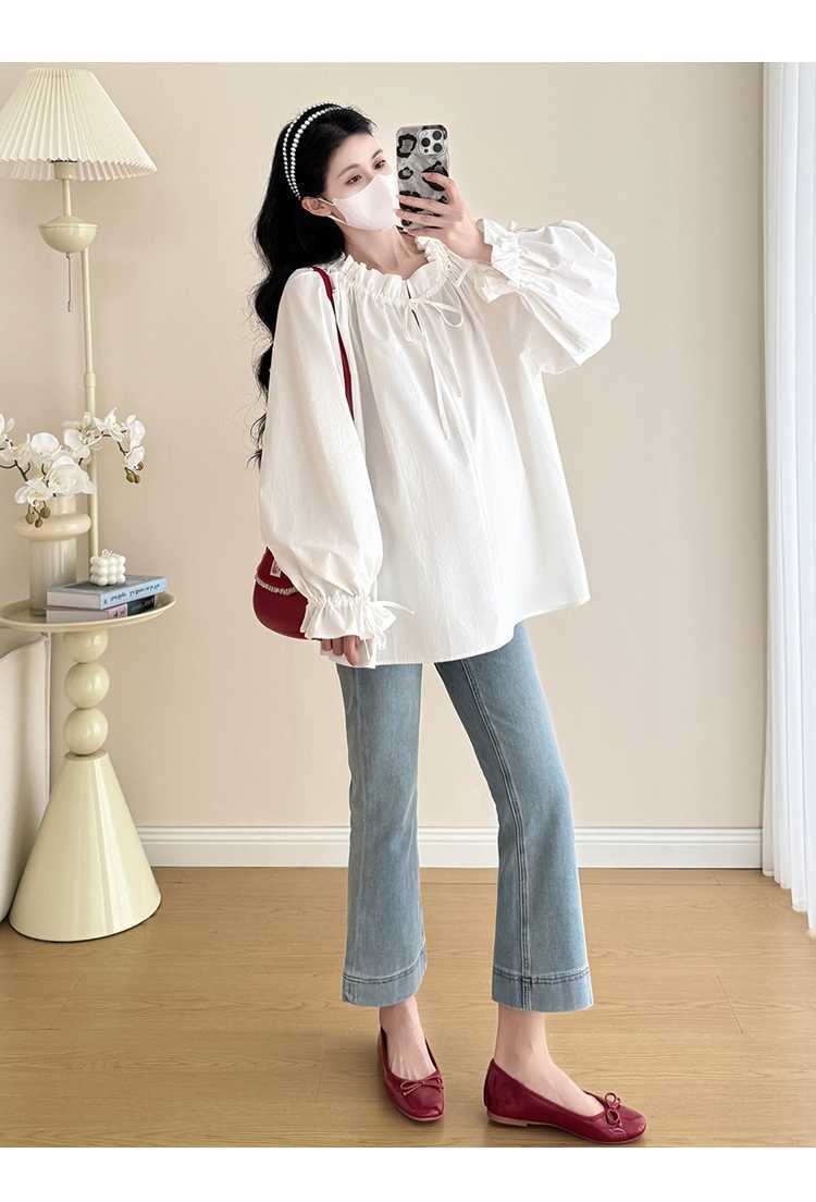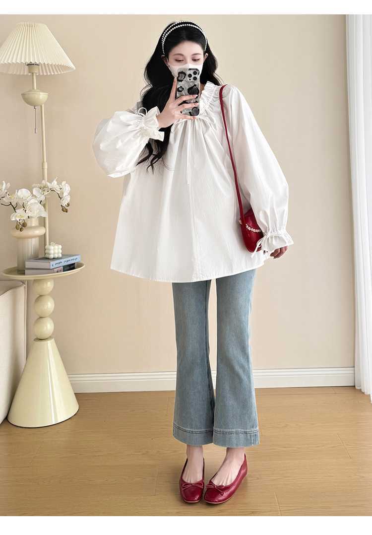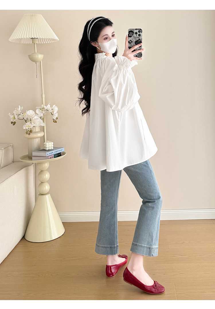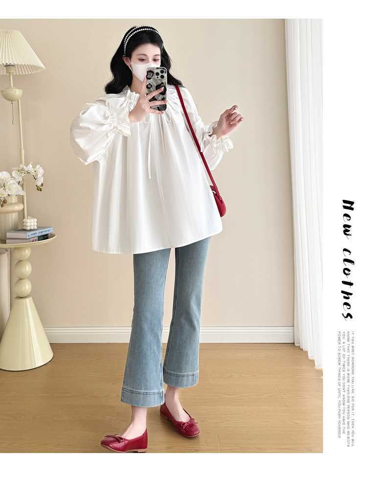 Camisa de maternidad de primavera 2025, nueva y moderna, para mamás, que cubre el vientre y reduce la edad, estilo coreano, sencilla, para embarazadas.
