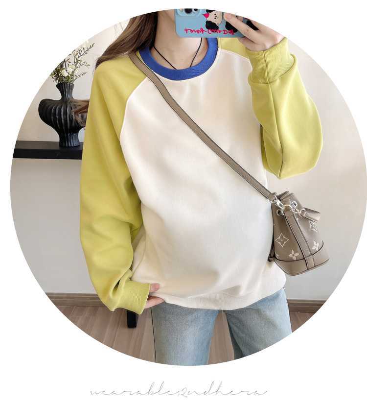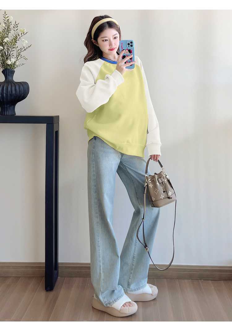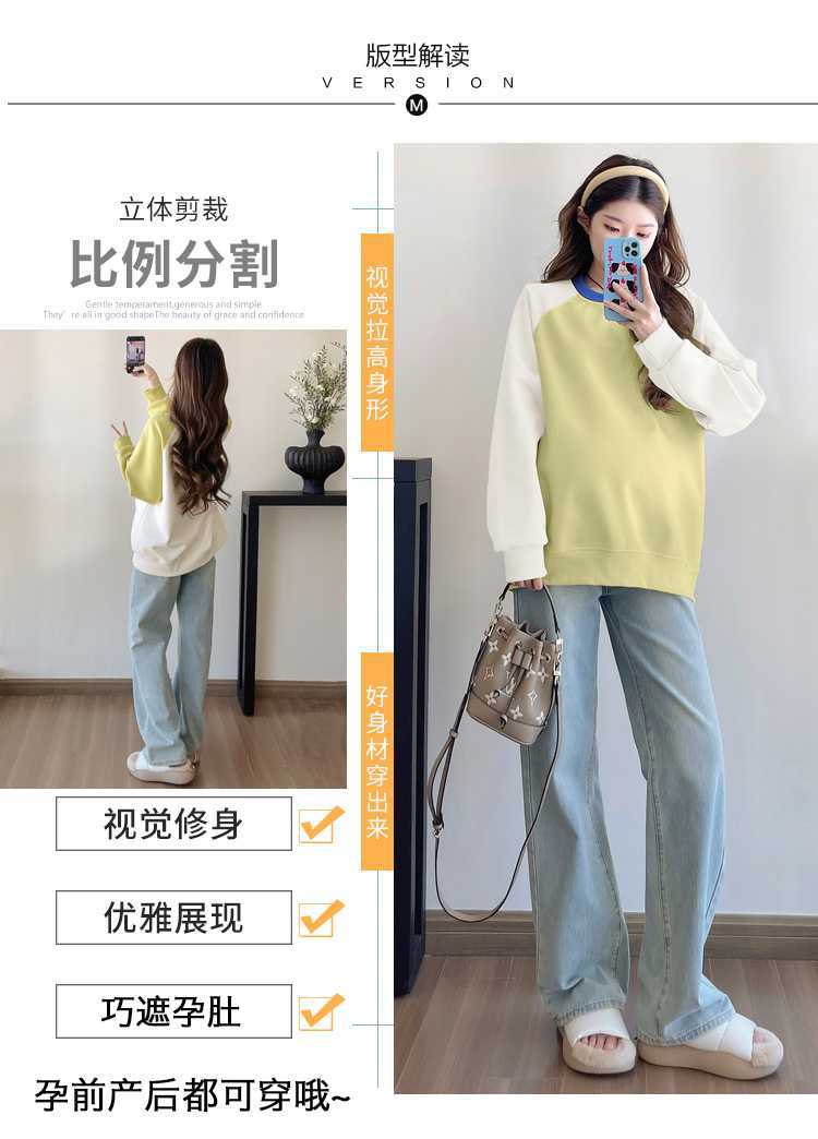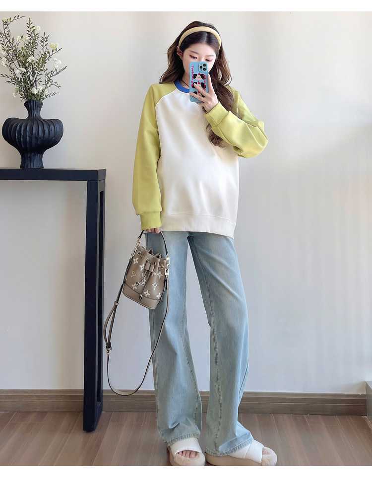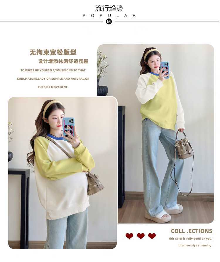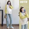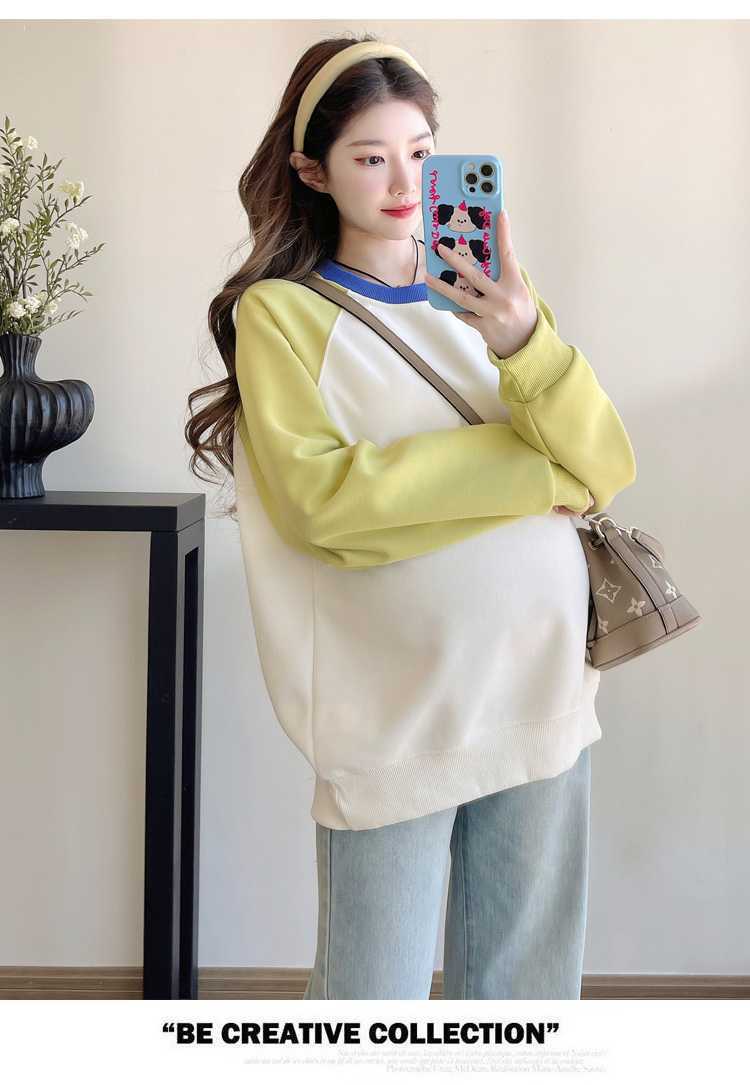 Camiseta de manga larga de dos piezas con costuras falsas para maternidad de primavera 2025, estilo coreano, holgada y sencilla, para embarazadas