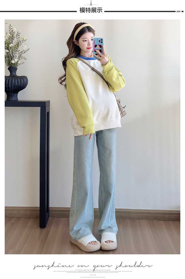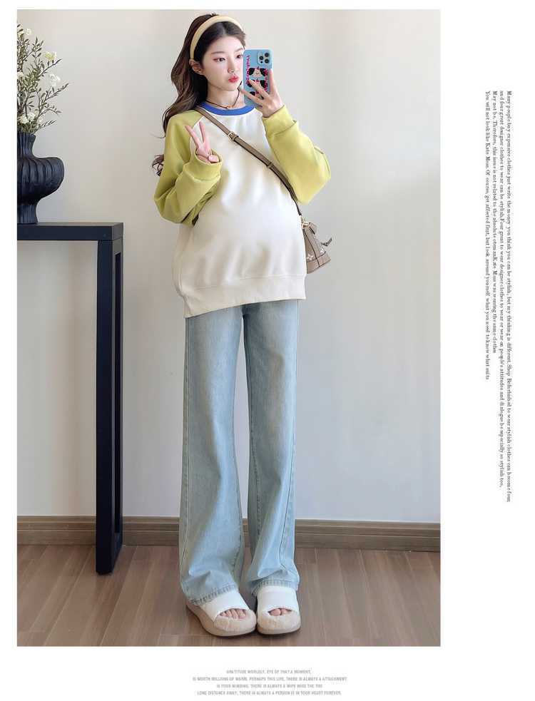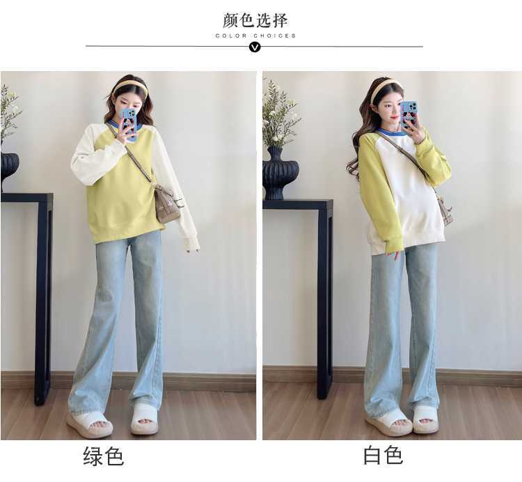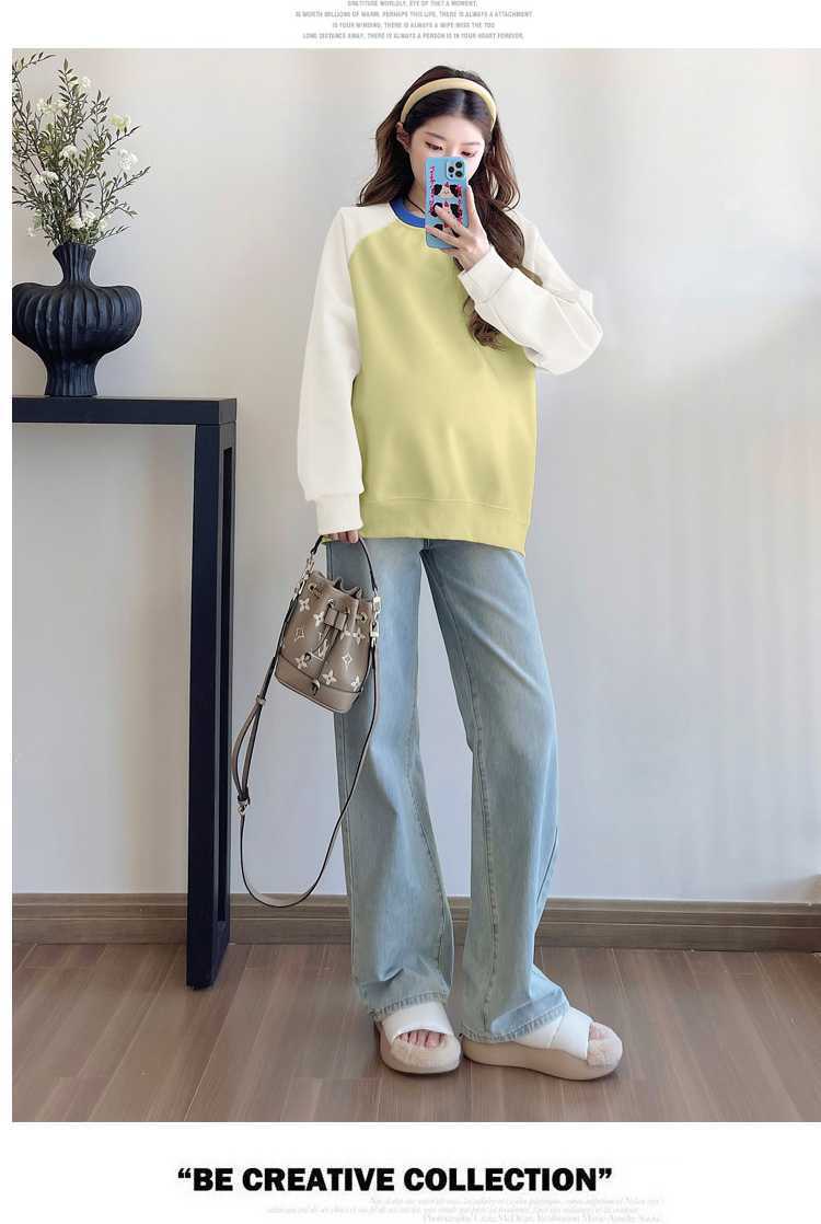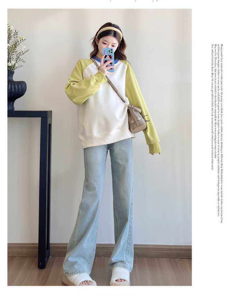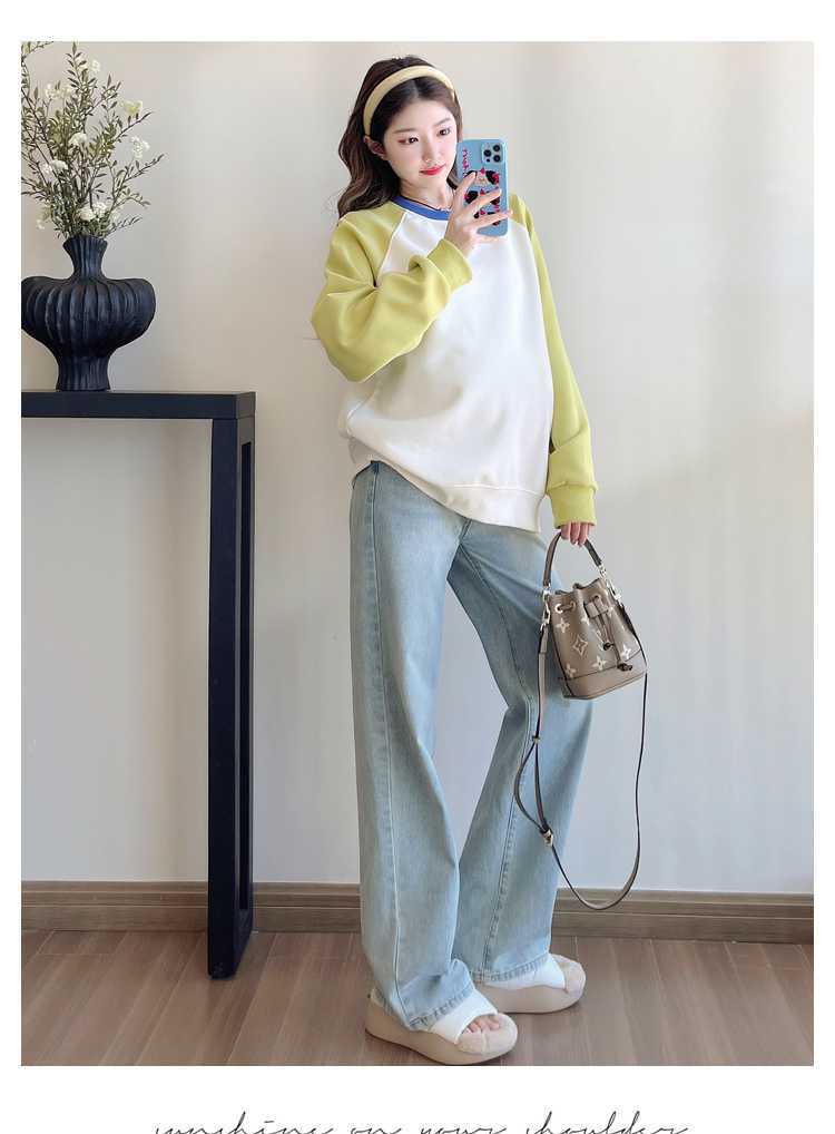 Camiseta de manga larga de dos piezas con costuras falsas para maternidad de primavera 2025, estilo coreano, holgada y sencilla, para embarazadas