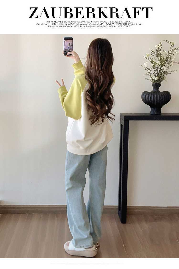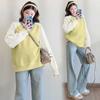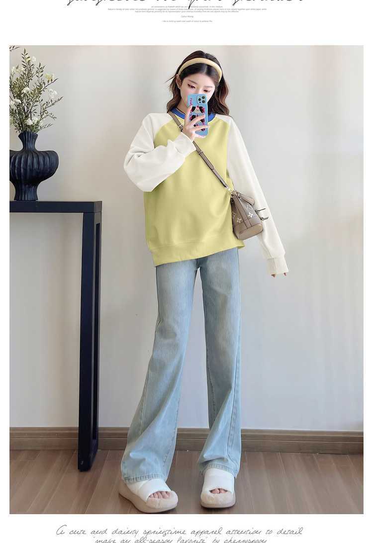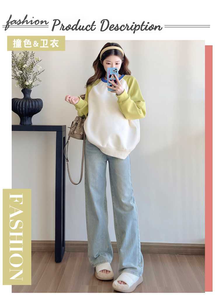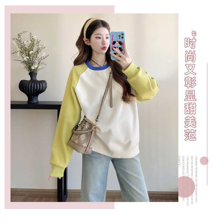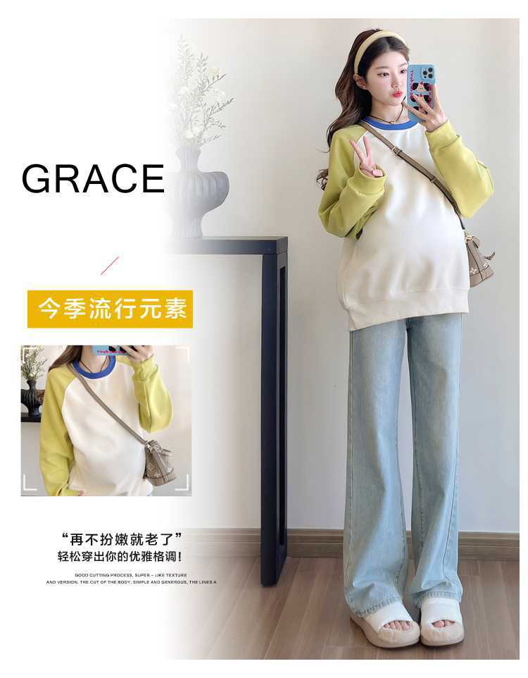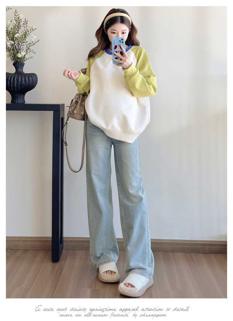 Camiseta de manga larga de dos piezas con costuras falsas para maternidad de primavera 2025, estilo coreano, holgada y sencilla, para embarazadas