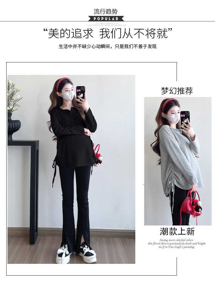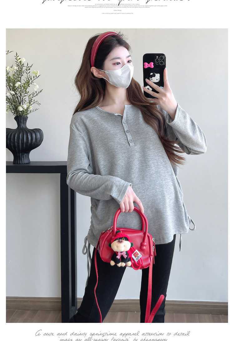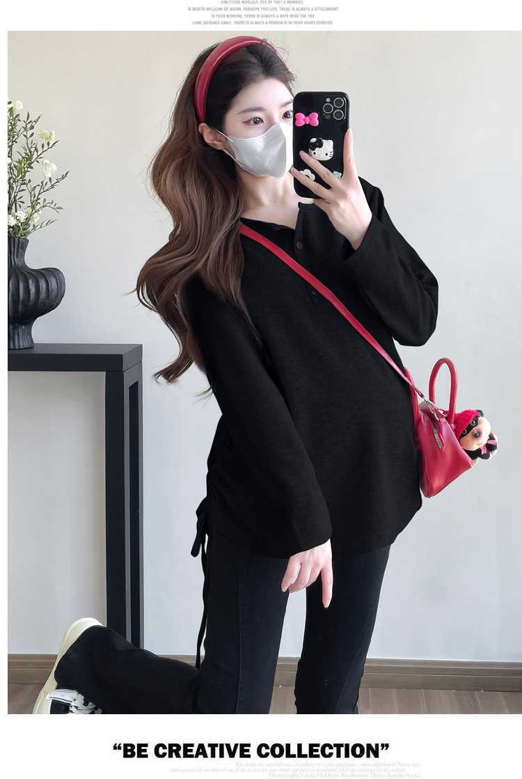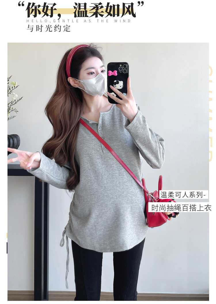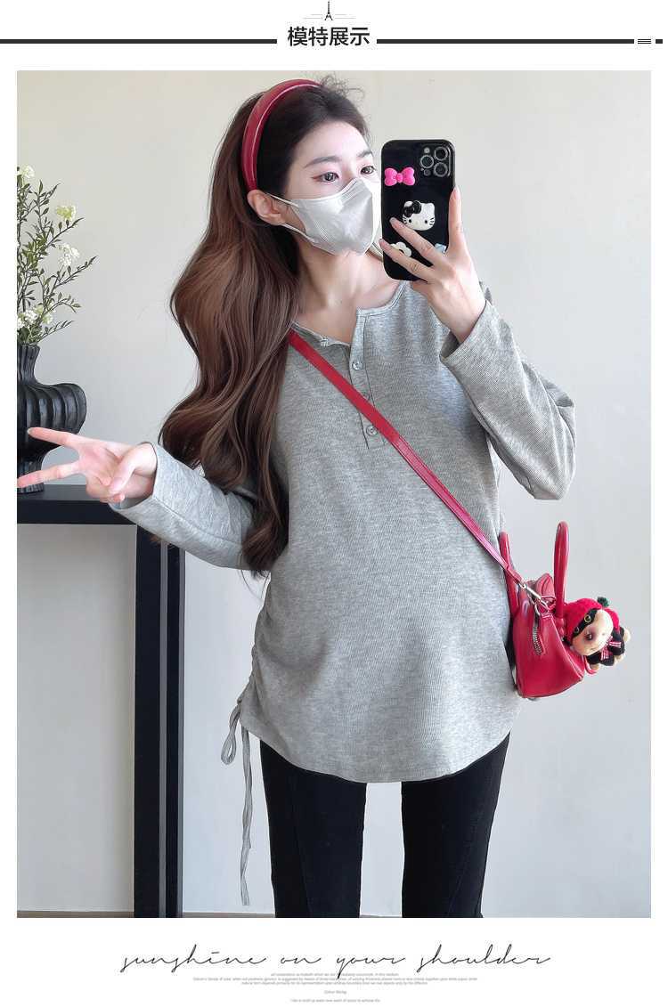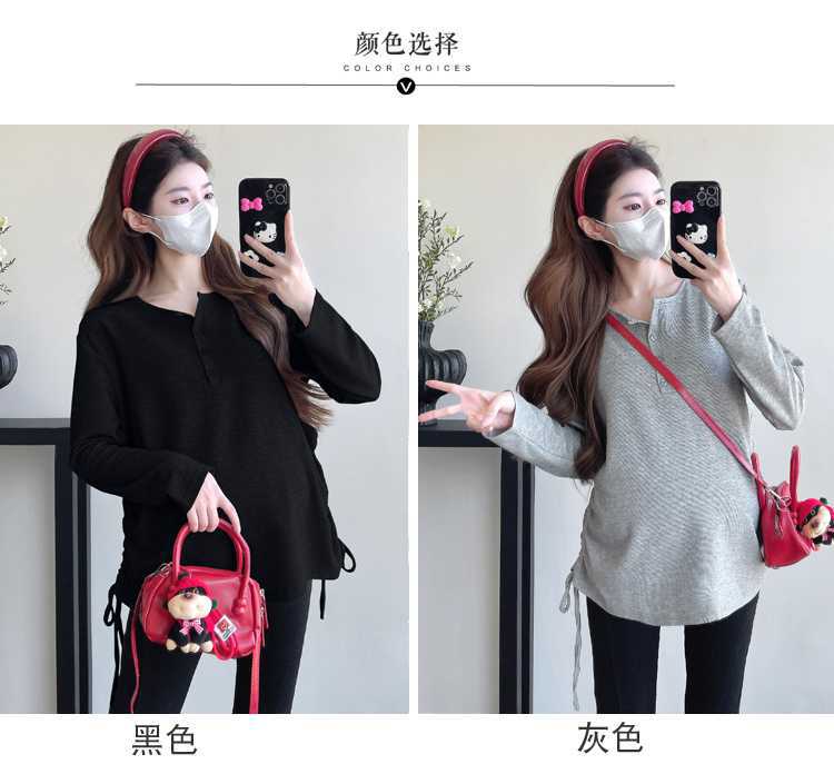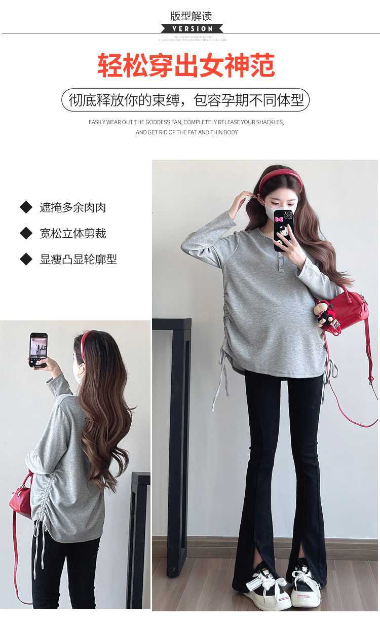 Vestido de maternidad de primavera 2025, diseño de moda, top de manga larga con cordón, nueva camiseta sencilla y holgada para embarazadas.