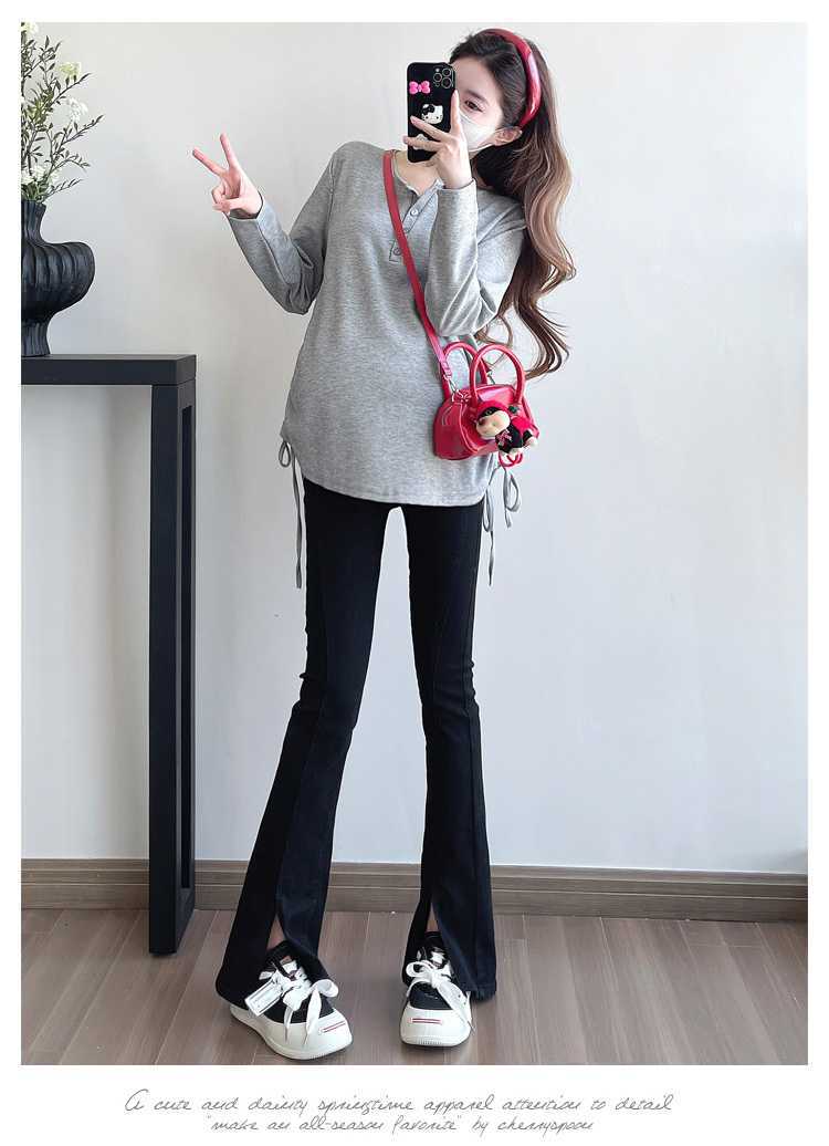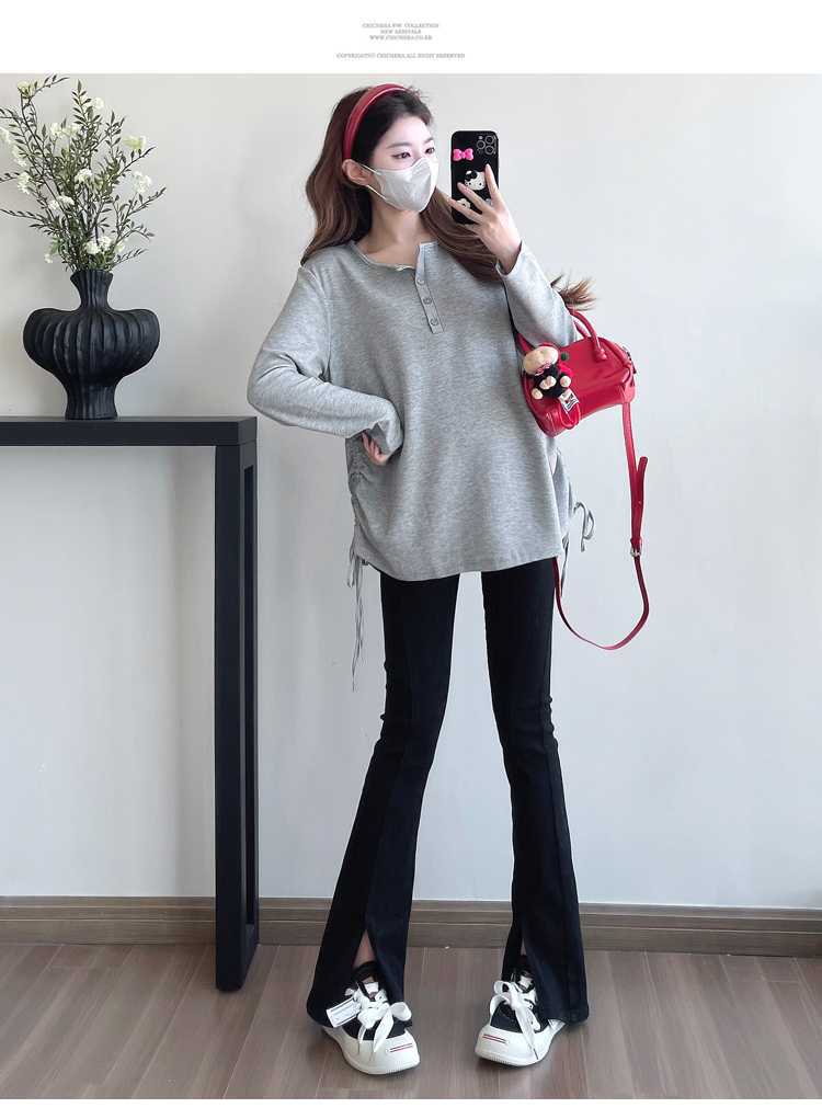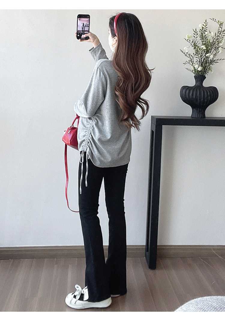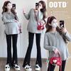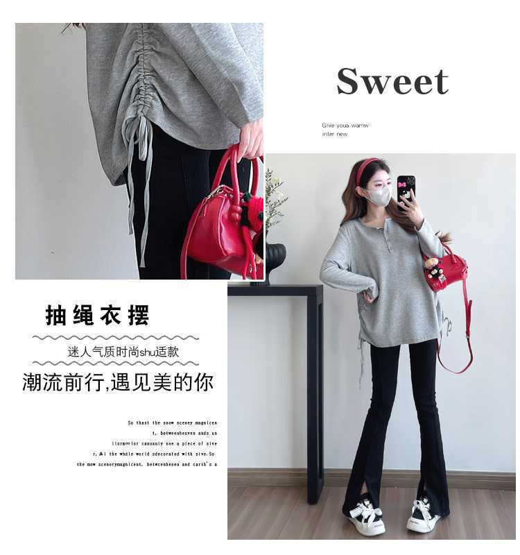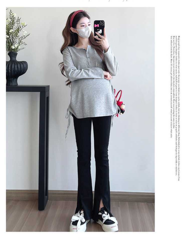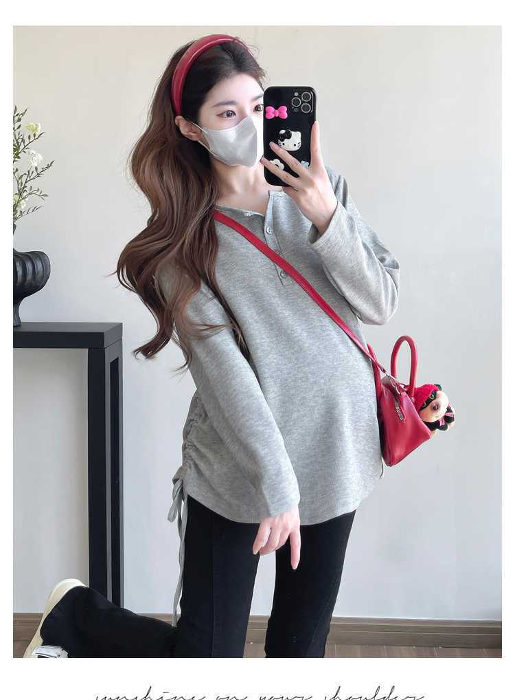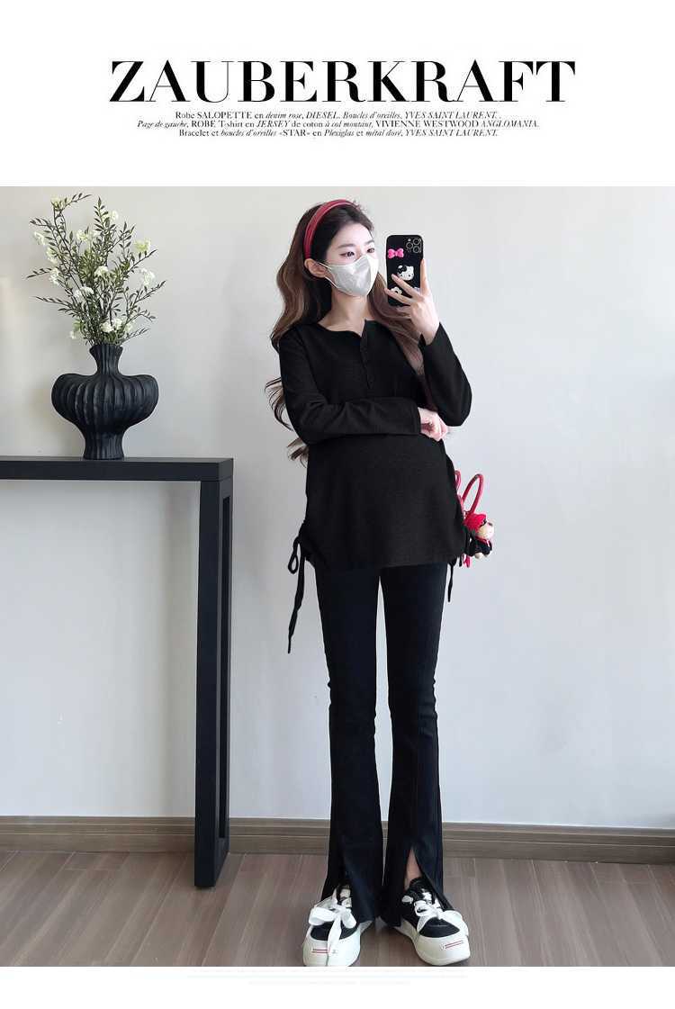 Vestido de maternidad de primavera 2025, diseño de moda, top de manga larga con cordón, nueva camiseta sencilla y holgada para embarazadas.