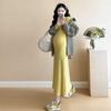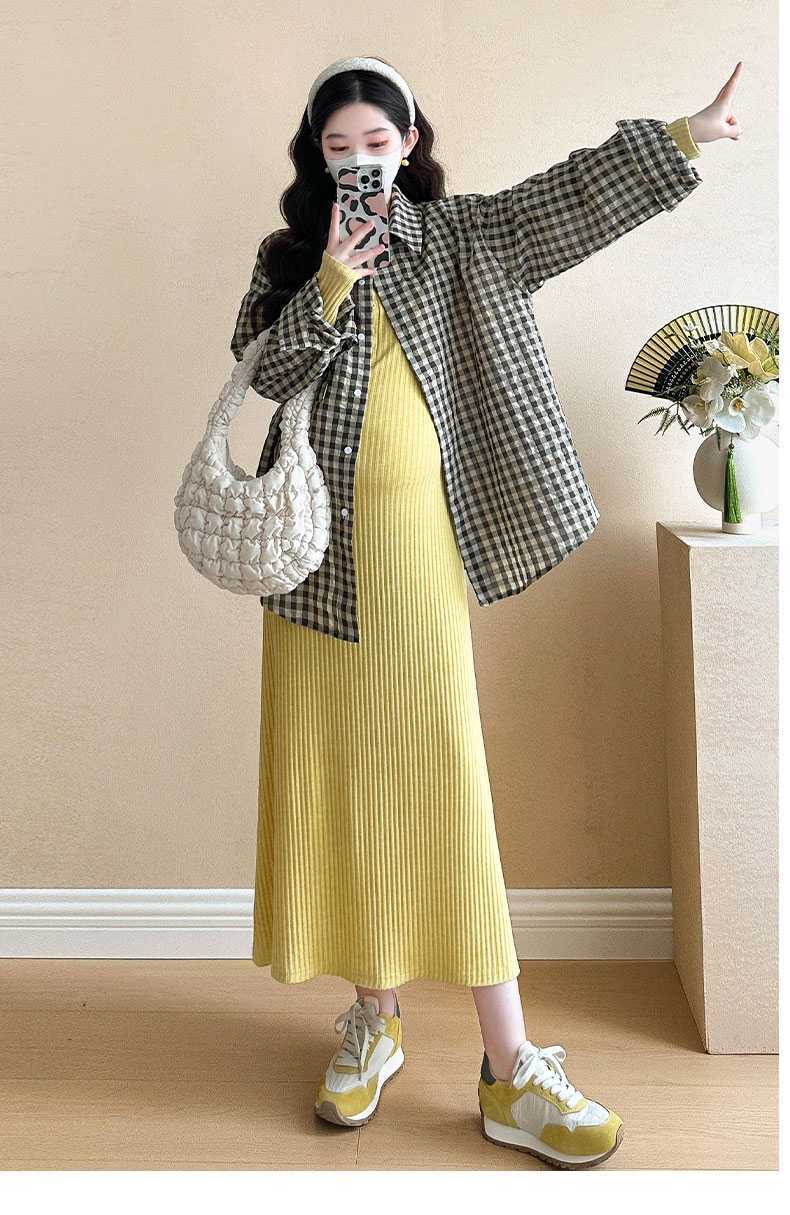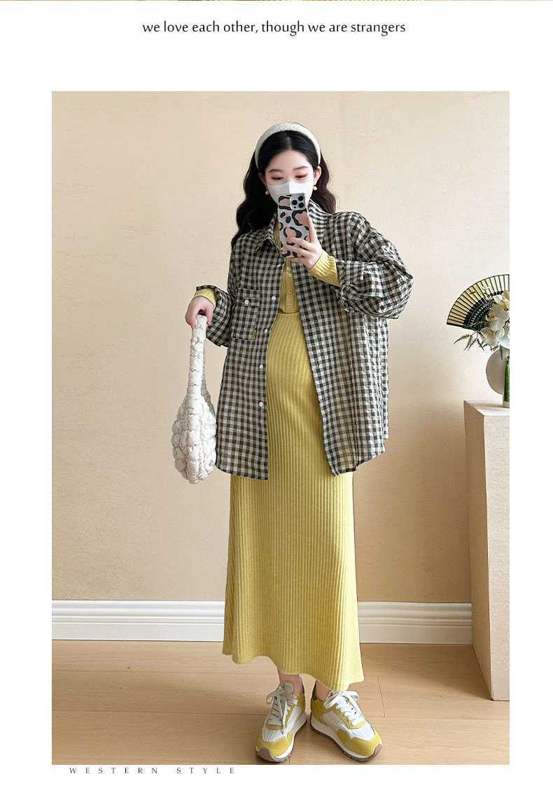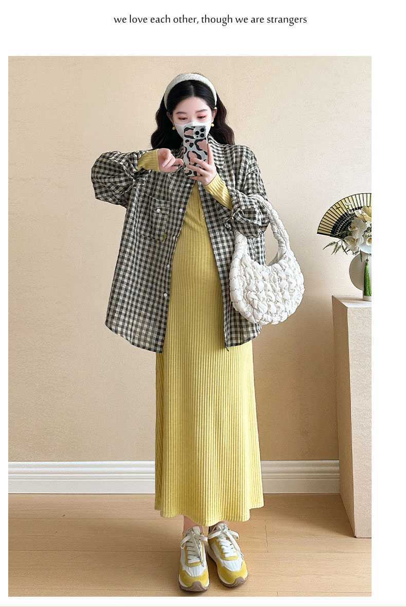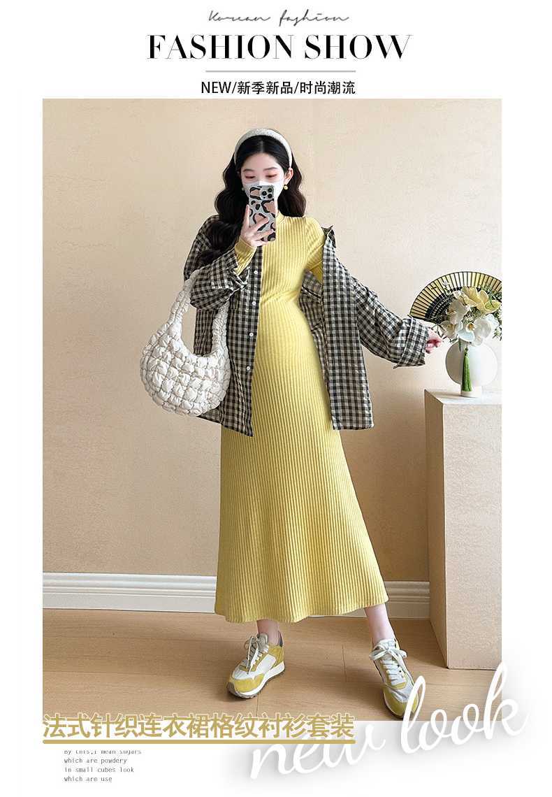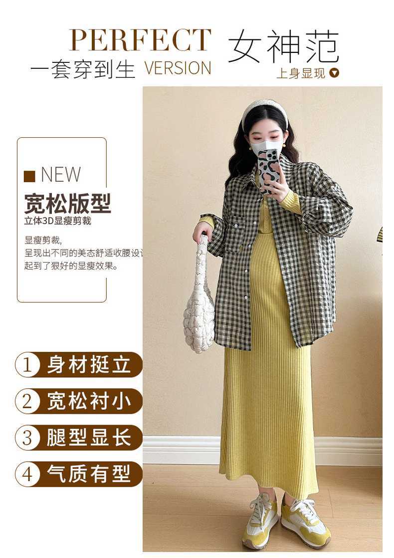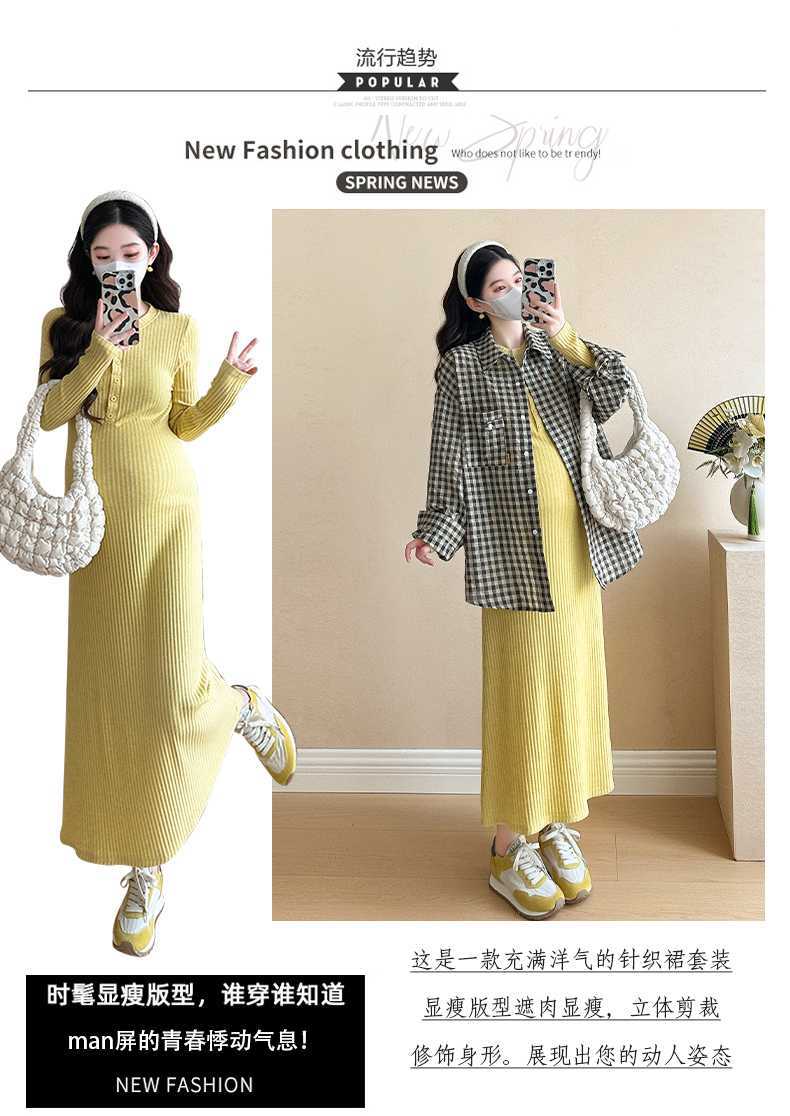 Vestido de maternidad de primavera 2025, estilo informal, de dos piezas, nuevo, de manga larga, ajustado, adelgazante, para embarazadas.