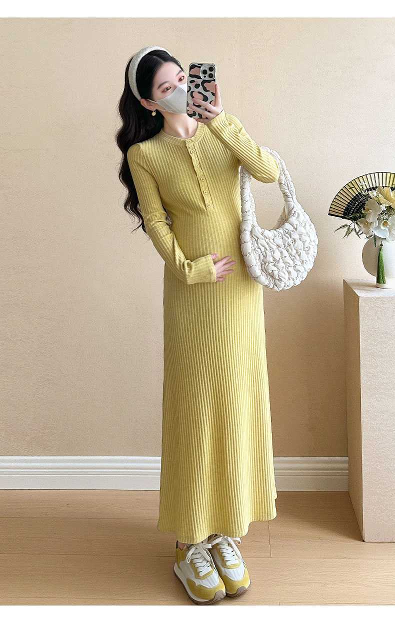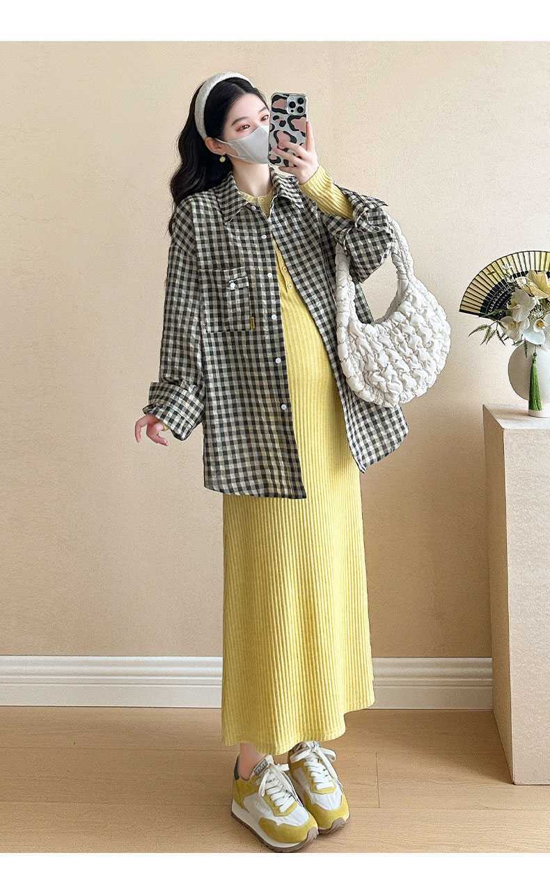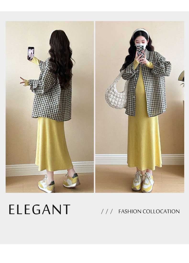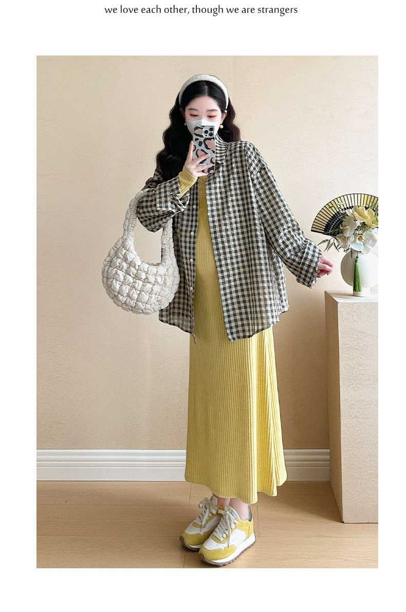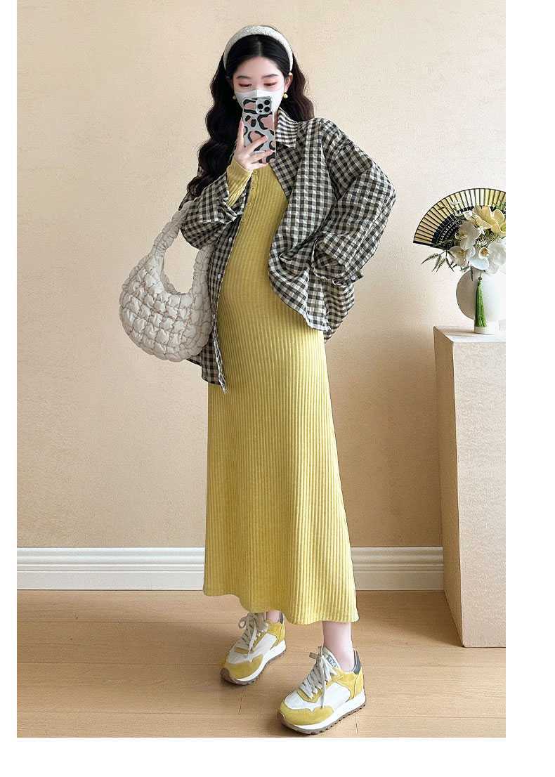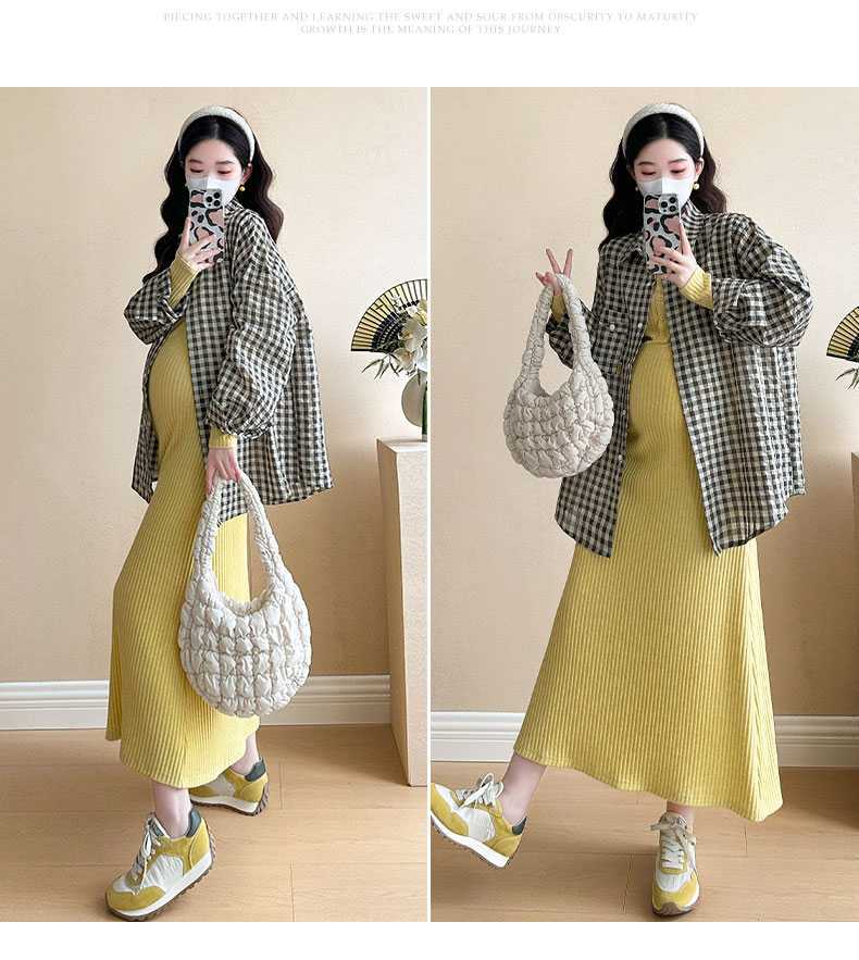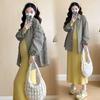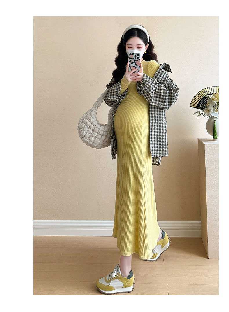 Vestido de maternidad de primavera 2025, estilo informal, de dos piezas, nuevo, de manga larga, ajustado, adelgazante, para embarazadas.