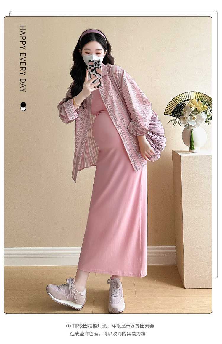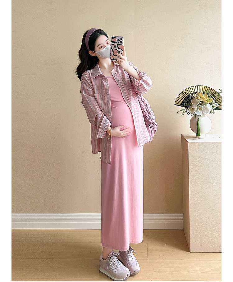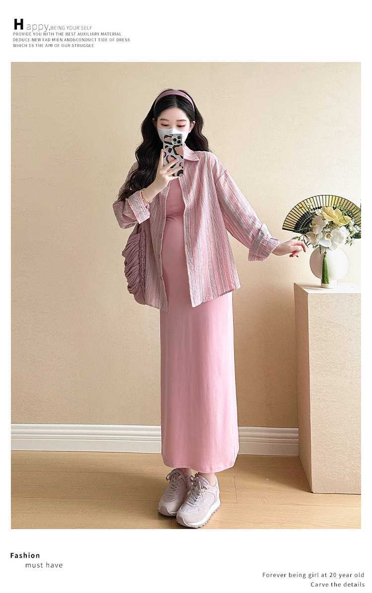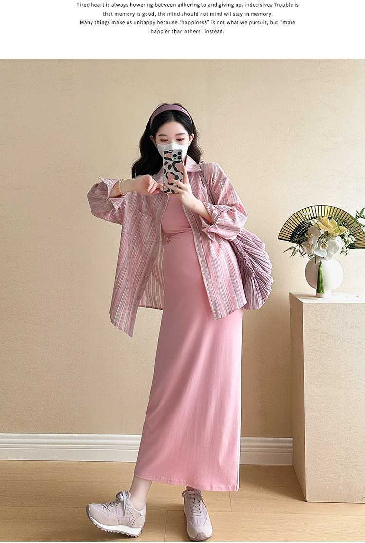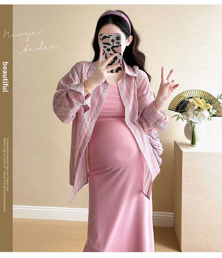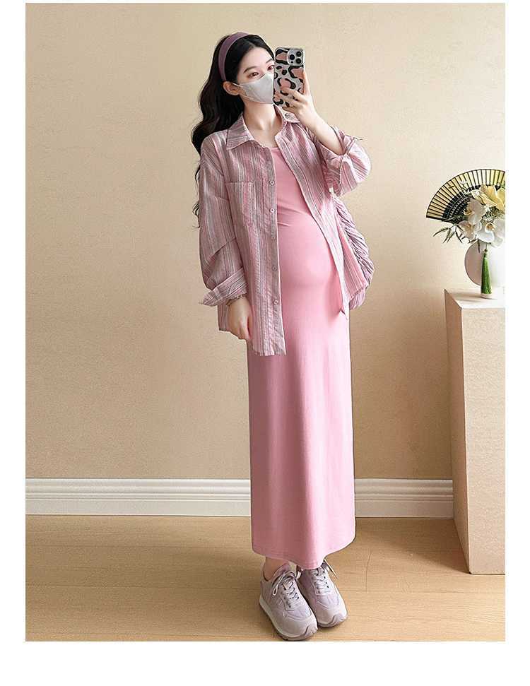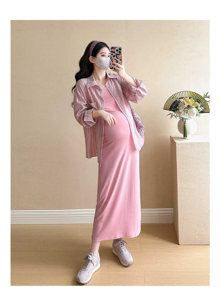 2025 primavera mujeres embarazadas francés edad reducción de dos piezas nueva ropa de maternidad camisa de rayas coreanas mujeres embarazadas tirantes falda