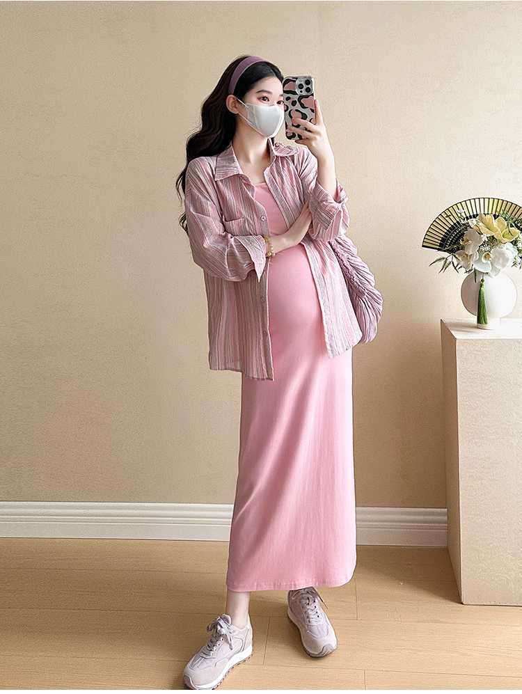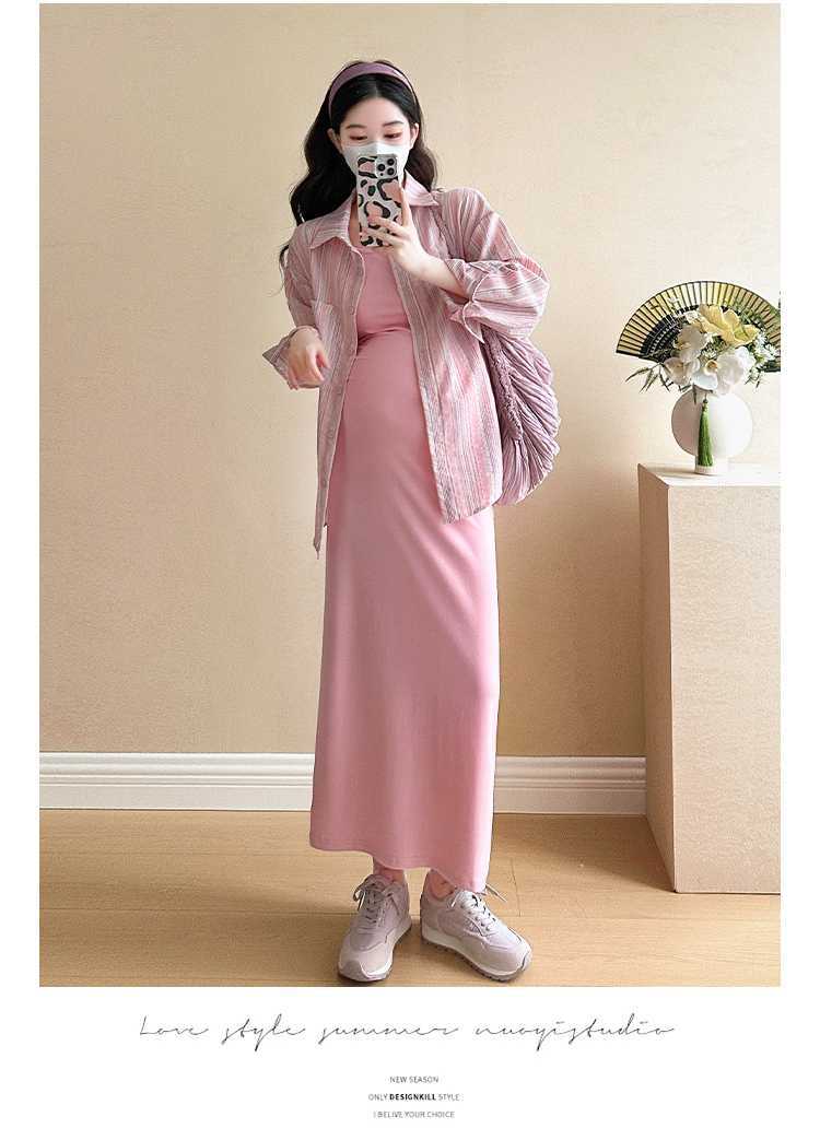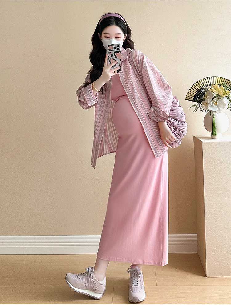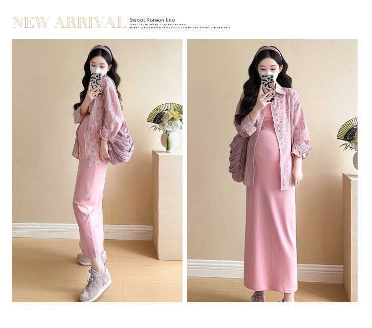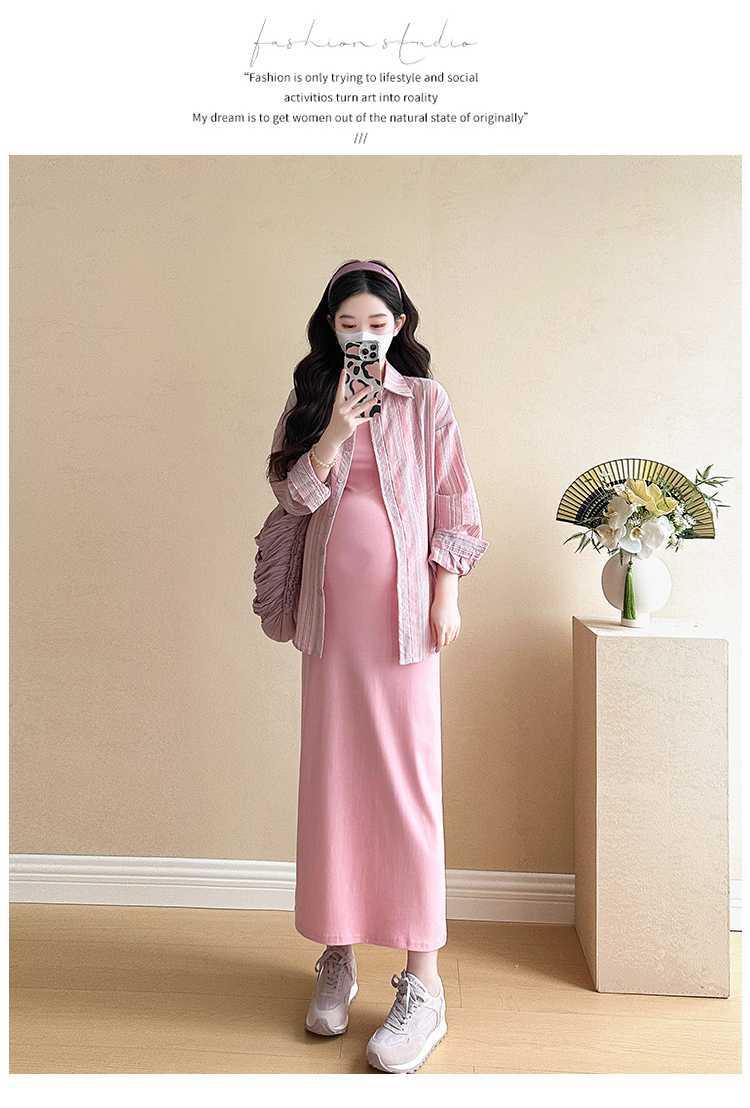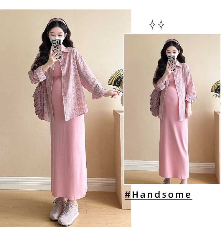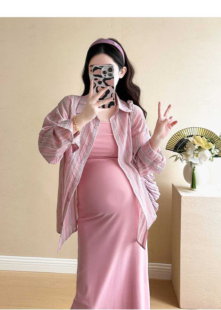 2025 primavera mujeres embarazadas francés edad reducción de dos piezas nueva ropa de maternidad camisa de rayas coreanas mujeres embarazadas tirantes falda