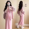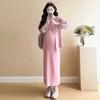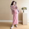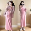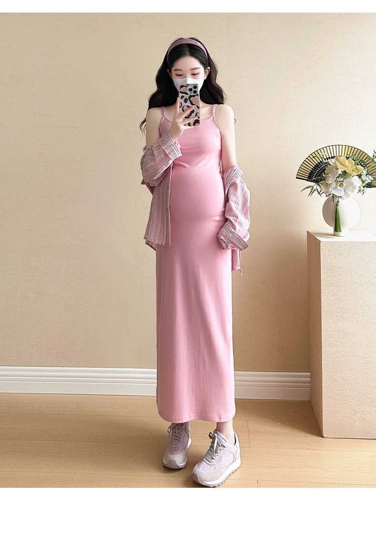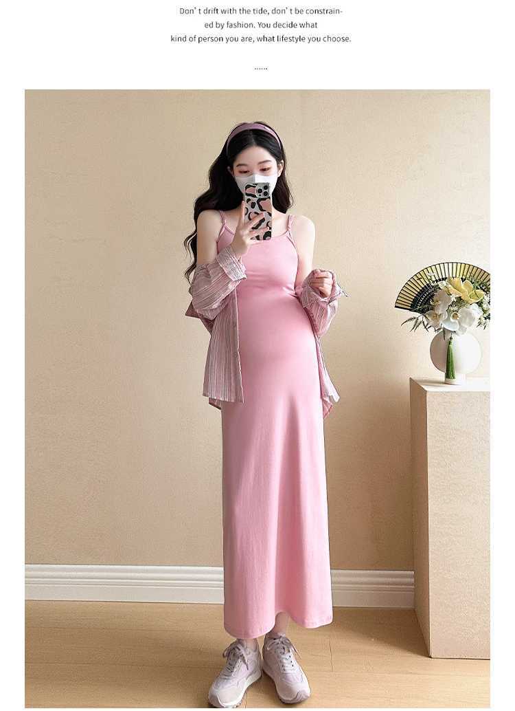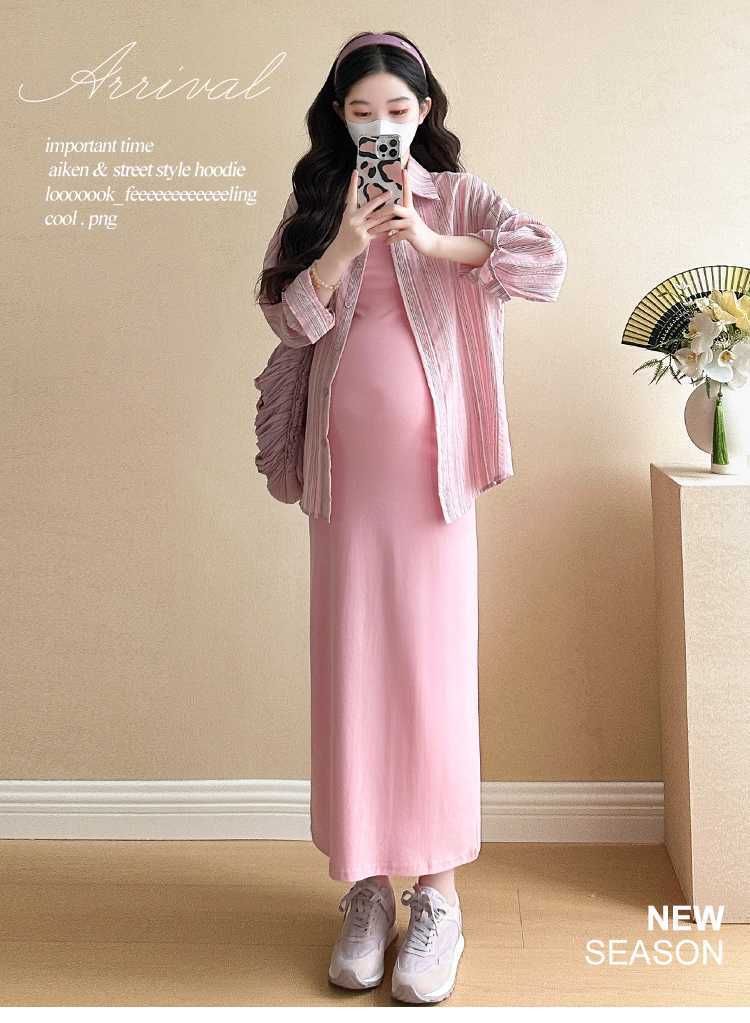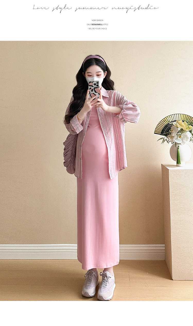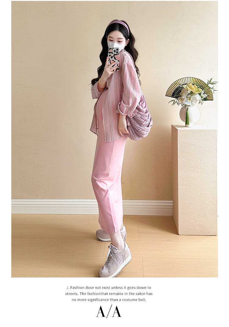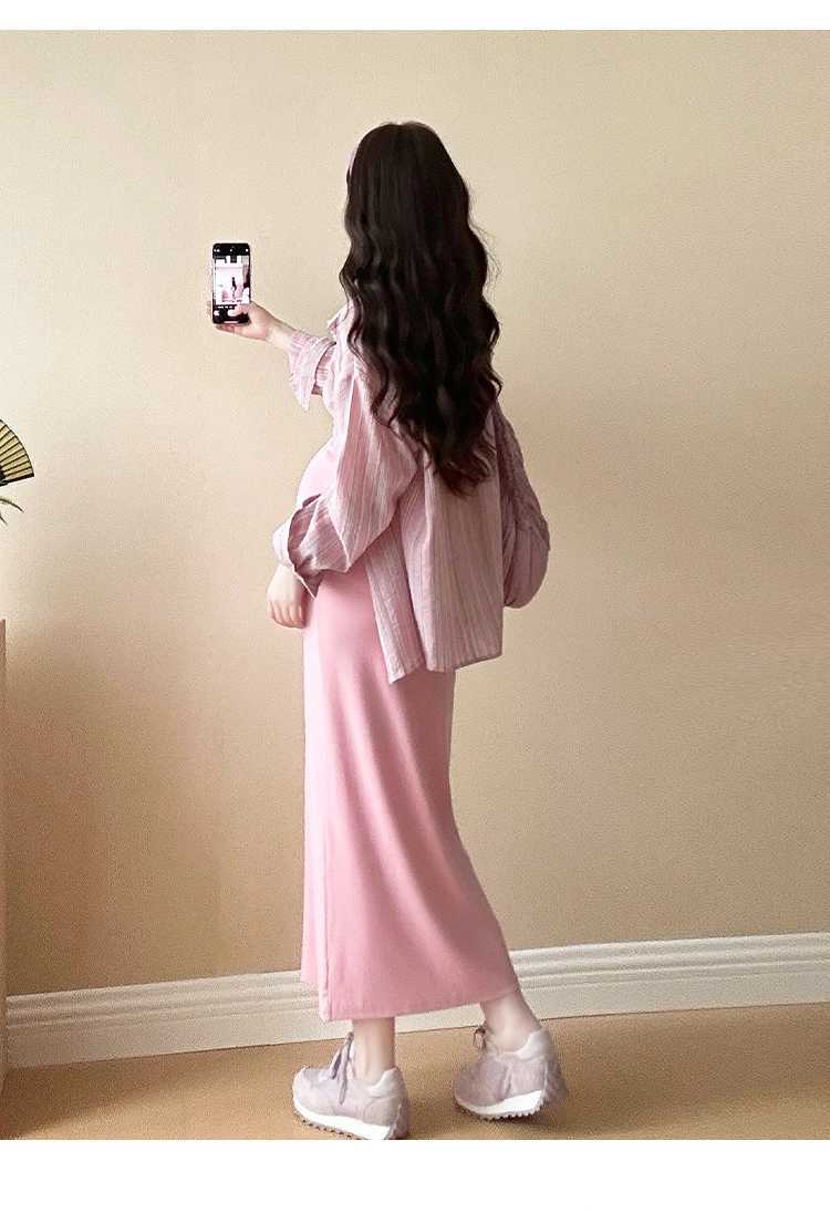 2025 primavera mujeres embarazadas francés edad reducción de dos piezas nueva ropa de maternidad camisa de rayas coreanas mujeres embarazadas tirantes falda