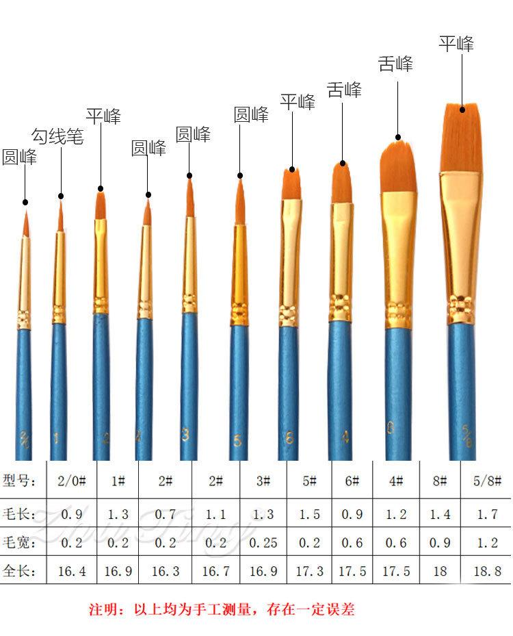 10 juegos de pinceles acrílicos, gouache, óleo, acuarela, pintura acrílica especial, pintura al óleo, bolígrafo de nailon