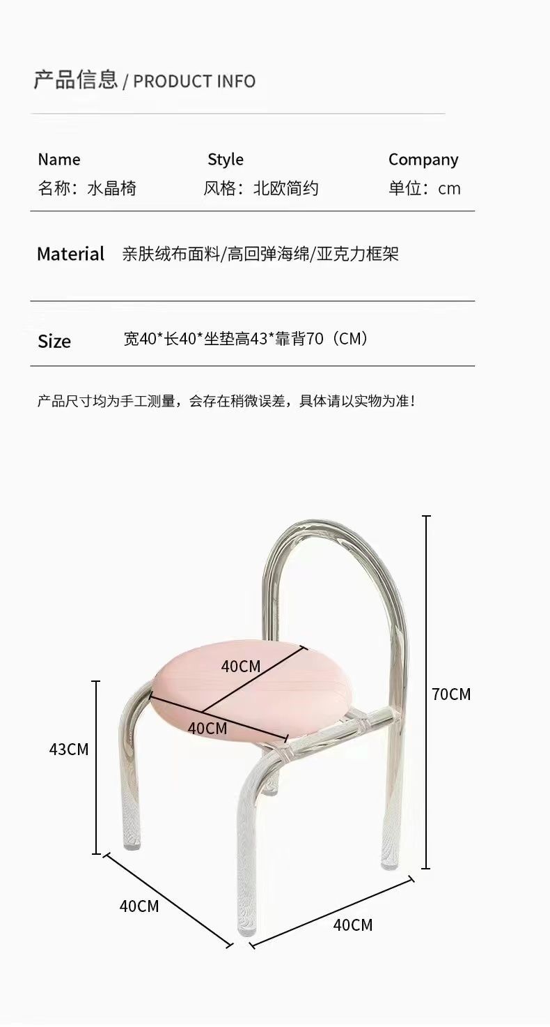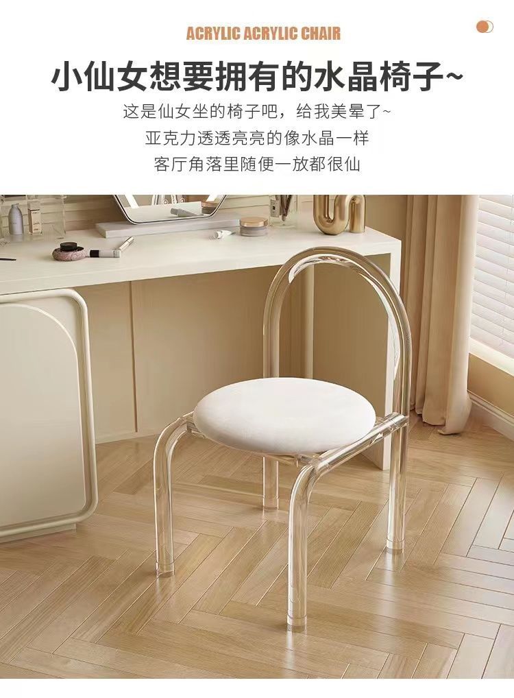 Tocador de celebridades de Internet, silla de maquillaje, silla de acrílico transparente, silla de hadas para dormitorio y balcón, silla de comedor recomendada por el Libro Rojo Pequeño.