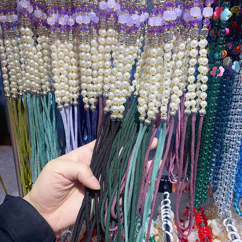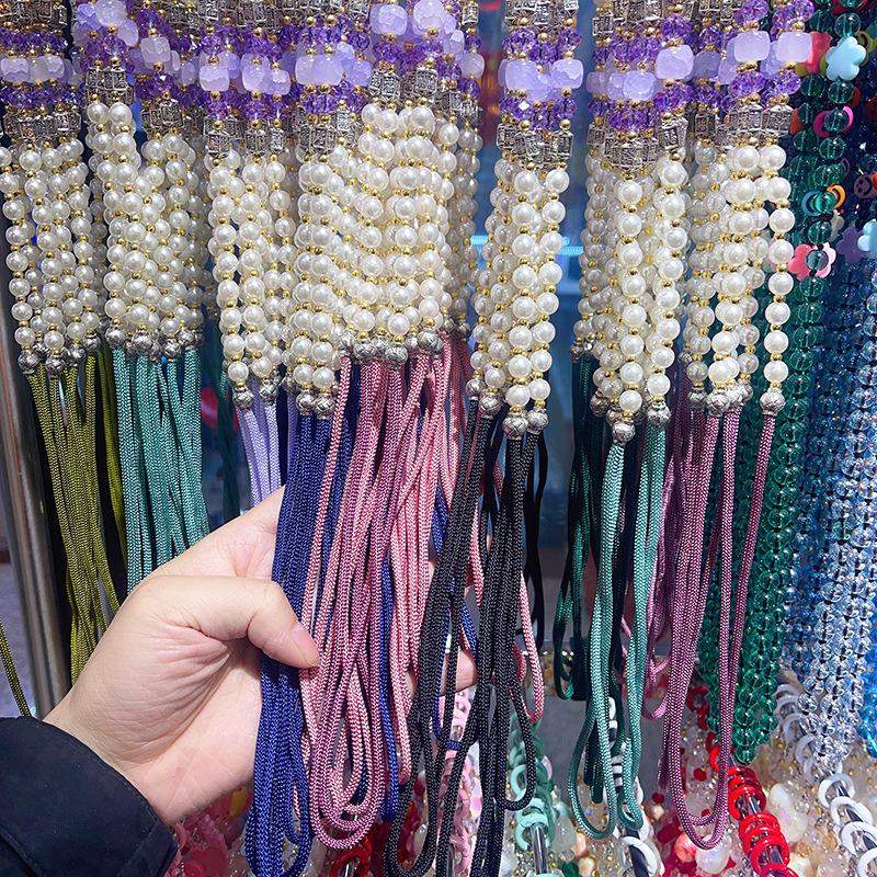 Nuevo cordón para teléfono móvil con cuentas redondas y largas para mujer, cordón de cuello de alta gama, cordón para funda de teléfono móvil