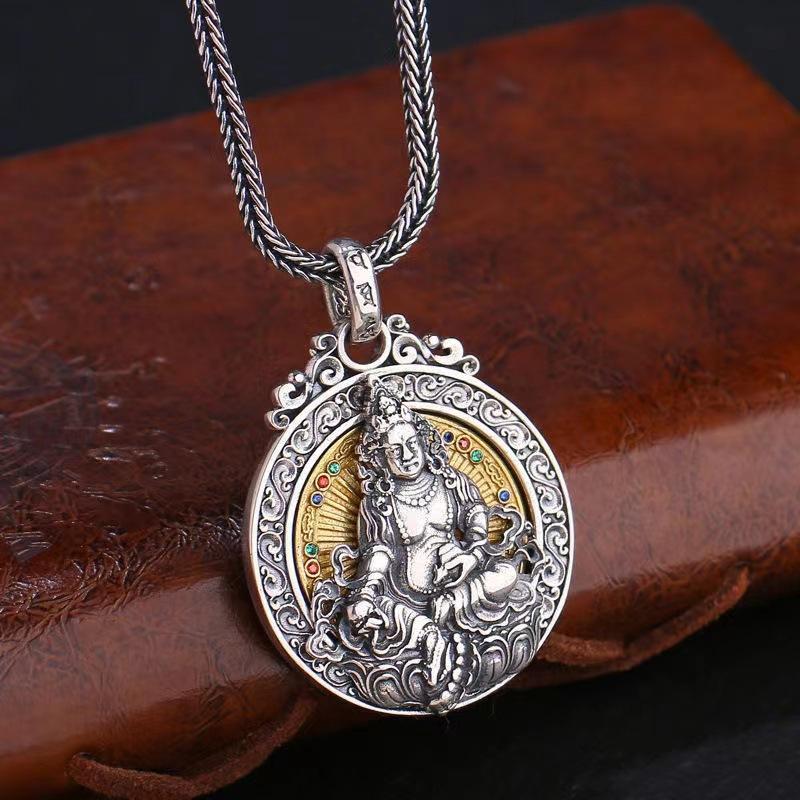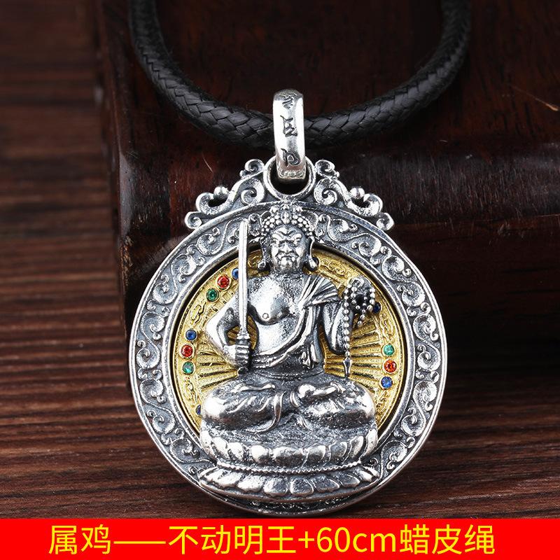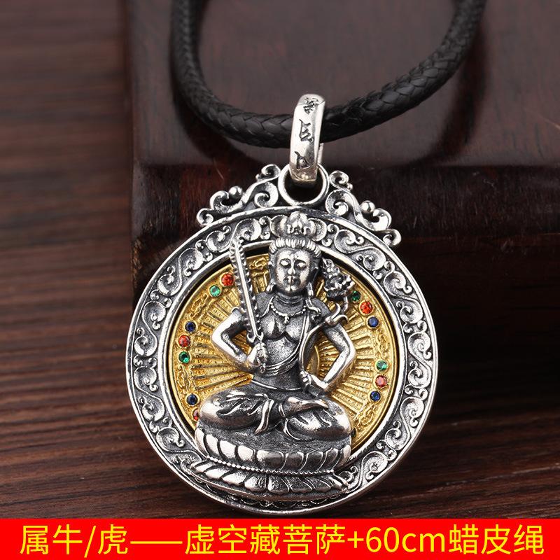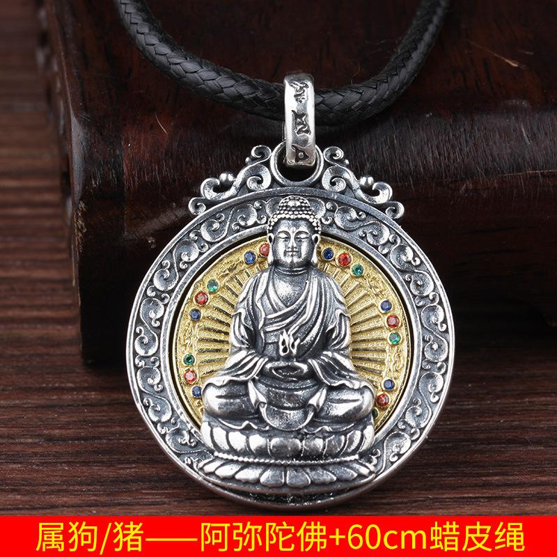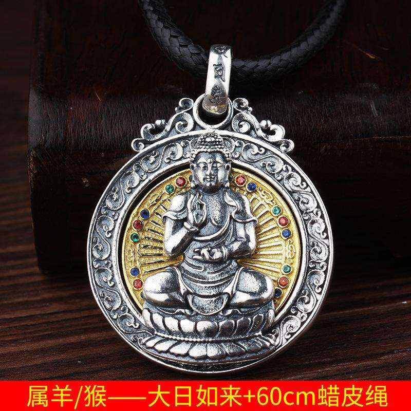 Colgante de año de nacimiento del zodíaco redondo con gran sol, Tathagata, Amitabha, joyería de samurái del vacío, colgante de bodhisattva