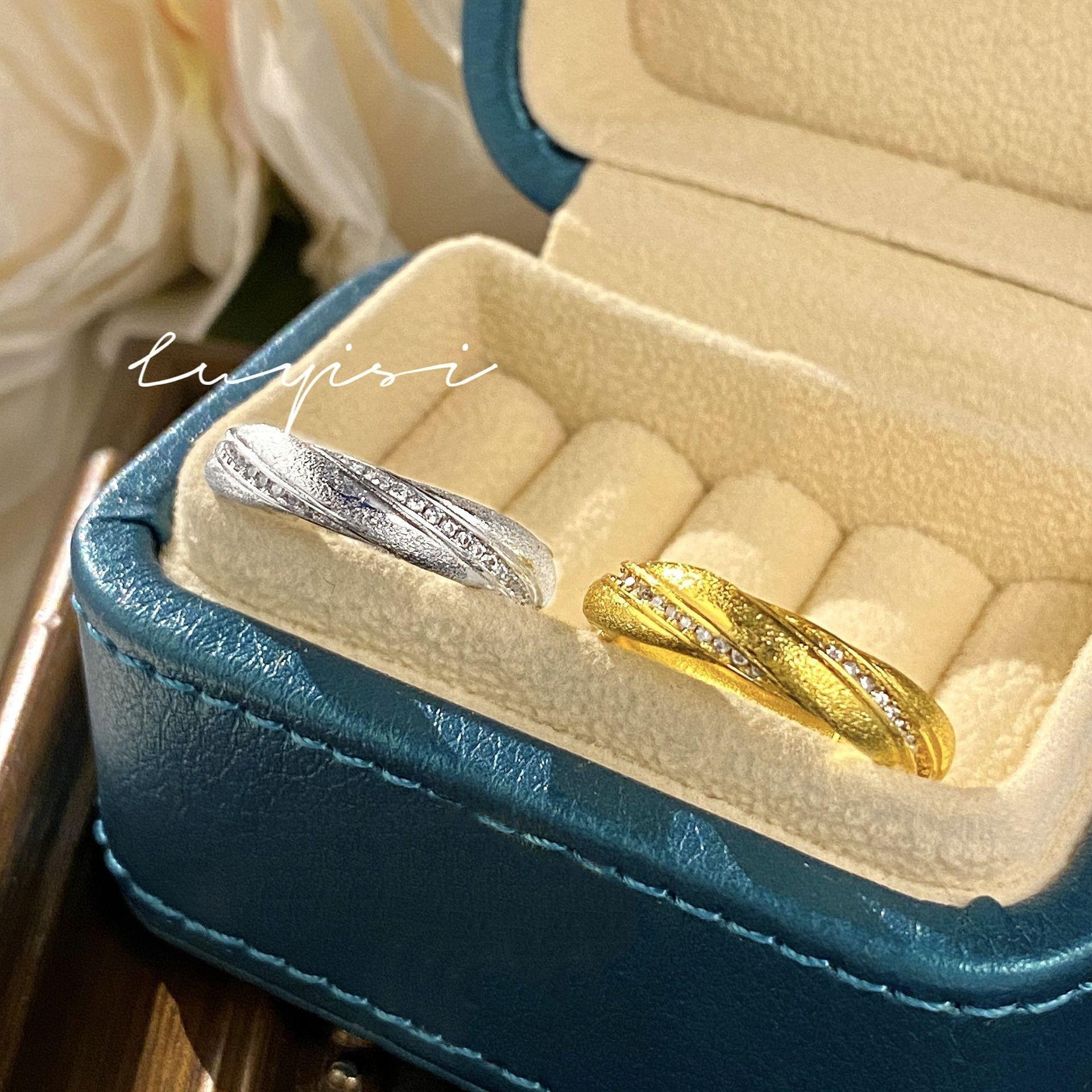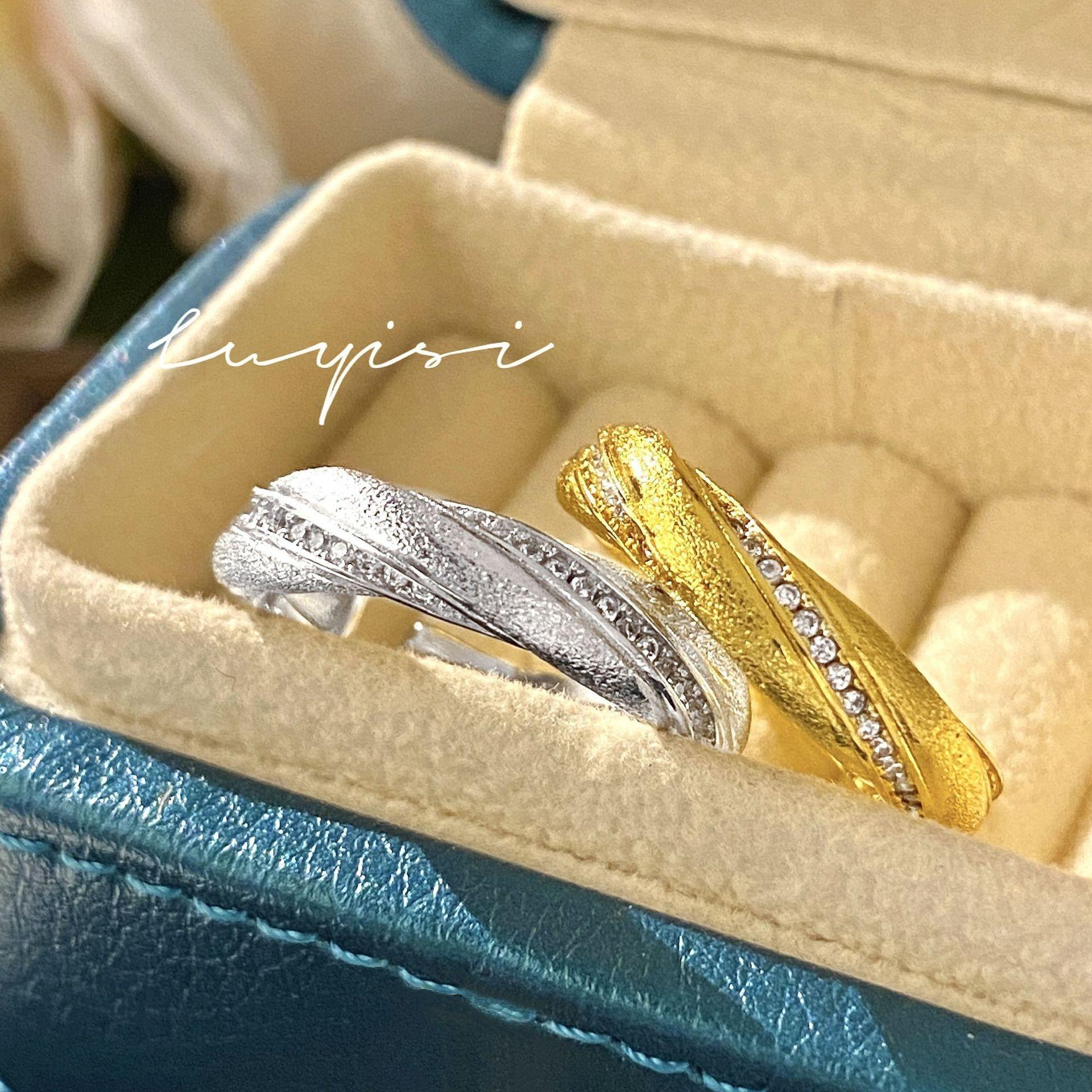 Anillo de Diamante Giratorio Torcido Cepillado Estilo Retro de Industria Pesada de Mediados de Siglo Apilado Versátil Moda Nicho para Mujer Anillo Simple