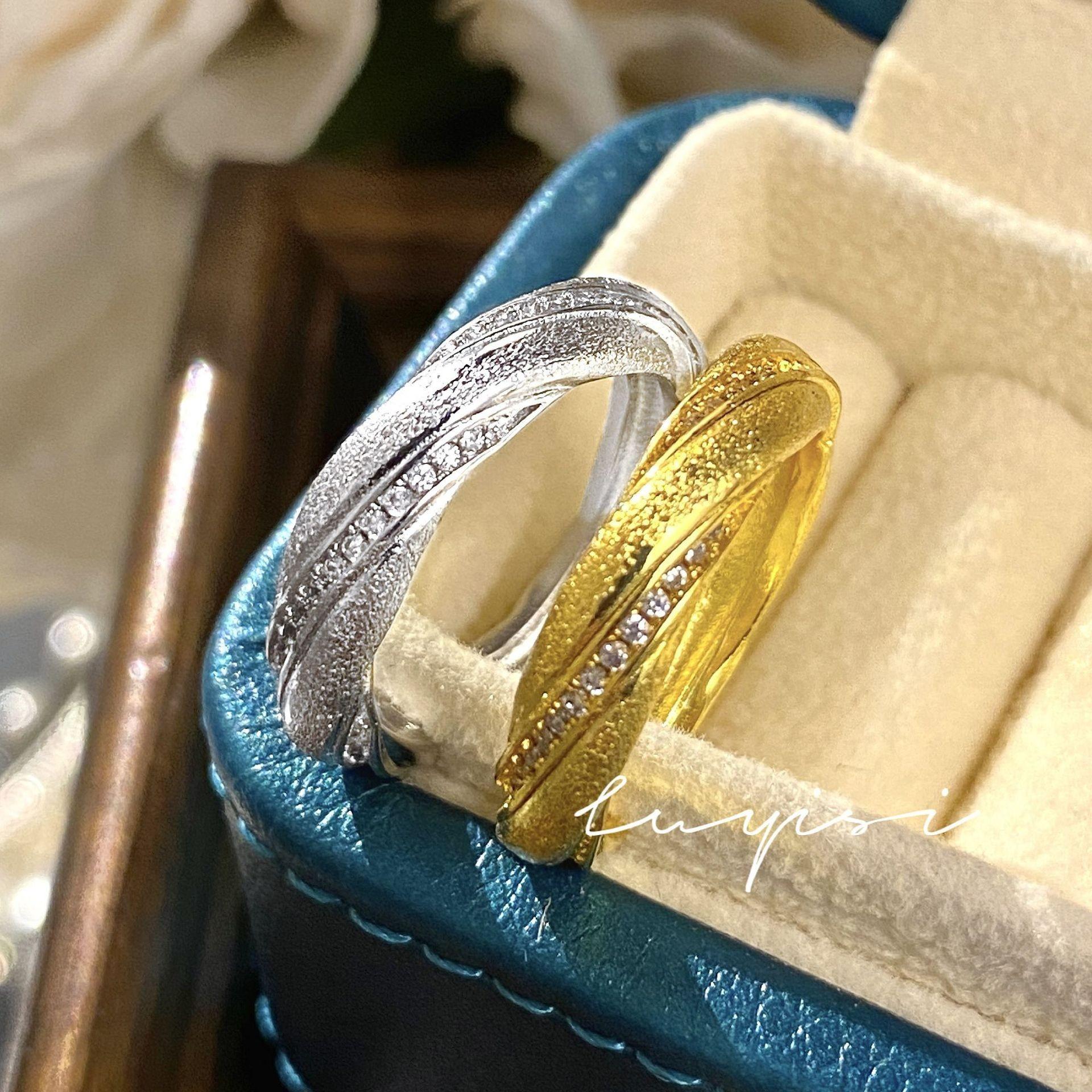 White gold twist brushed ring, Yellow gold twist brushed ring