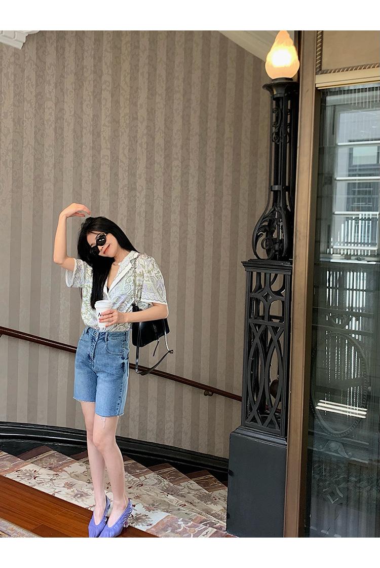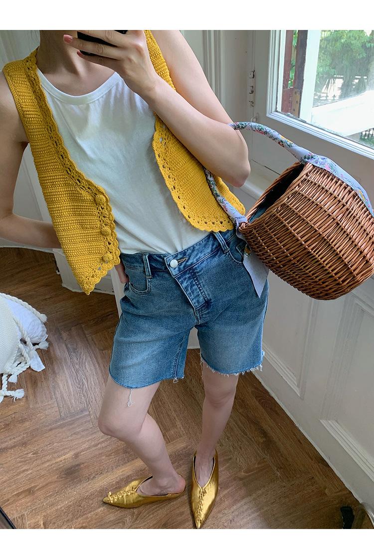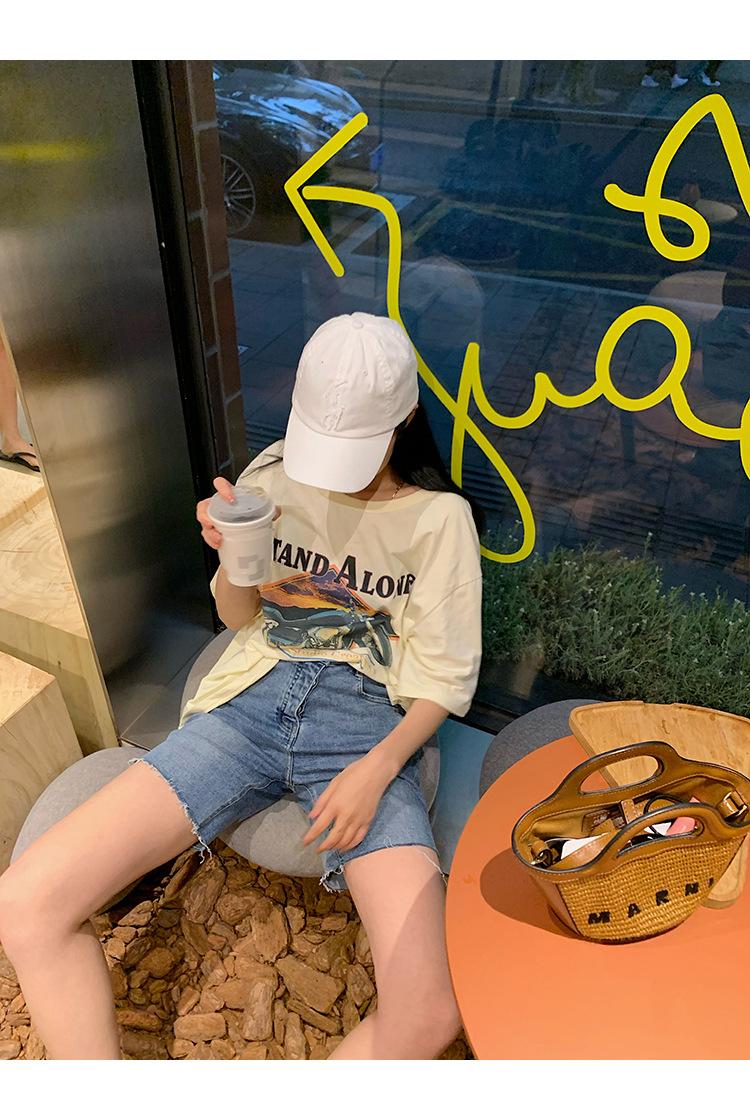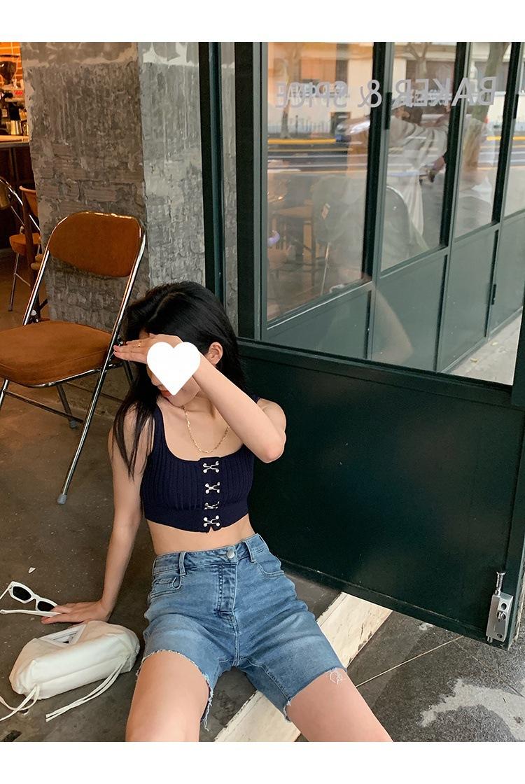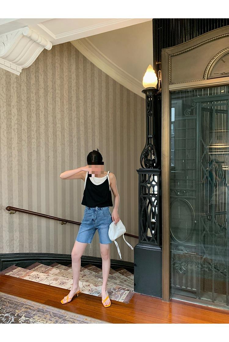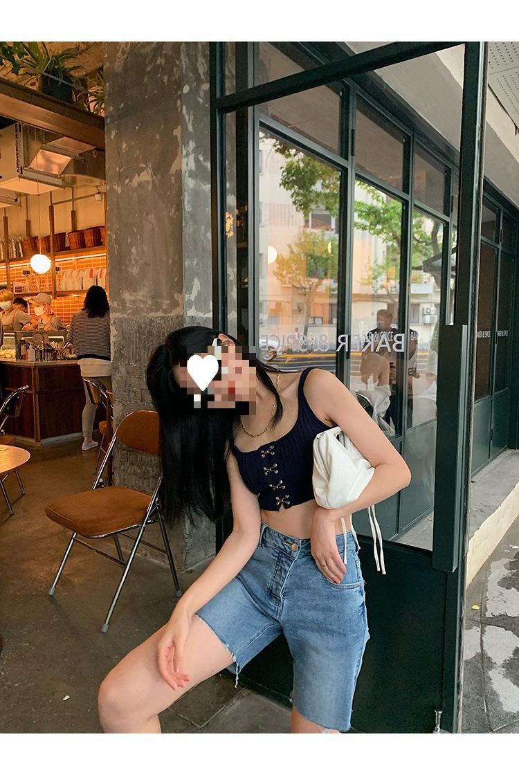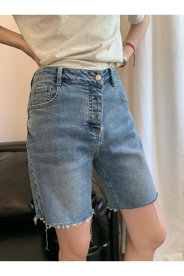 [en stock] VC Jeans Pantalones cortos de verano para mujer de cintura alta Pantalones ajustados de largo medio Ropa exterior Pantalones ajustados para montar