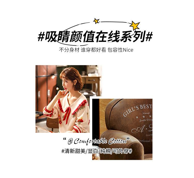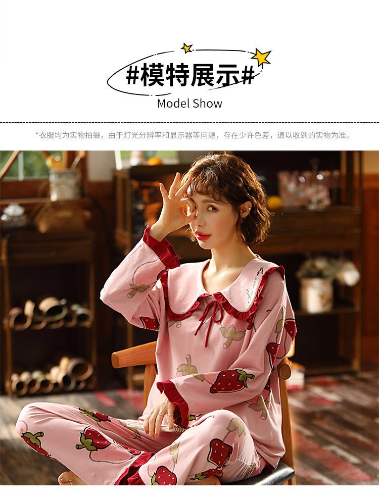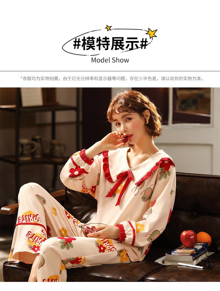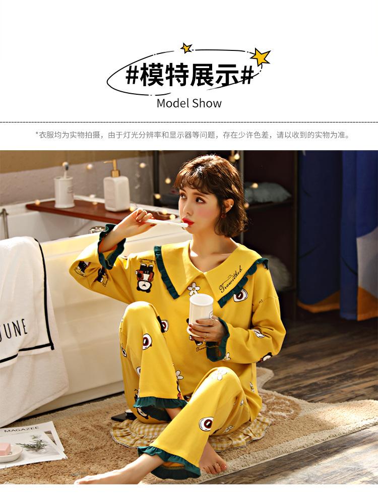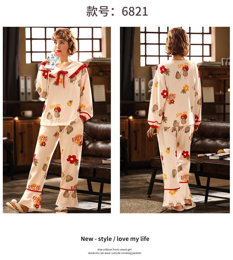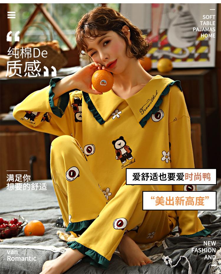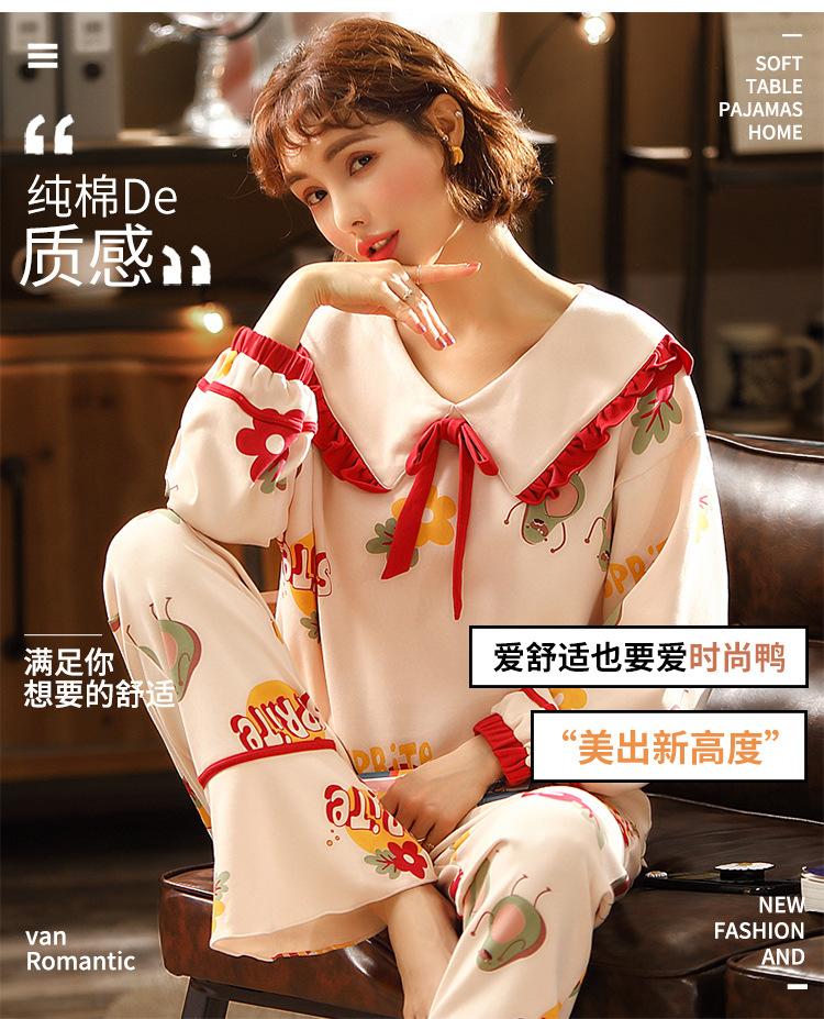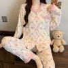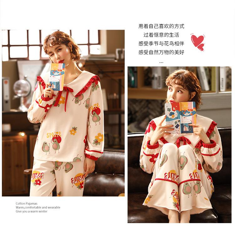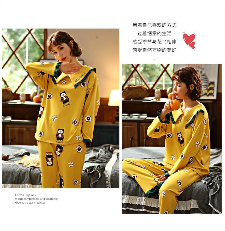 Pijamas de mujer estilo coreano otoño e invierno de algodón puro dulce lindo muñeca de manga larga cuello princesa conjunto de ropa de hogar de algodón usable