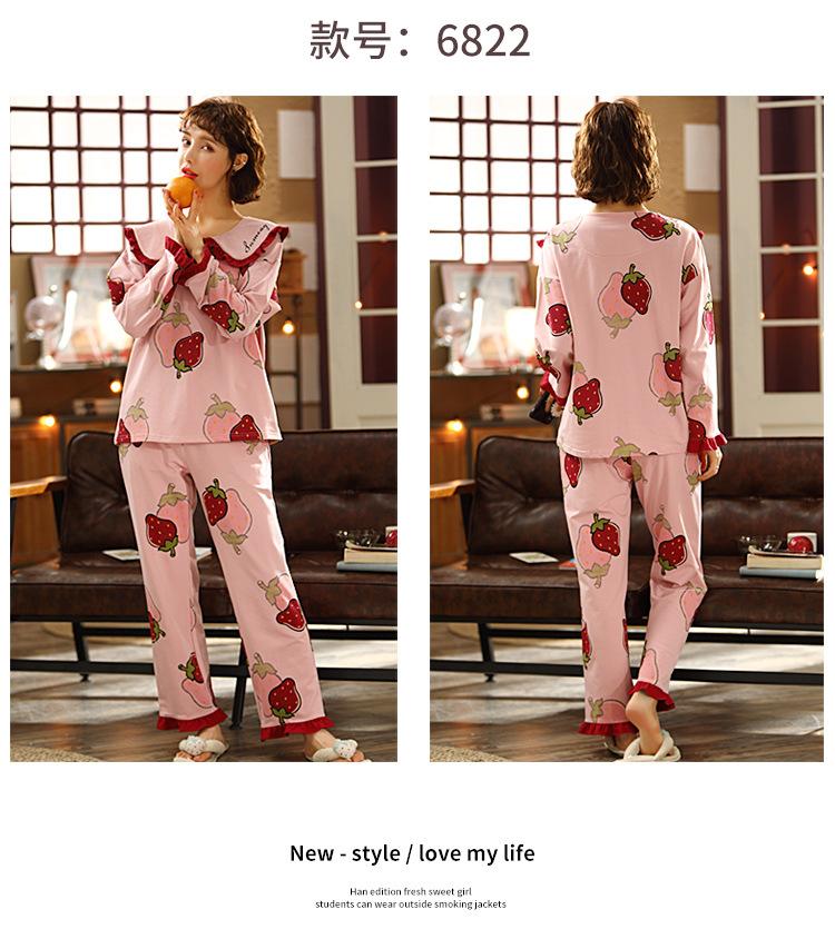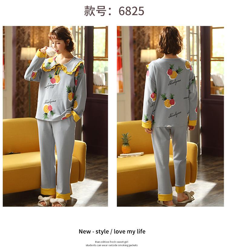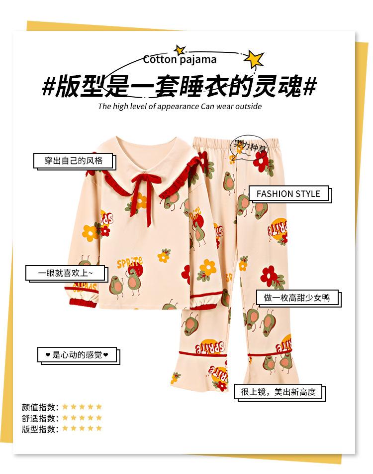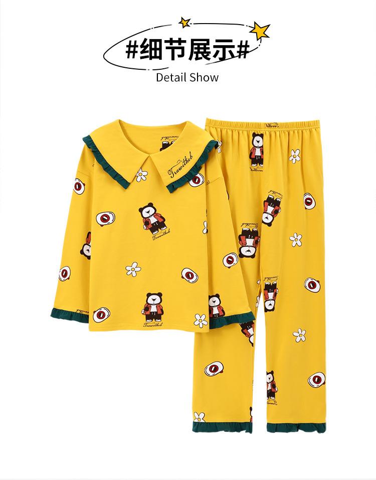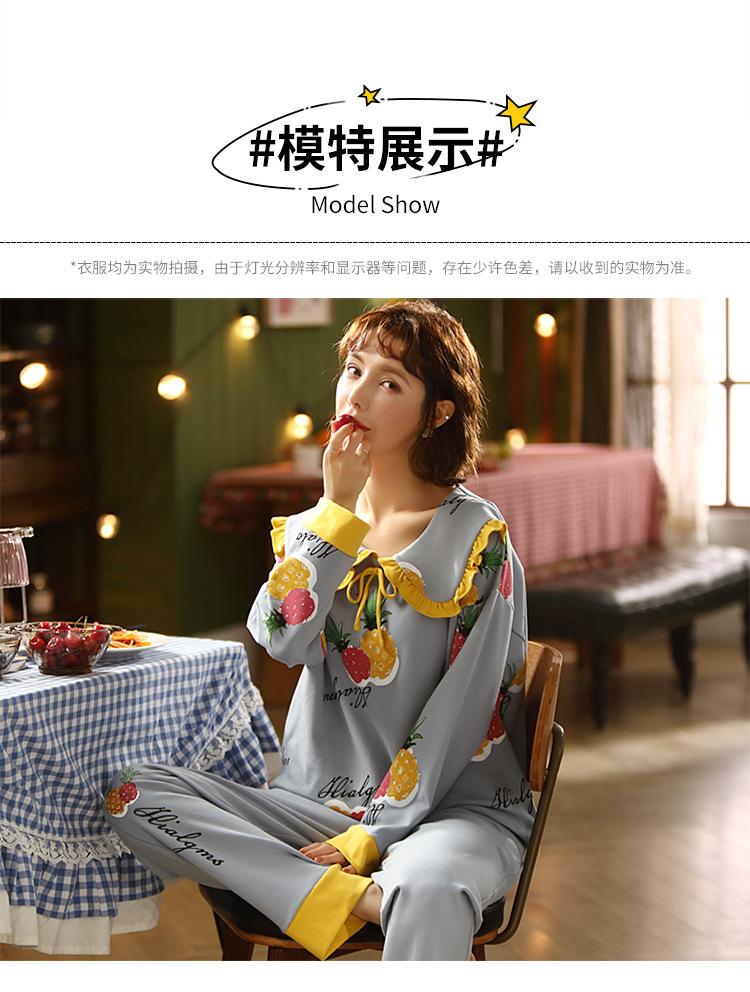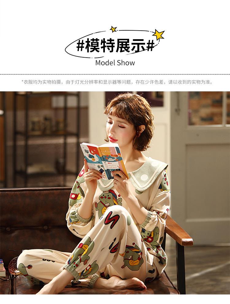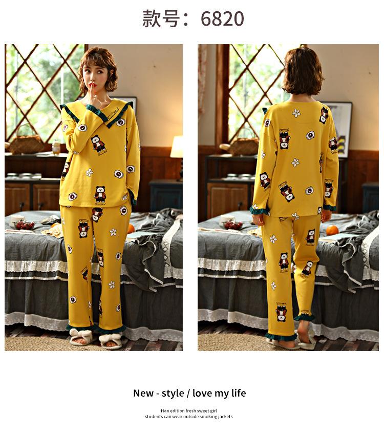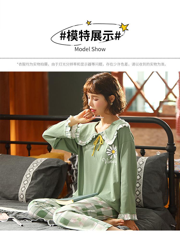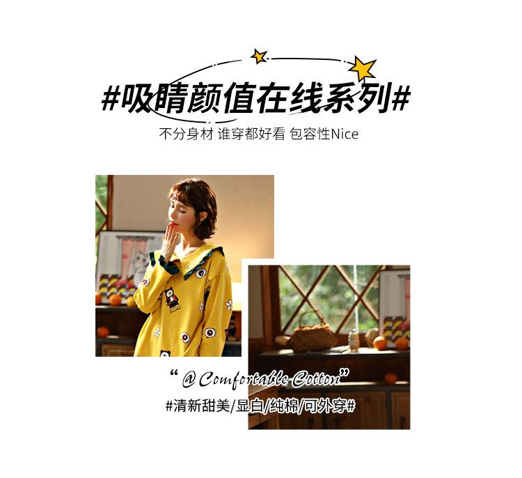 Pijamas de mujer estilo coreano otoño e invierno de algodón puro dulce lindo muñeca de manga larga cuello princesa conjunto de ropa de hogar de algodón usable