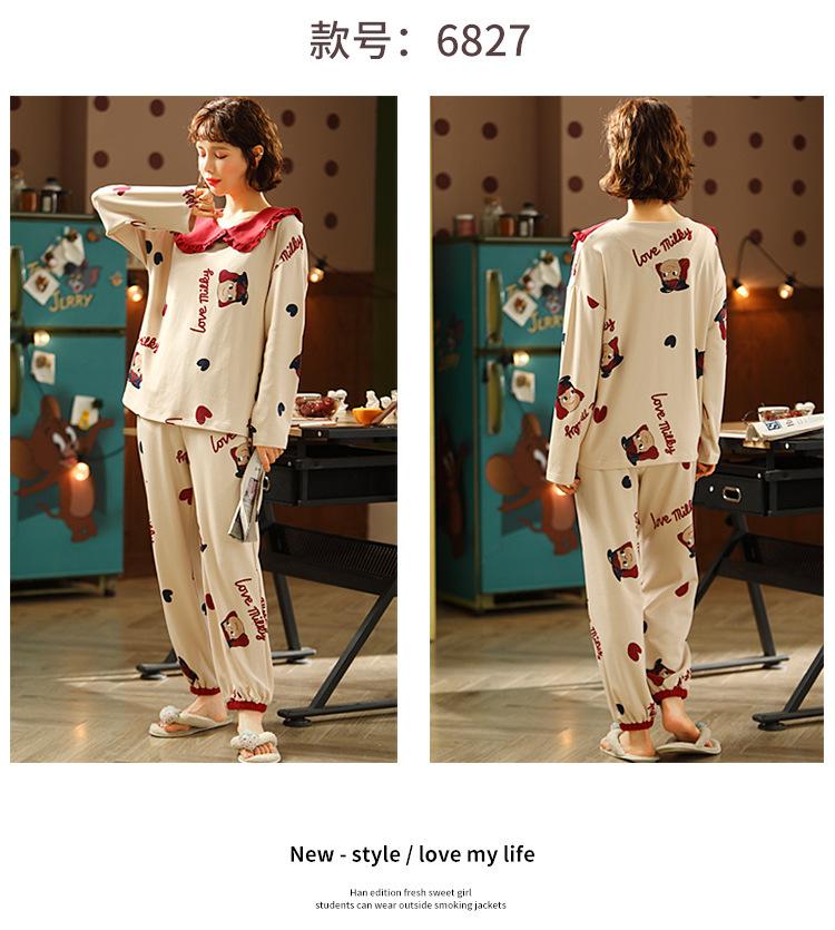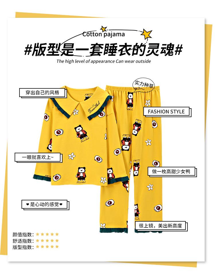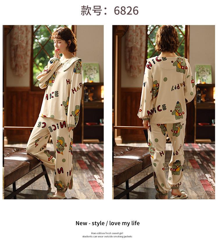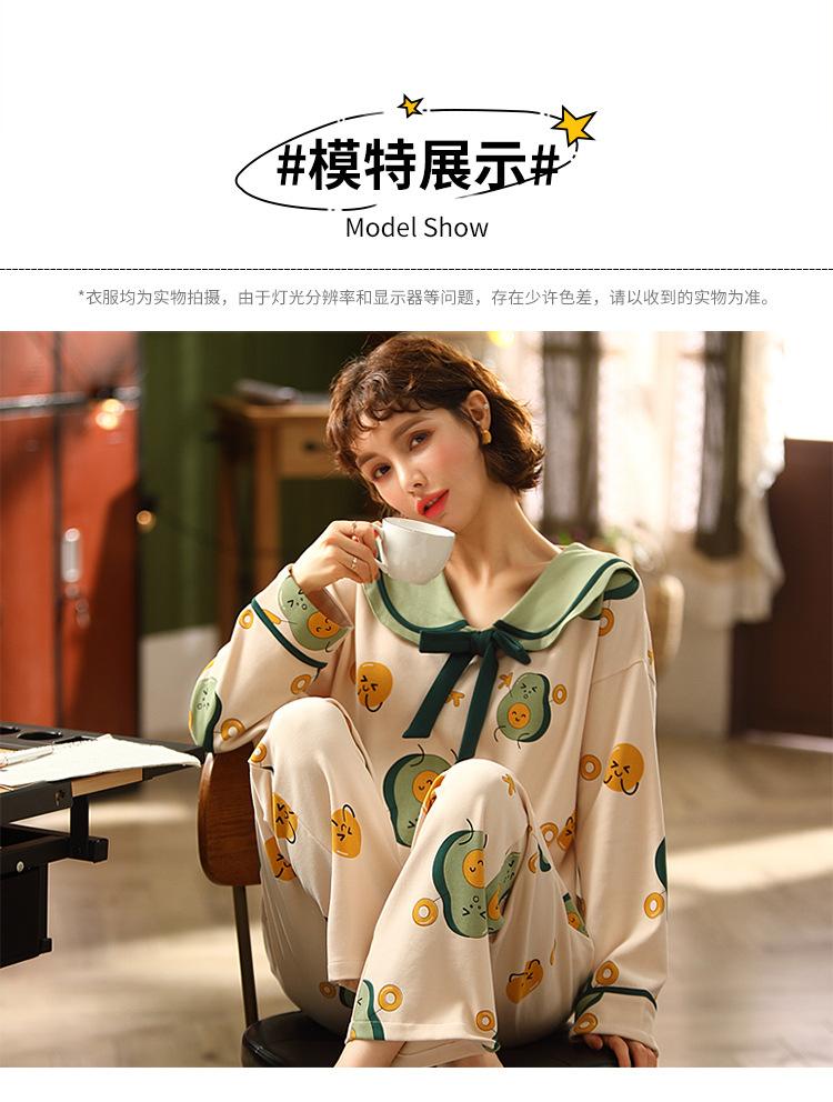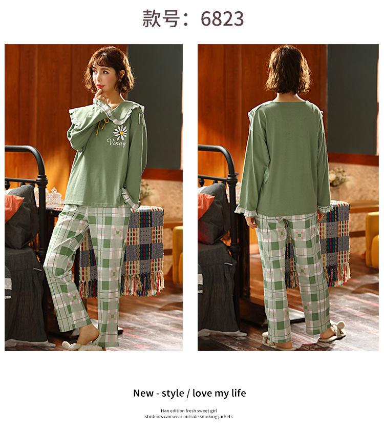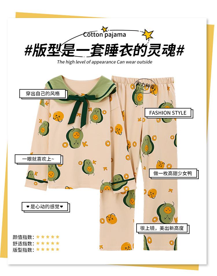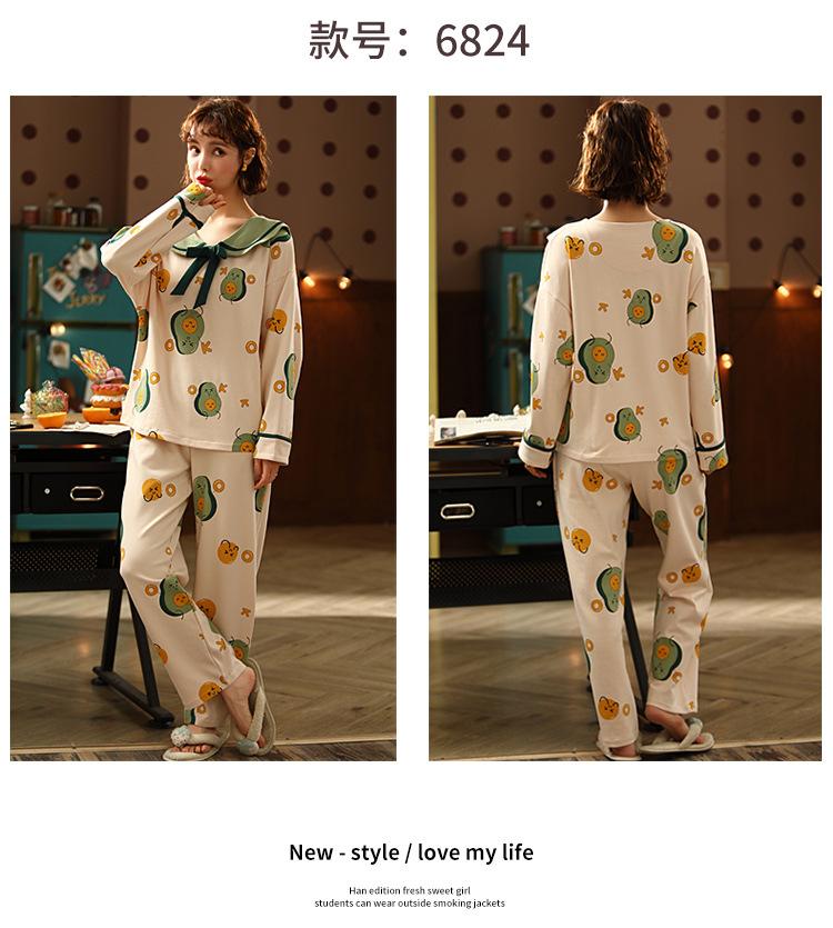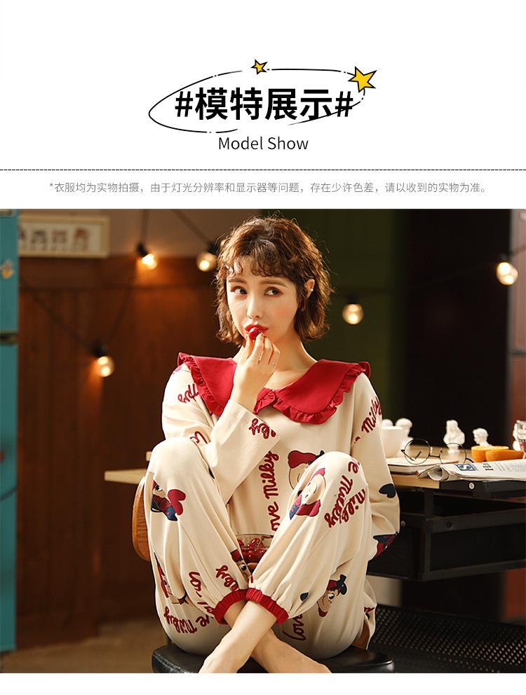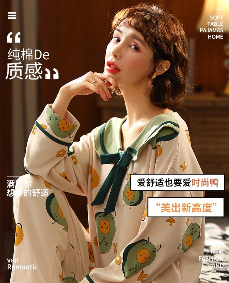Pijamas de mujer estilo coreano otoño e invierno de algodón puro dulce lindo muñeca de manga larga cuello princesa conjunto de ropa de hogar de algodón usable