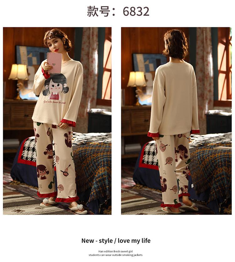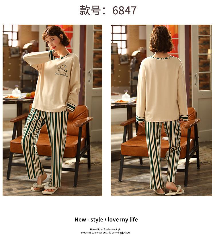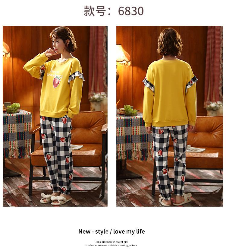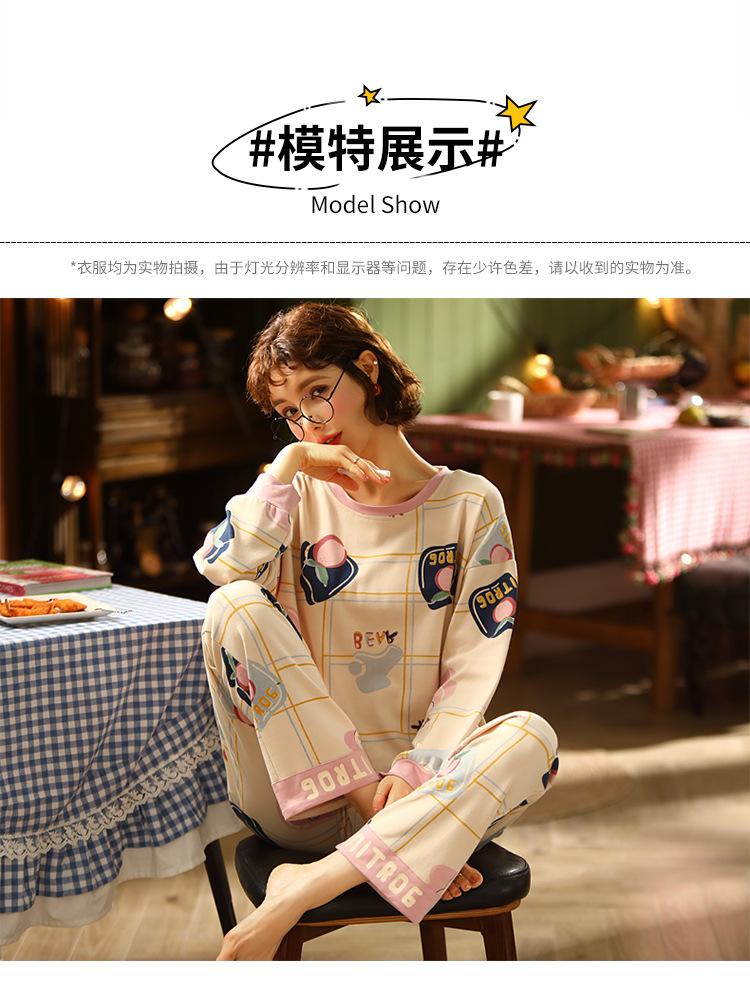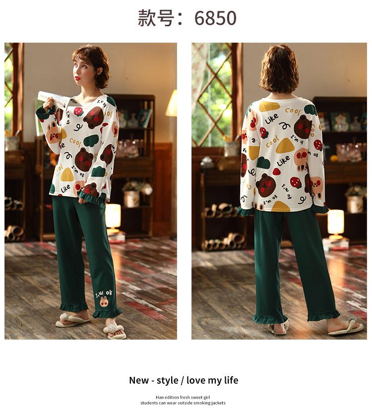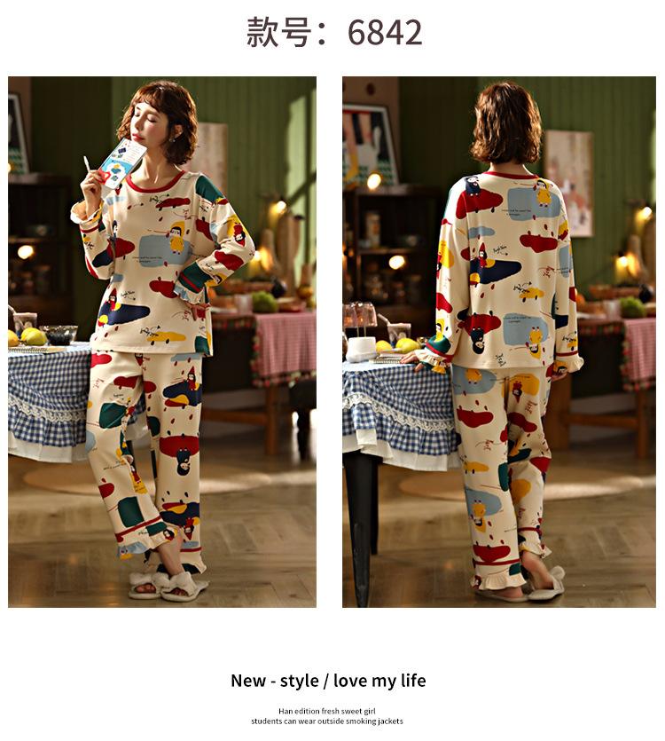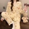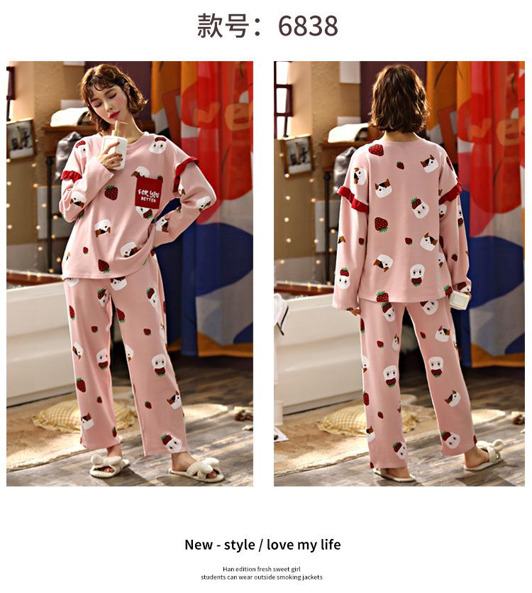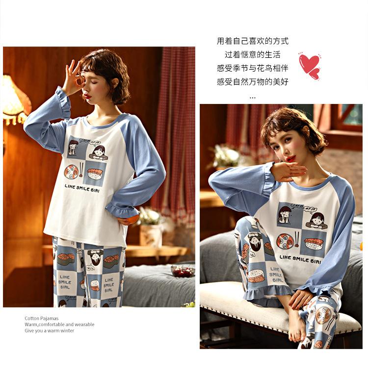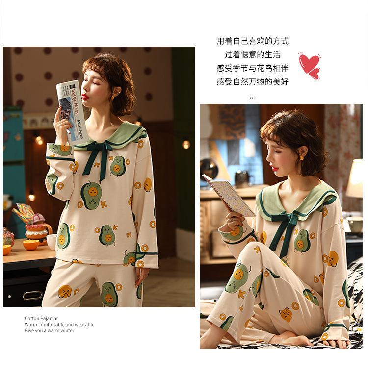 Pijamas de mujer de otoño e invierno, estilo coreano, de algodón puro, dulces, lindos, de manga larga, con cuello de princesa, para usar en casa, conjunto de ropa de algodón
