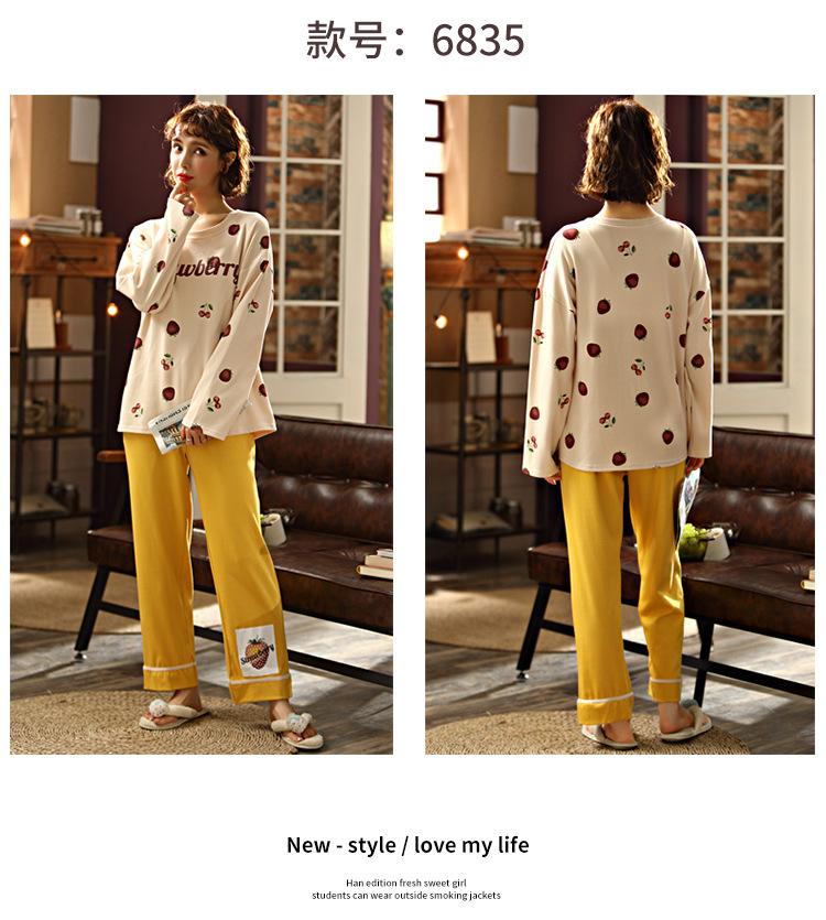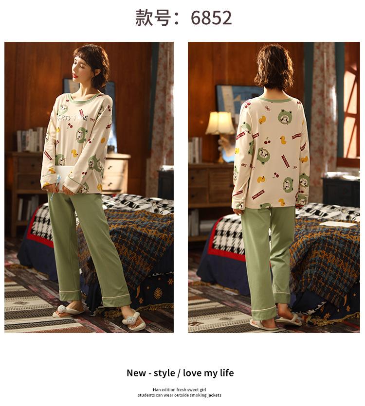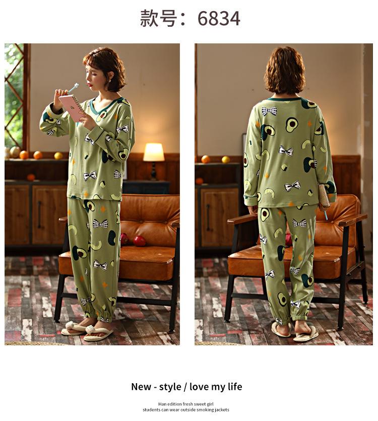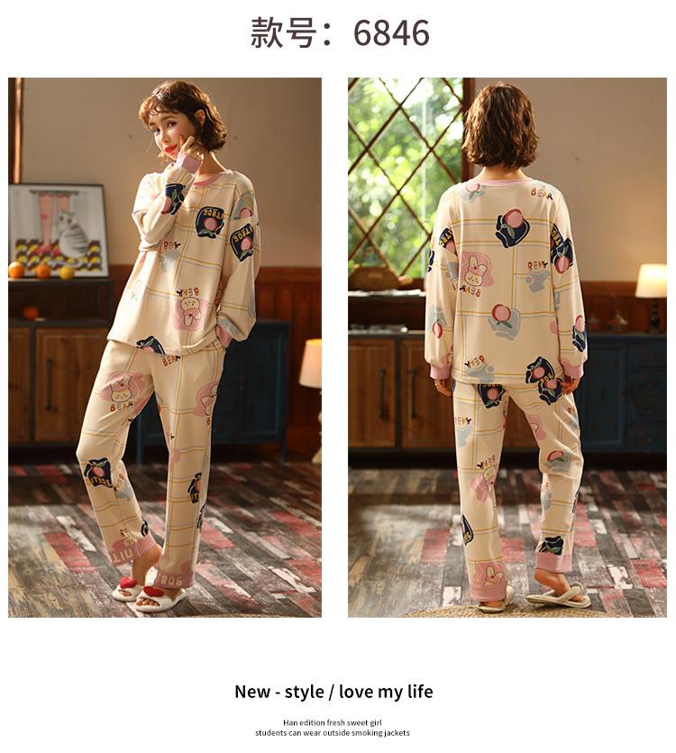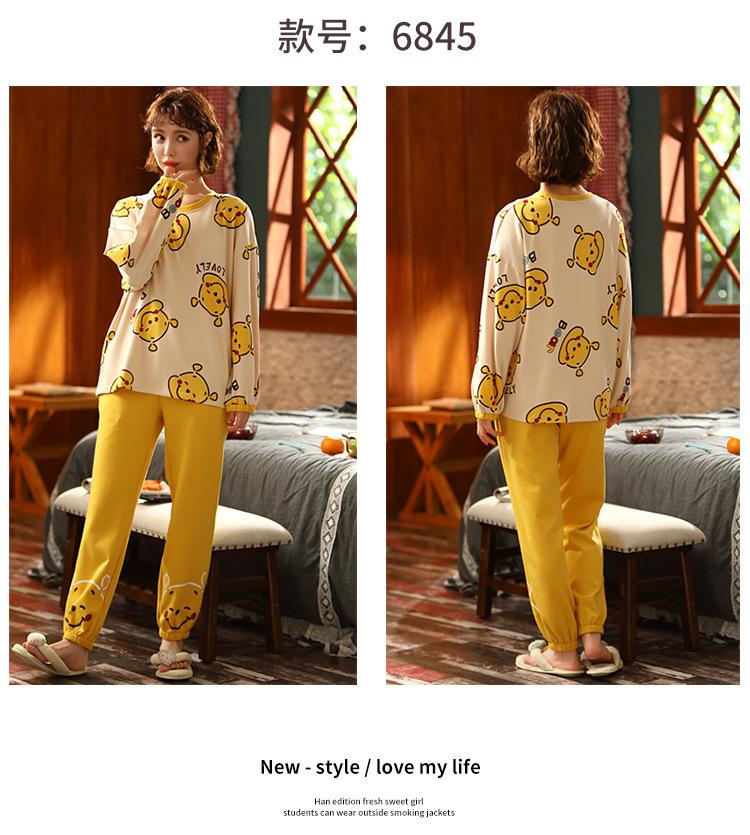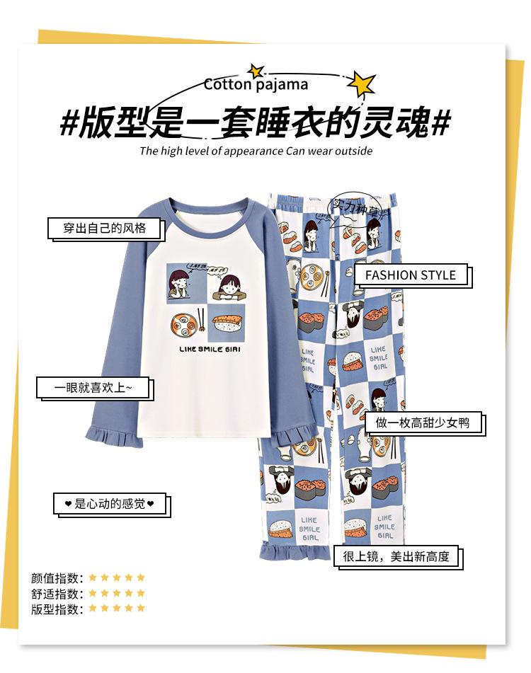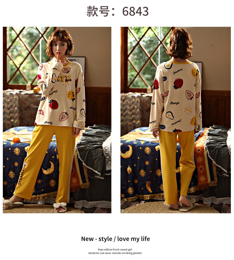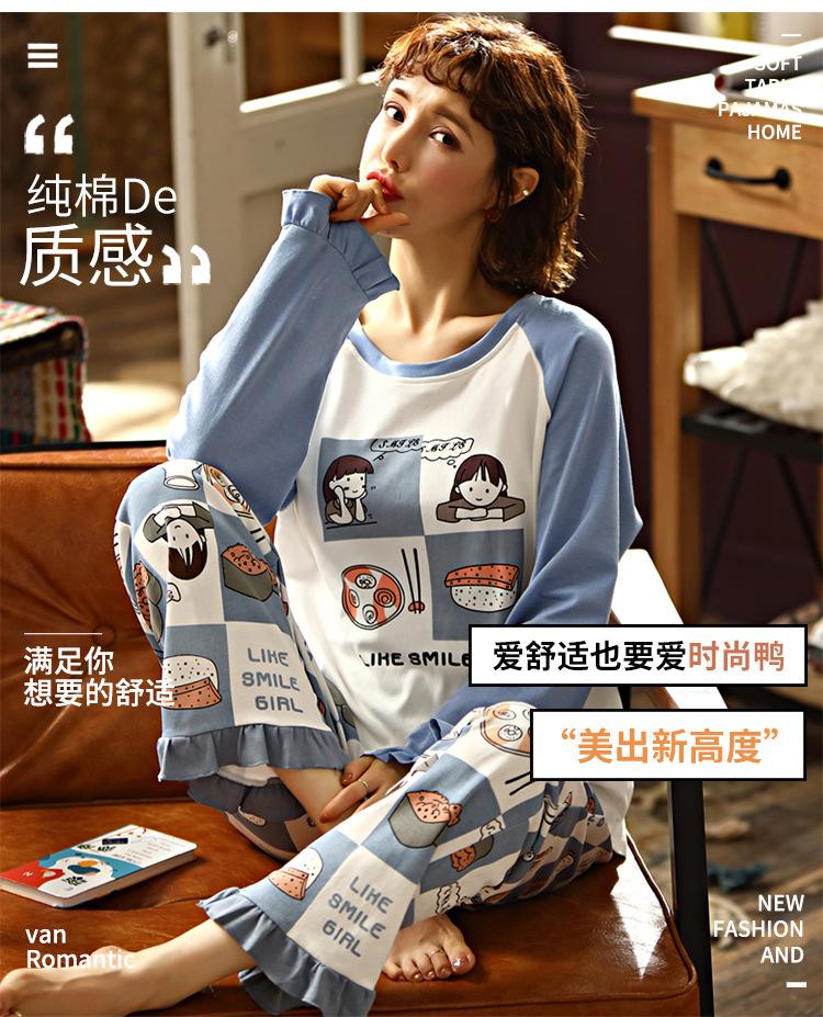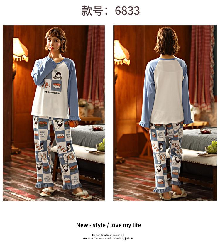 Pijamas de mujer de otoño e invierno, estilo coreano, de algodón puro, dulces, lindos, de manga larga, con cuello de princesa, para usar en casa, conjunto de ropa de algodón