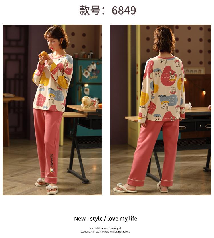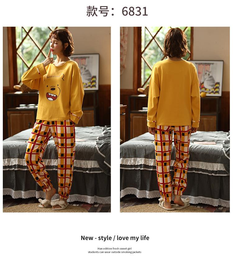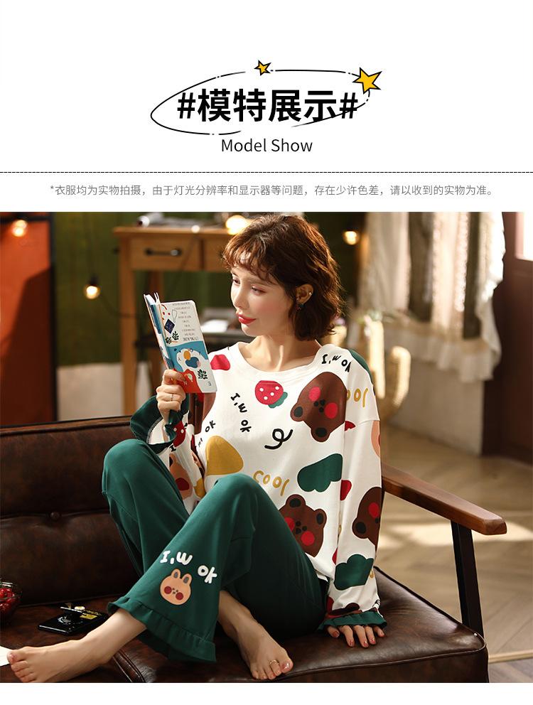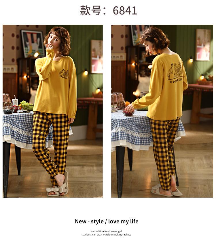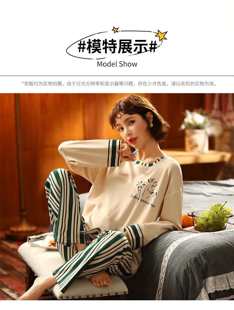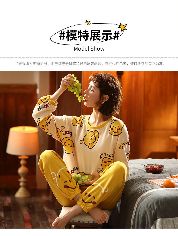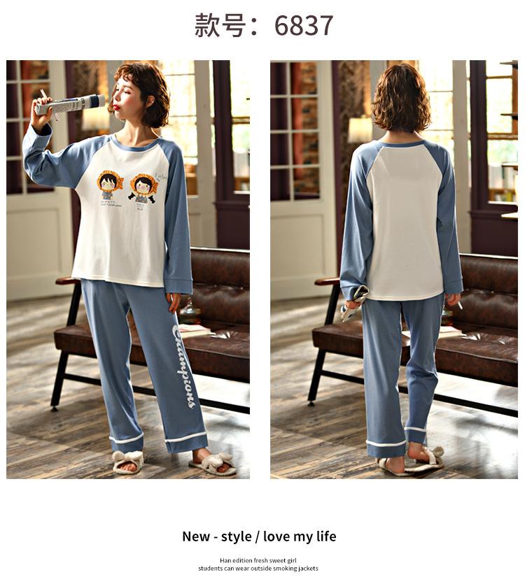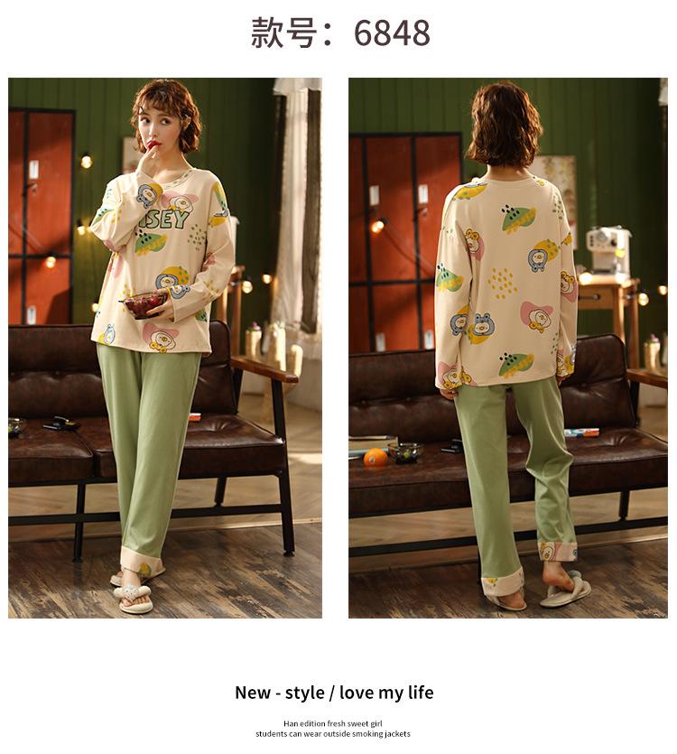 Pijamas de mujer de otoño e invierno, estilo coreano, de algodón puro, dulces, lindos, de manga larga, con cuello de princesa, para usar en casa, conjunto de ropa de algodón