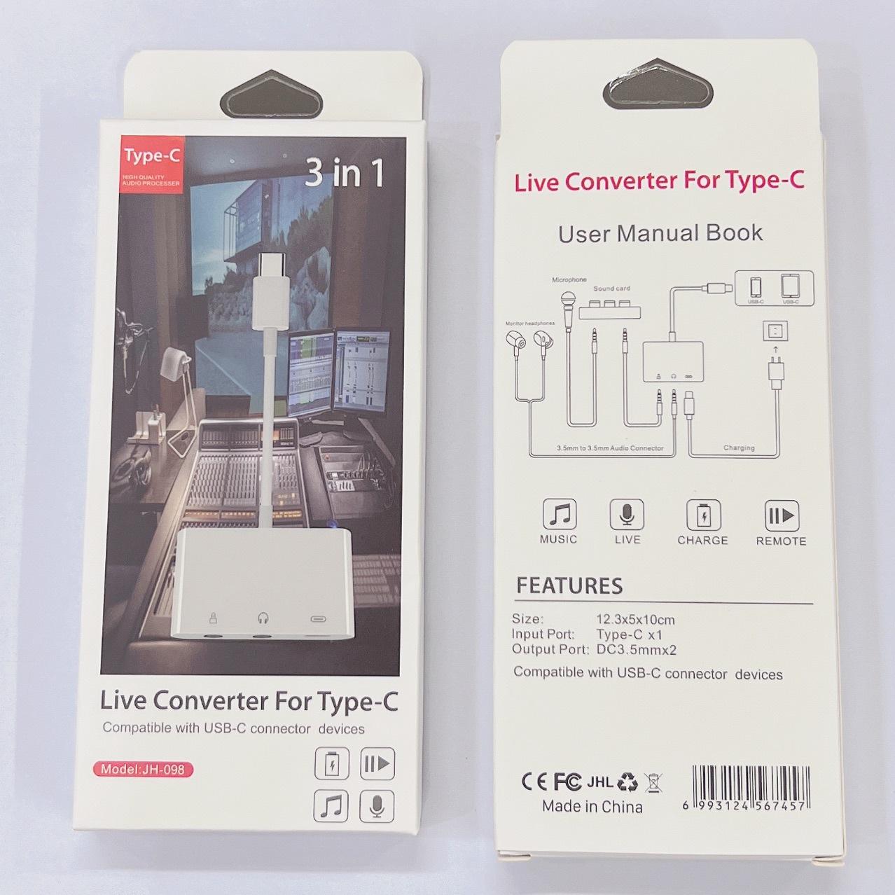 Adecuado para Apple Samsung Live Sound Card Cable adaptador de transmisión en vivo tipo C Auriculares externos Micrófono Carga