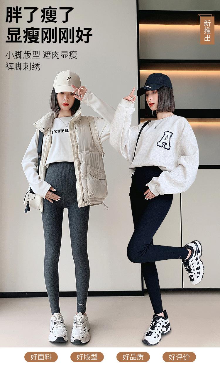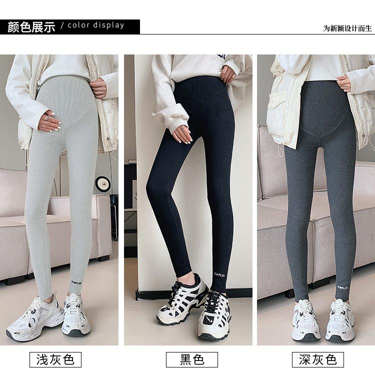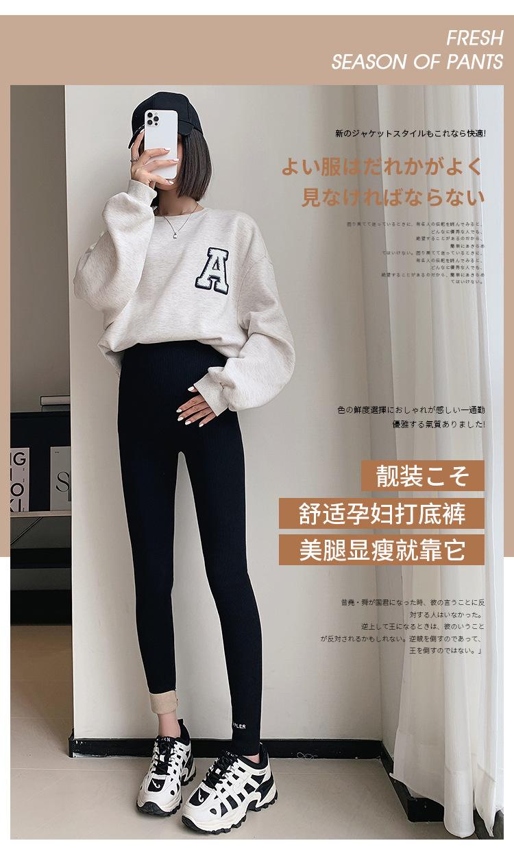 Pantalones de Maternidad Otoño e Invierno Nuevos Leggings Exteriores Pantalones Cálidos Gruesos de Terciopelo de Cordero Pantalones de Algodón de Maternidad Versátiles