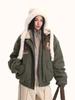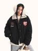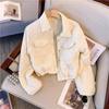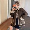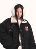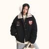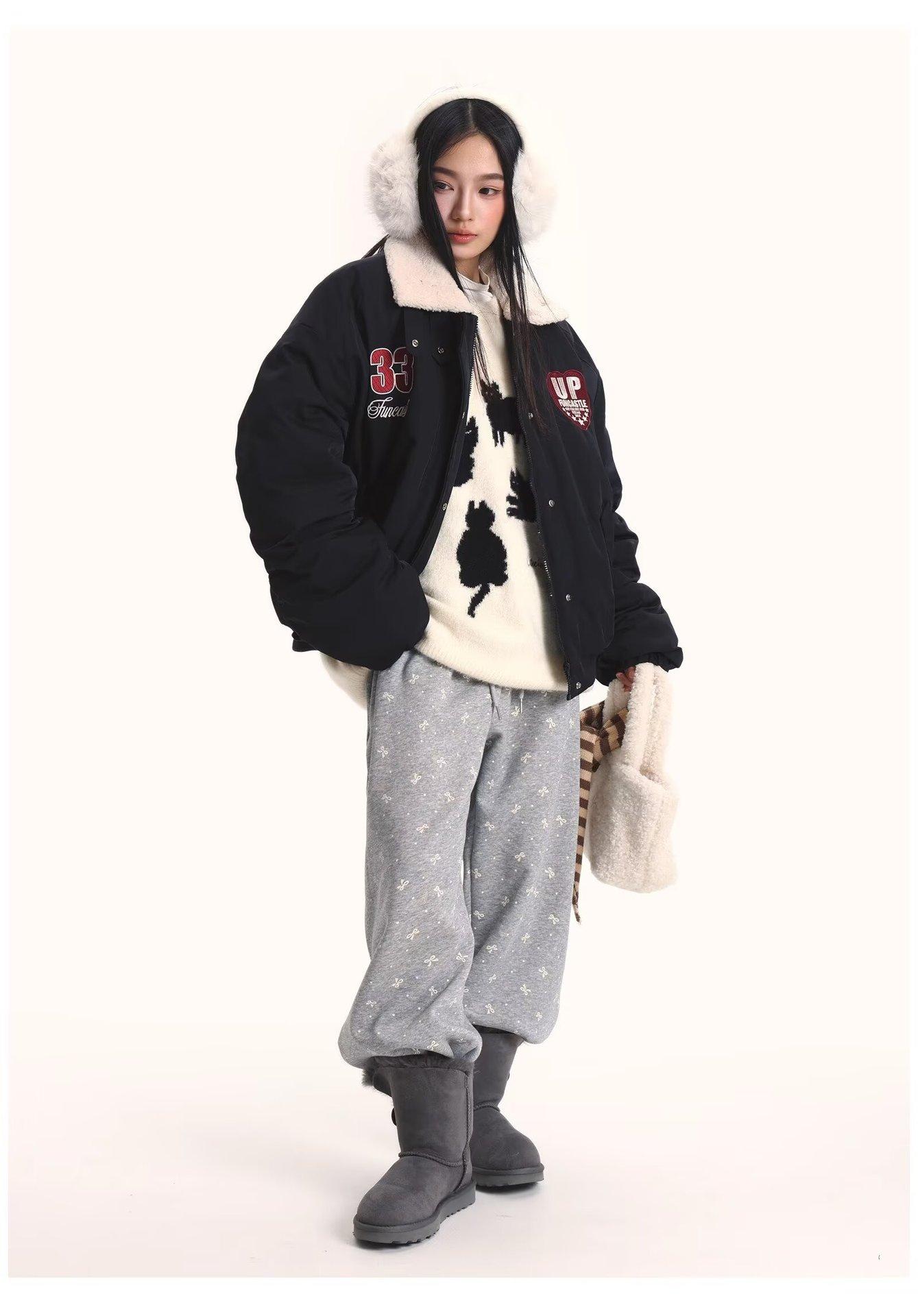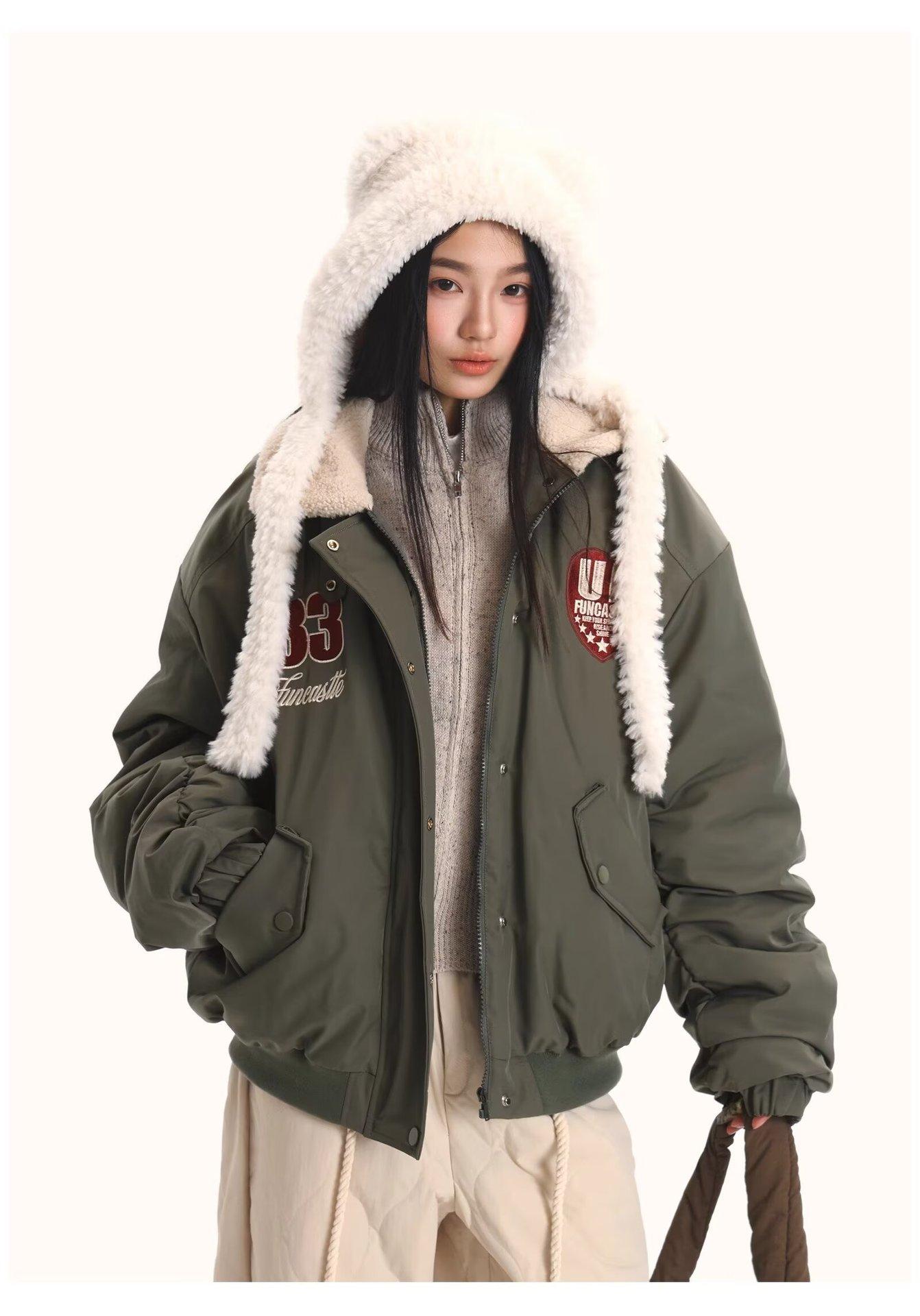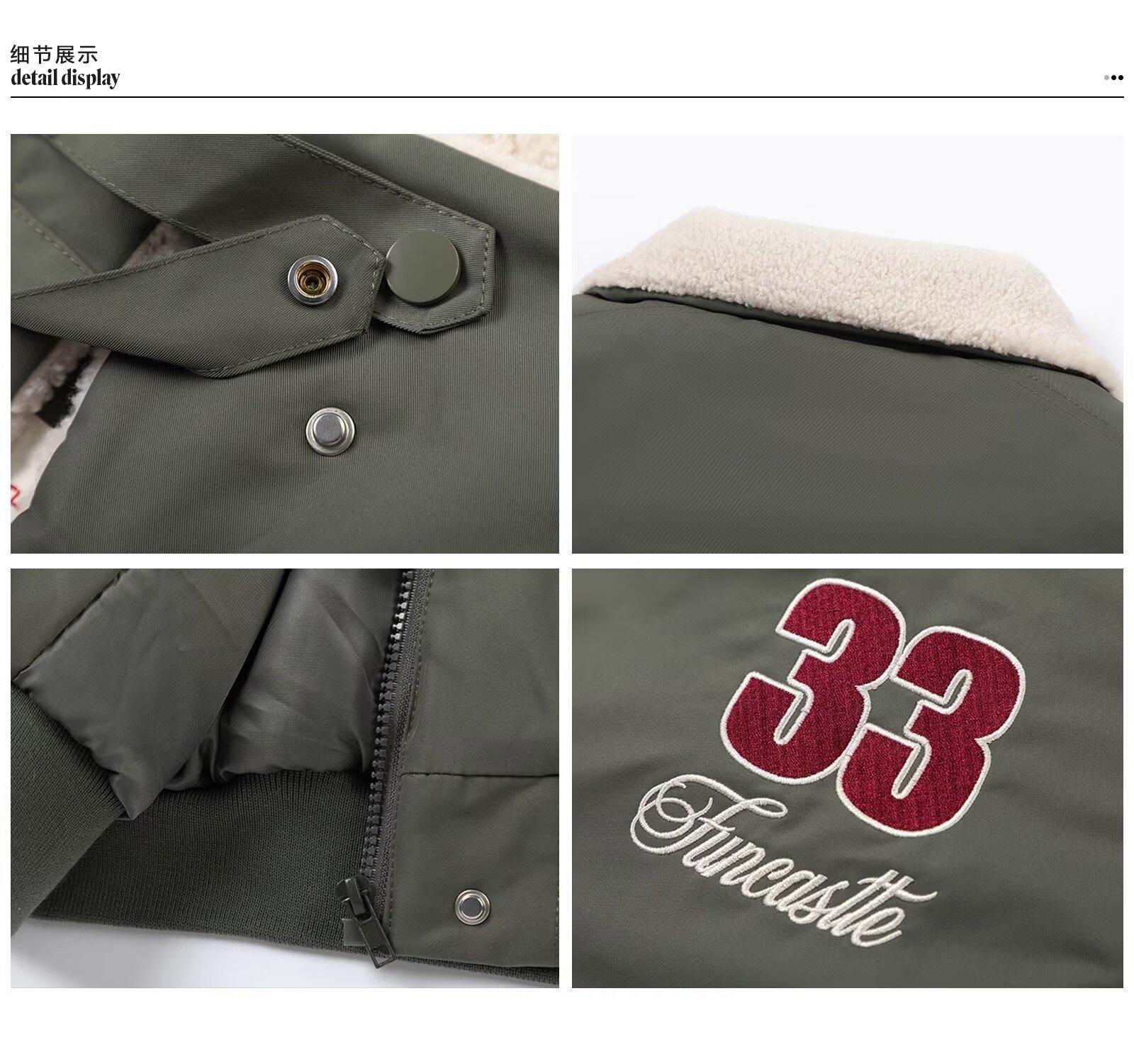 Traje de béisbol vintage de invierno 2024 para mujer, acolchado de algodón, con solapa de lana de cordero, holgado, combinable con bordado de letras