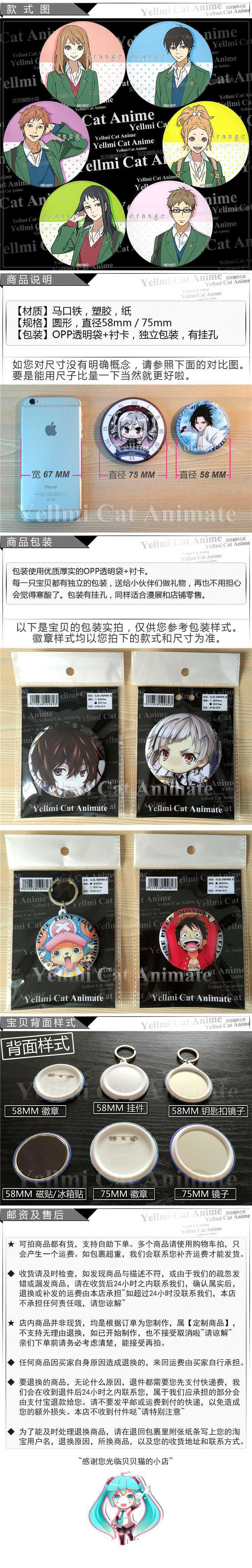 58mm pendant, 75mm badge, 58mm tile, 75mm mirror, 58mm Badge