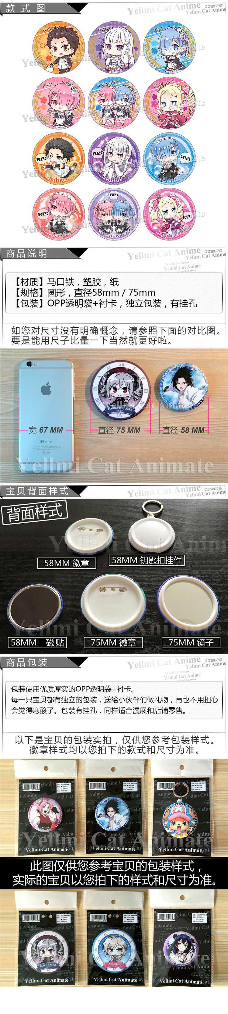 58mm pendant, 75mm portable mirror, 75mm badge, 58mm magnetic sticker, 58mm badge
