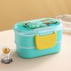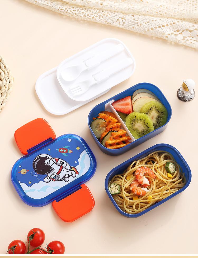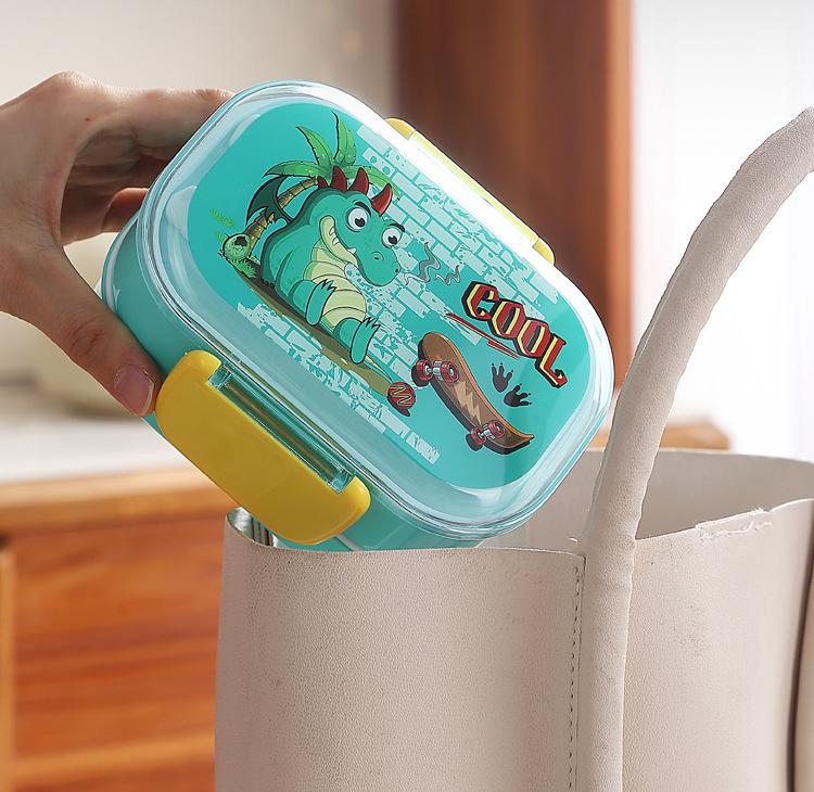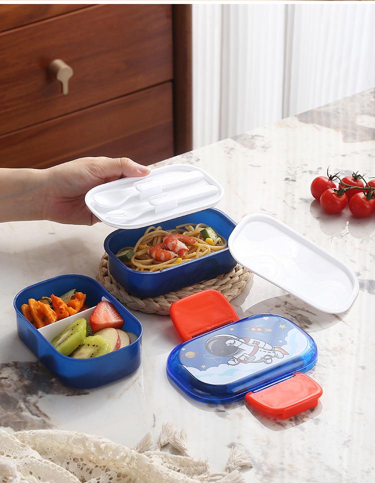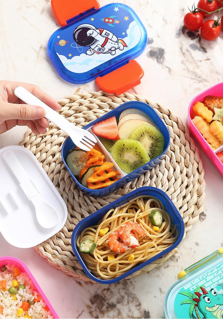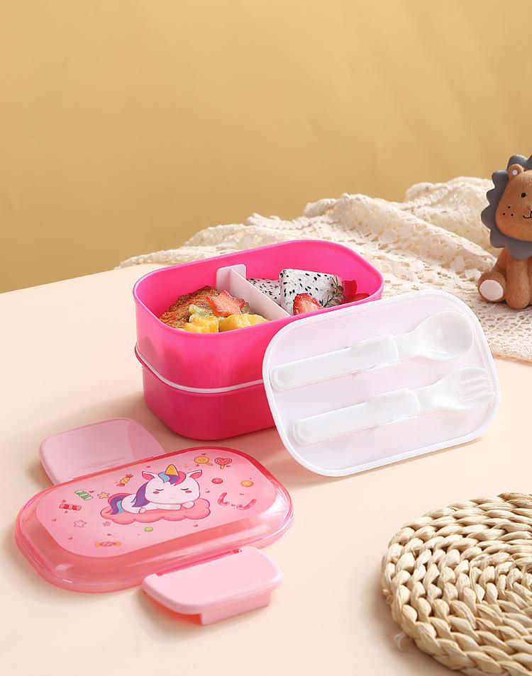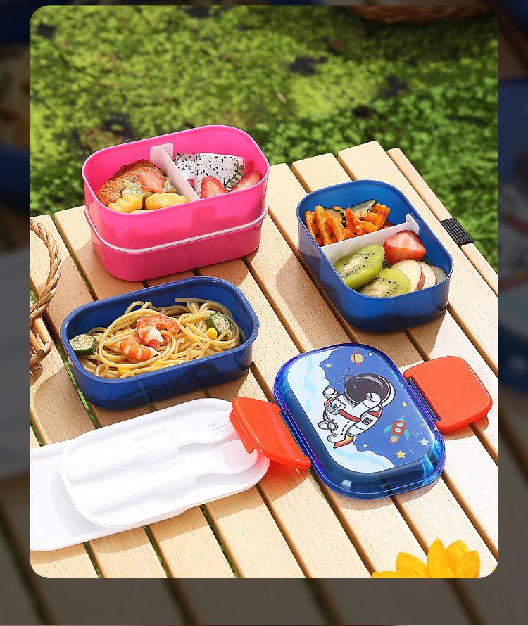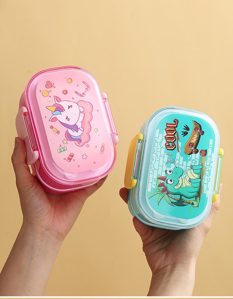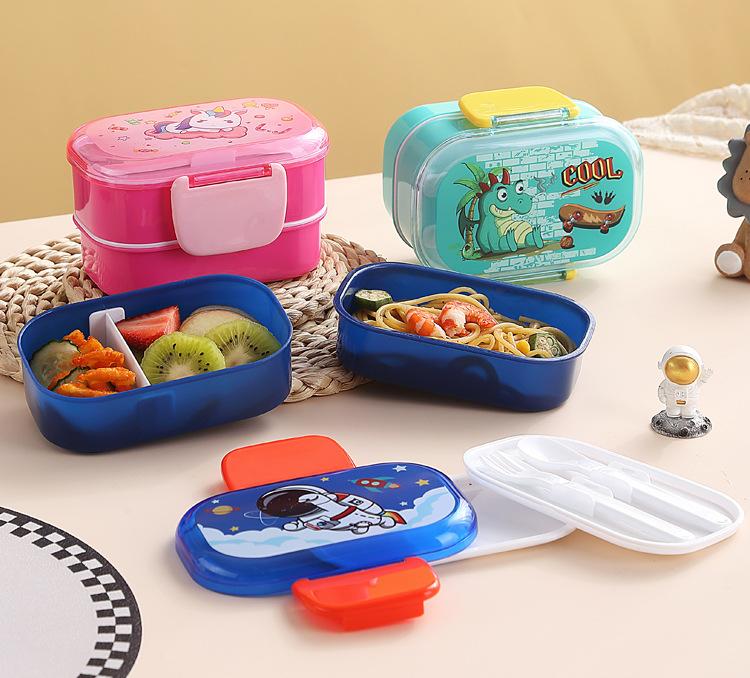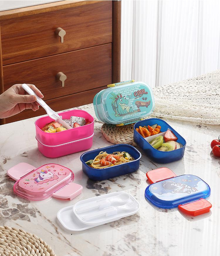 Lonchera infantil de doble capa con dibujos animados, lonchera portátil con rejilla para mantener la frescura, lonchera de plástico sellada para estudiantes, lonchera para calentar en microondas