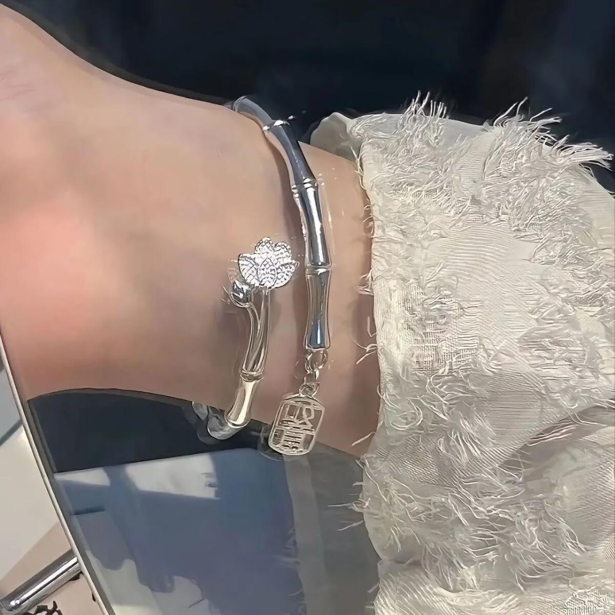 Pulsera de Loto de Bambú Pacífica para Mujer, Lujo Ligero, Sensación de Alta Gama, Ajustable, Regalo para Mejor Amiga o Novia, Cumpleaños, Diseño Único, Estilo Nudo de Bambú