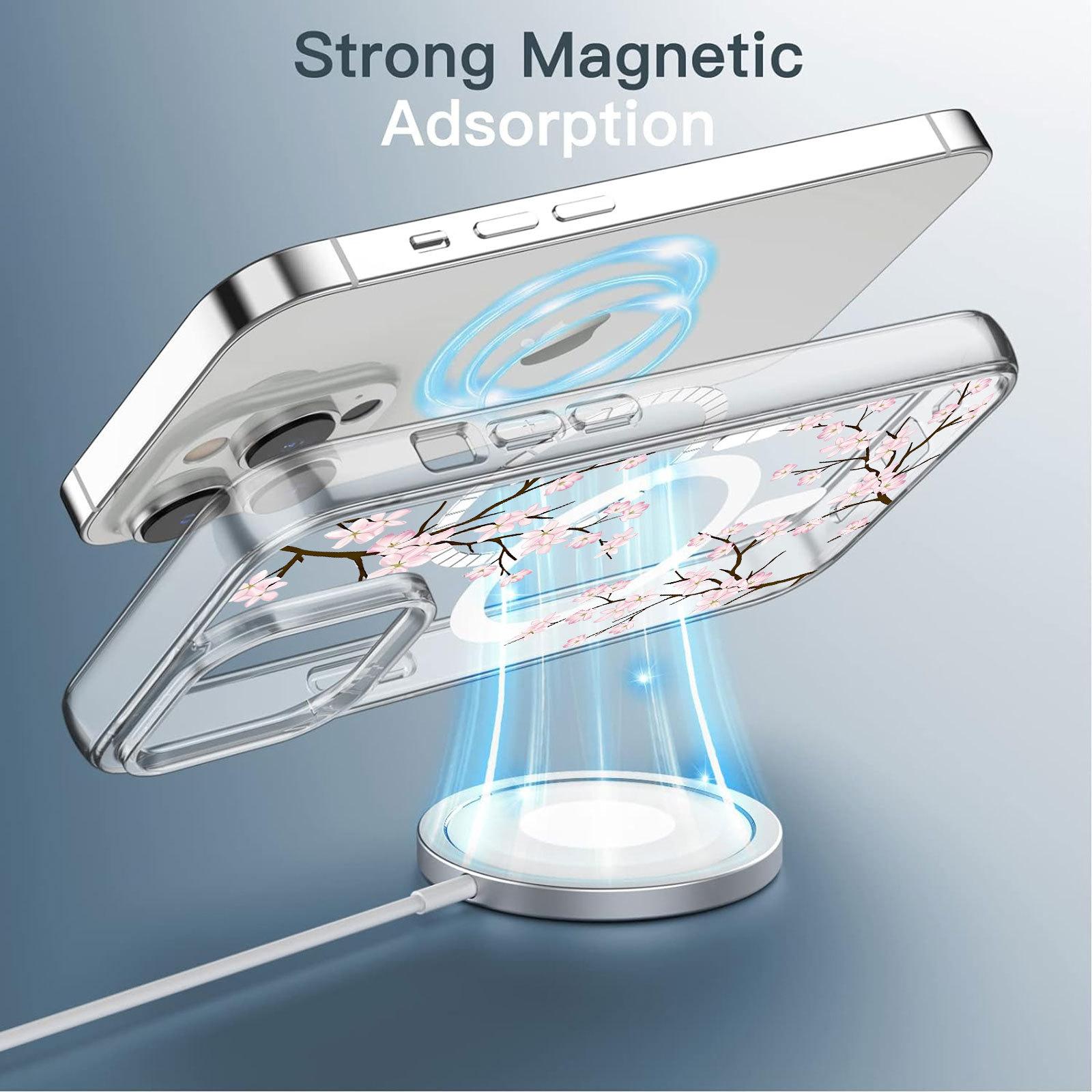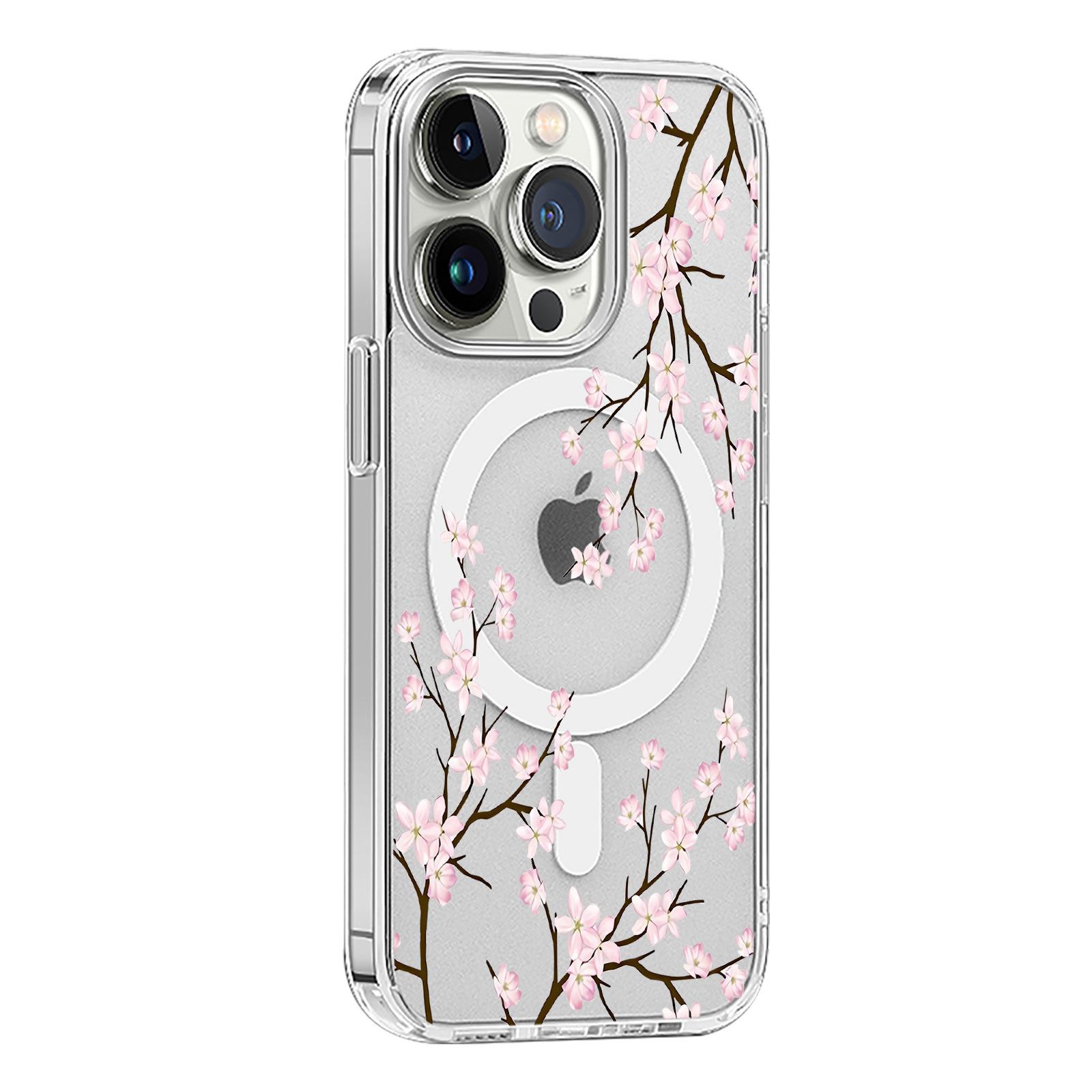Funda magnética Magsafe para teléfono móvil Apple 16 para iphone15 flores y flor de durazno 14promax funda protectora 13p