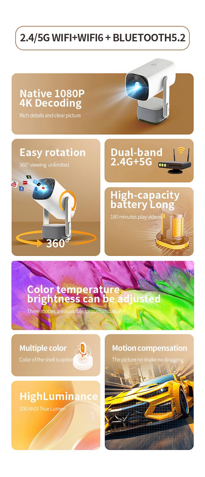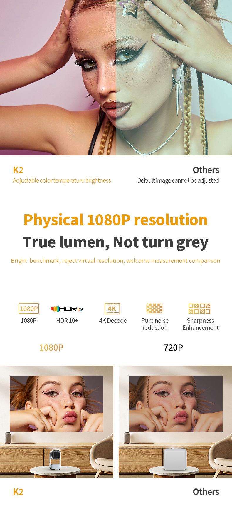 K2 Popular Transfronterizo Batería Incorporada Nuevo 4K Wifi Hd Android Smart Mini Proyector Portátil para Exteriores