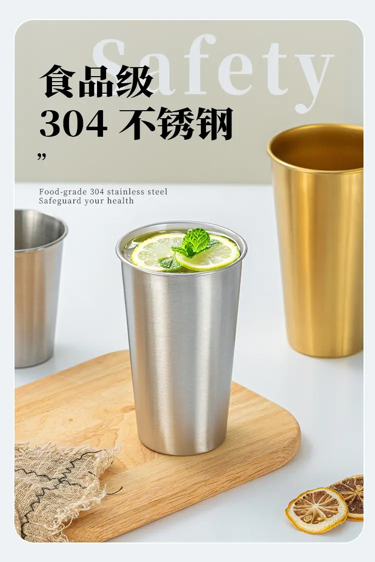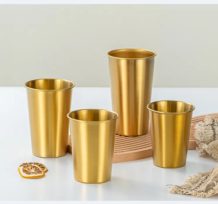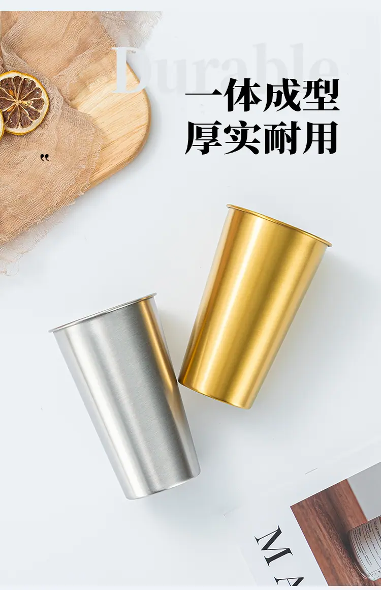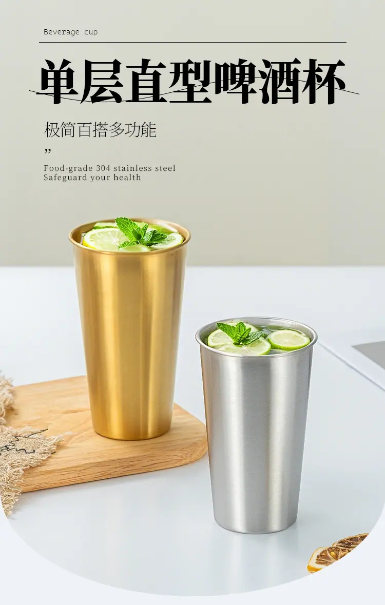 Taza de Cerveza de Acero Inoxidable 304, Vaso Anti-Caídas para Jugo y Bebidas Frías, Vaso de Agua de una Sola Capa para Restaurante y Camping al Aire Libre, Taza de Café, Color Dorado