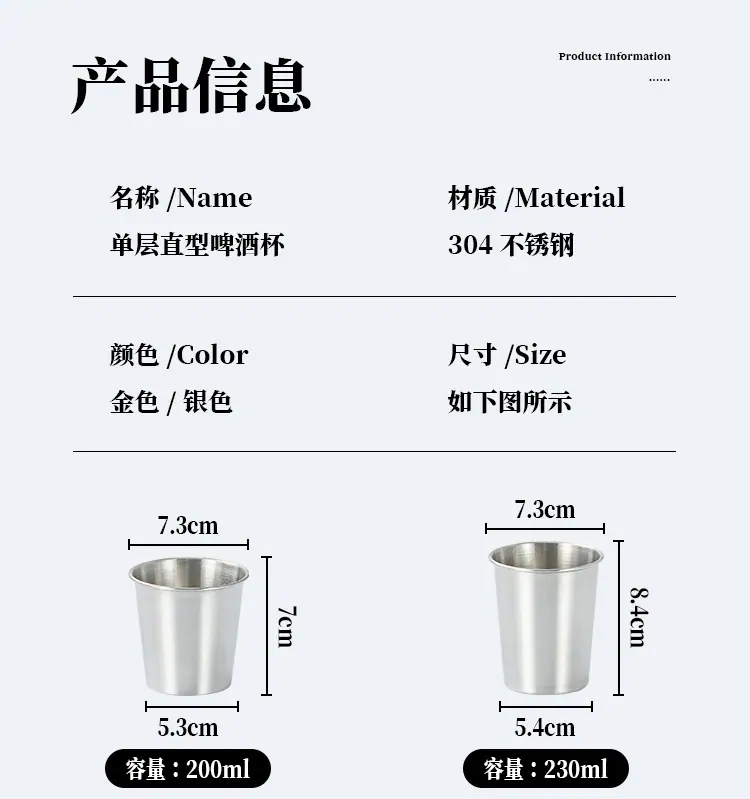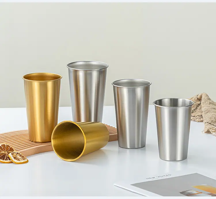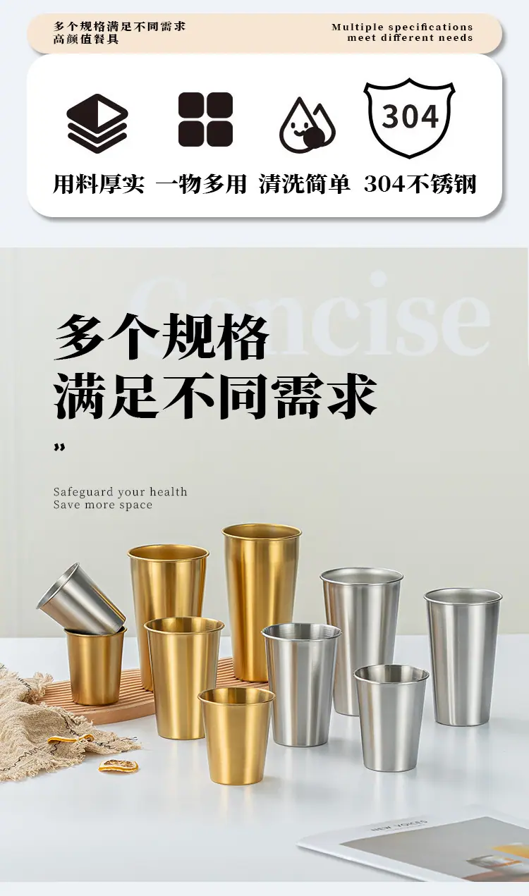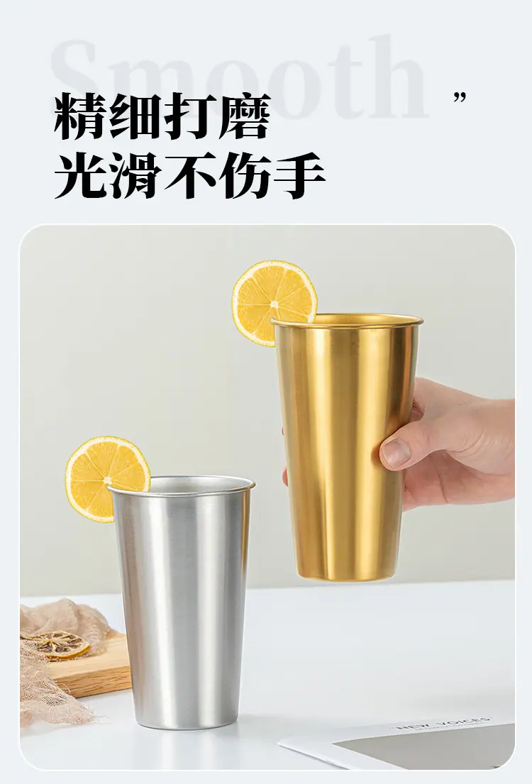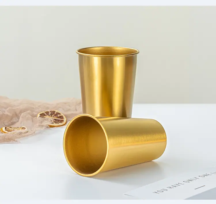 Taza de Cerveza de Acero Inoxidable 304, Vaso Anti-Caídas para Jugo y Bebidas Frías, Vaso de Agua de una Sola Capa para Restaurante y Camping al Aire Libre, Taza de Café, Color Dorado