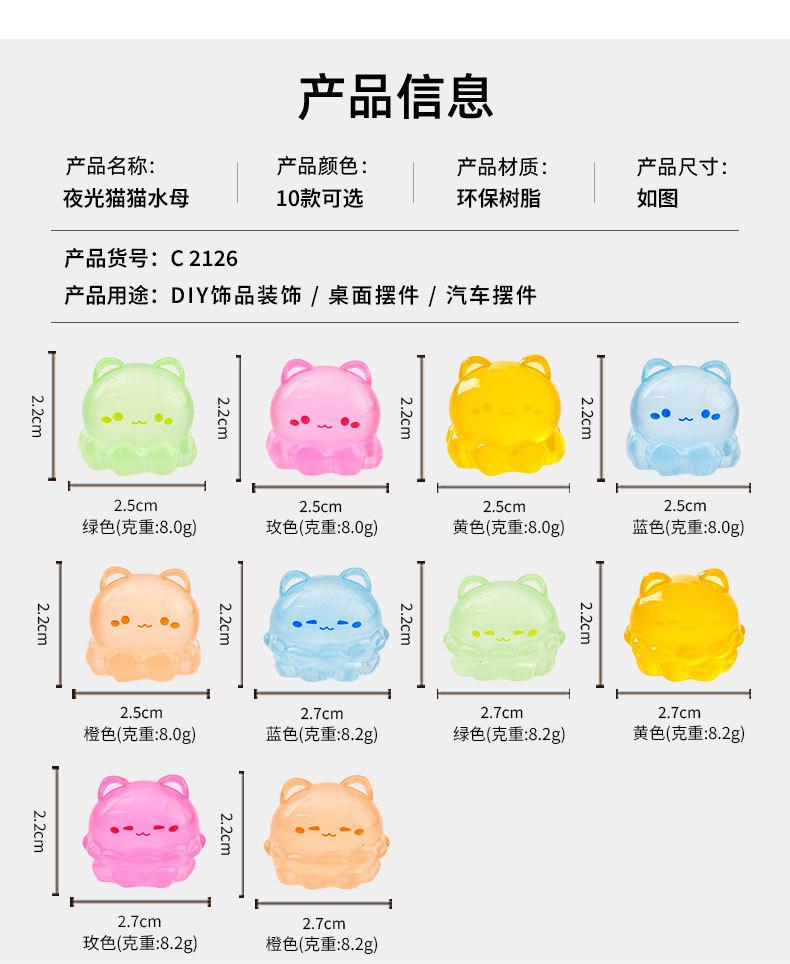 Accesorios de resina de medusas luminosas de dibujos animados, decoraciones de bricolaje, pulpo de animal marino, adornos pequeños de escritorio, bolsa ciega adorable