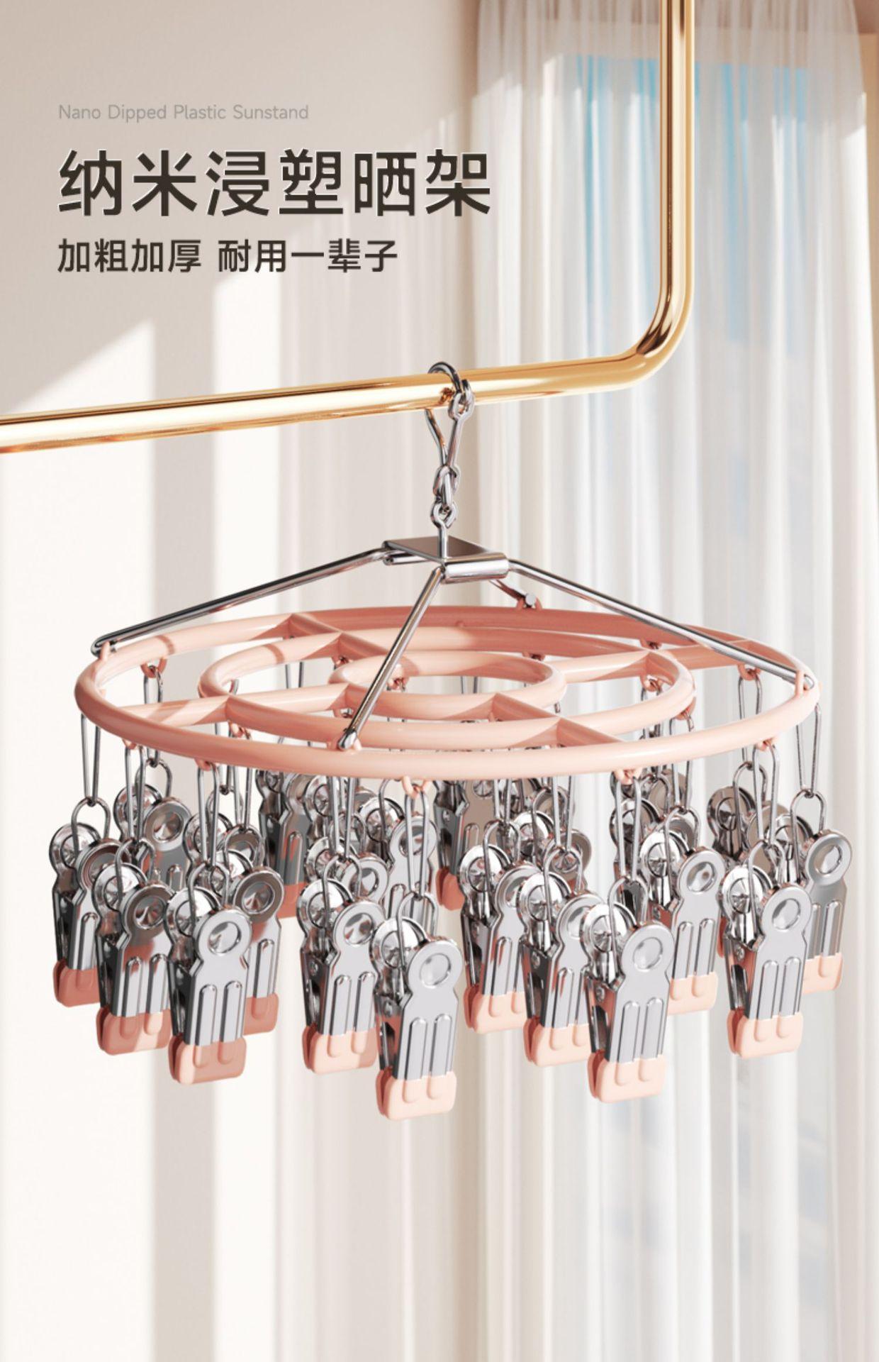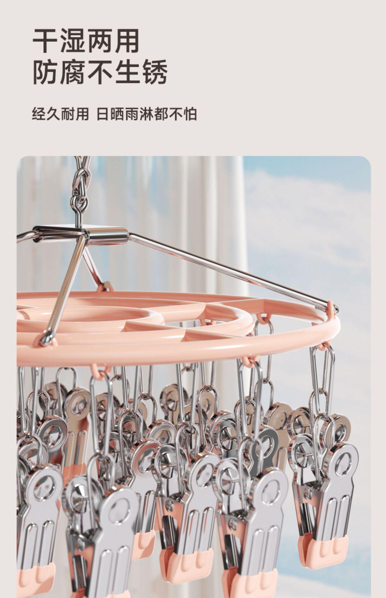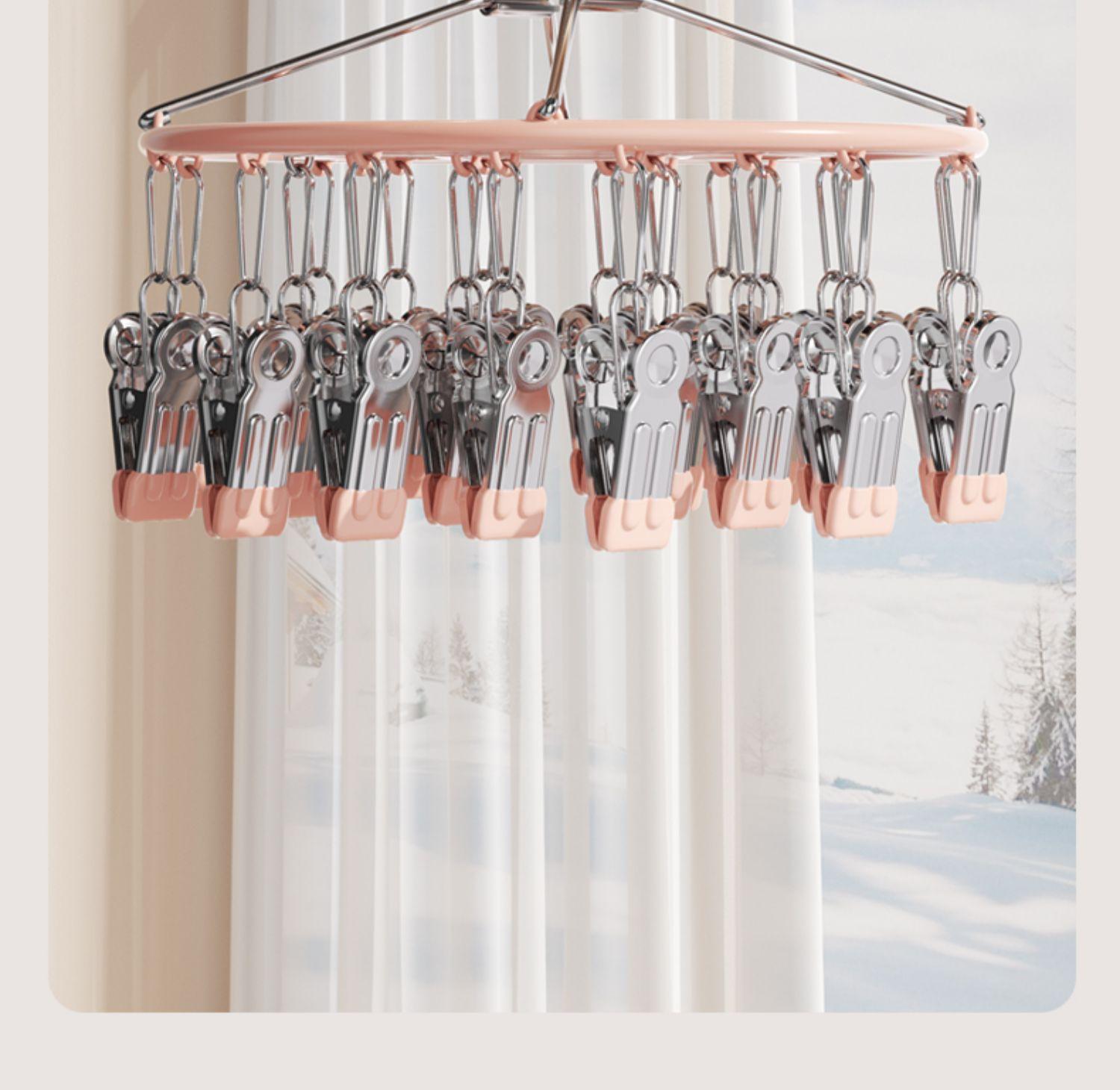 Tendedero de calcetines, tendedero para balcón, percha de ropa de acero inoxidable para el hogar con pinzas múltiples para secar ropa interior, artefacto multifuncional