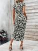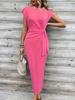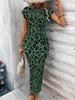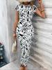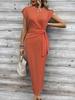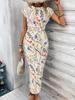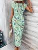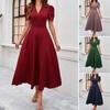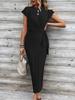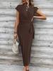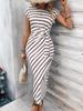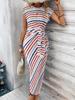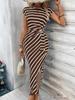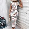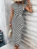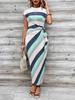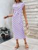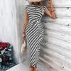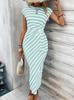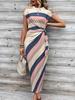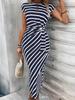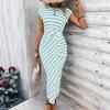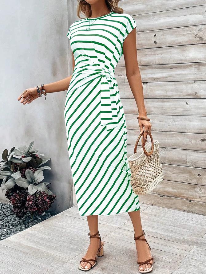 2025 Elegante Vestido Largo de Verano para Mujer de Alta Gama con Cinturón de Cintura Cruzado, Rayado, de Cuello Redondo y Manga Corta