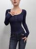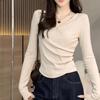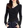 Camiseta de estilo coreano de otoño de 2024 con diseño cruzado, ajustada, adelgazante, elegante, de manga larga y cuello en V.