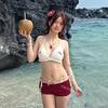 Estilo Japonés y Coreano Chica Caliente Sexy Bikini Vaina Deseo Puro Brocado Perlado Pecho Pequeño Traje de Baño de Tres Piezas Traje de Baño Vacacional Dividido