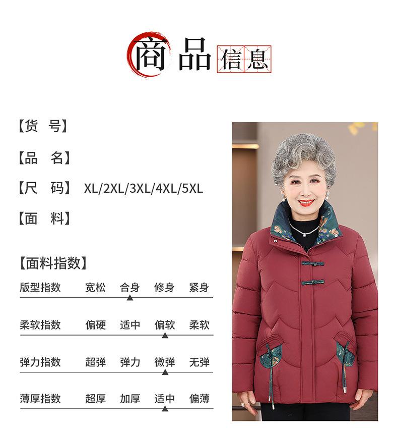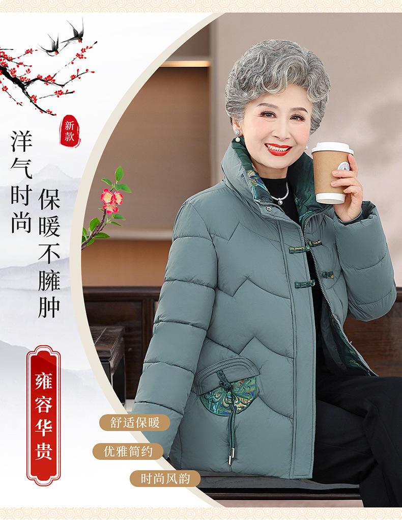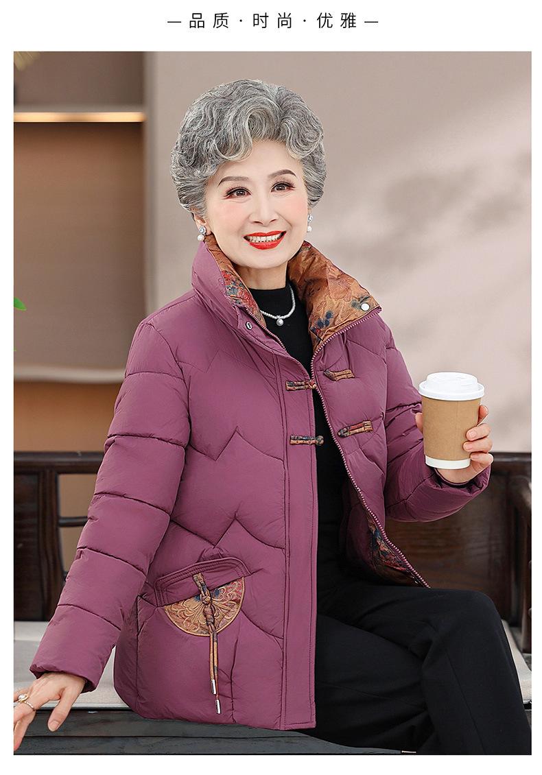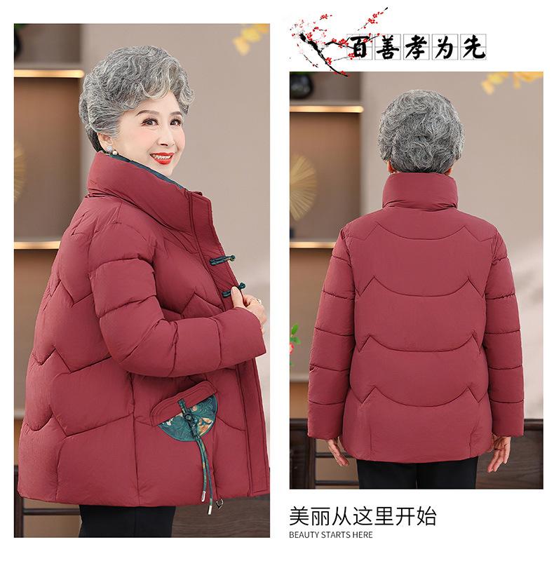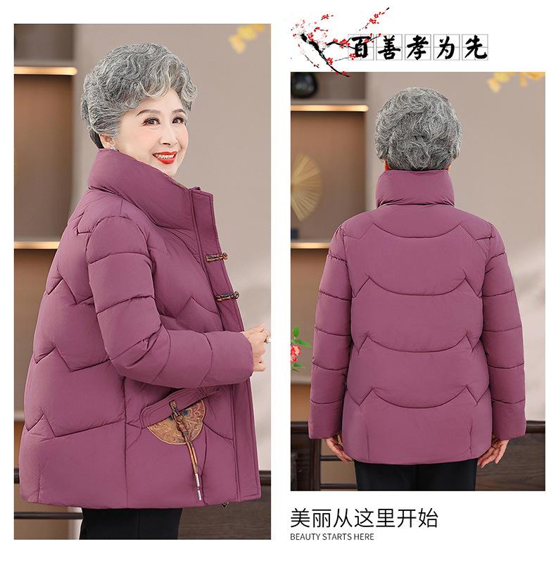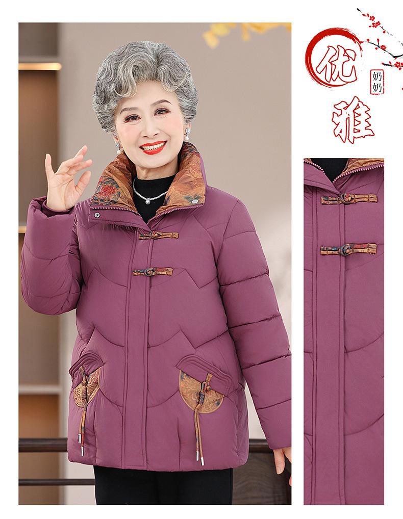 Abrigo de otoño e invierno para madres de mediana edad y ancianas, chaqueta acolchada de algodón de plumón de invierno para abuela nueva de 2024, chaqueta acolchada de algodón de estilo nacional chino