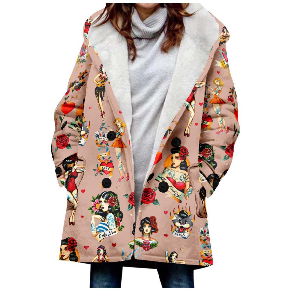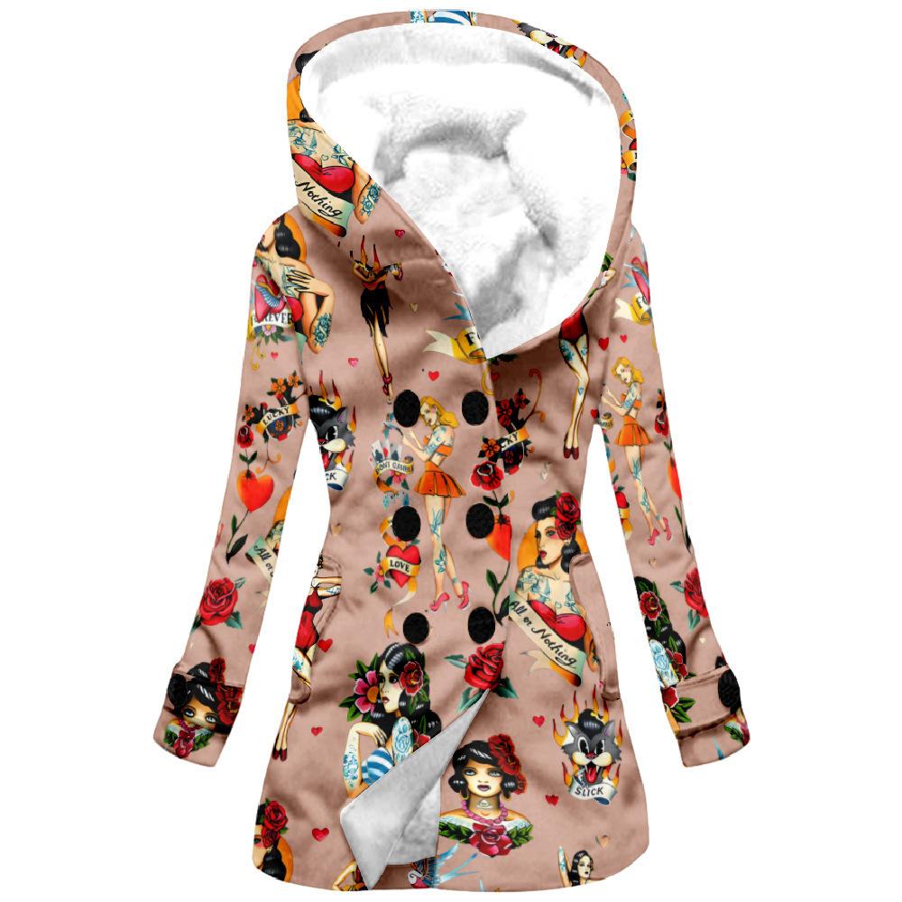 Abrigo con capucha y estampado floral de estilo europeo y americano, de estilo transfronterizo, para mujer, nuevo y de moda de invierno.